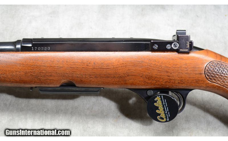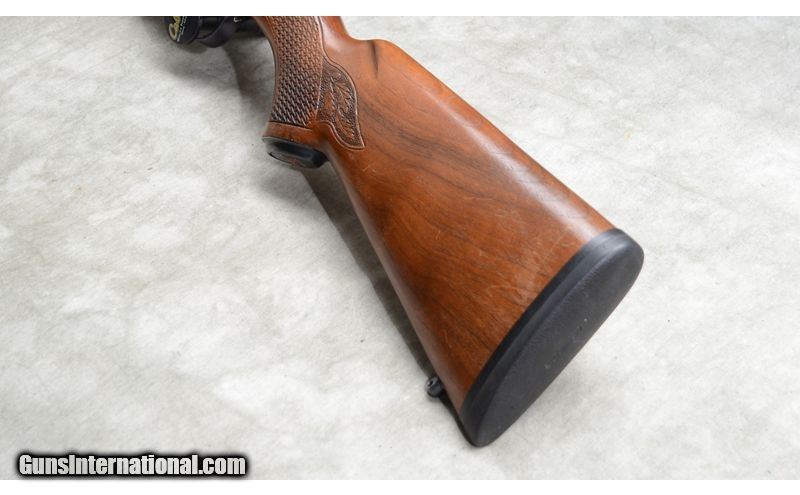 Description: Manufactured in 1967, this Winchester Model 100 features basket weave and oak leaf checkering on the nice walnut stock. The sights have been upgraded to modern fiberoptic and peep. The original rear sight has been removed and the dovetail has been plugged. Nice shooter if that's what you're looking for. .308 Winchester SOLD Curio/Relic: Yes Chambers: 4+1 Metal Condition: Very good. There are some scratches around the front sight. Wood Condition: Very good. A few light handling marks and the checkering is a bit thin in the wrist. Bore Condition: Shiny and bright with good rifling. Barrels: 22 inch Triggers: Factory trigger. Stock Dimensions: 13 inch LOP. Butt Pad: "Soft rubber pad, Decelerator brand. Weight: 7 lb - 2 oz Sights: Fiberoptic bead and Williams peep sights. Drilled and tapped for scope. Item Location: Rogers |