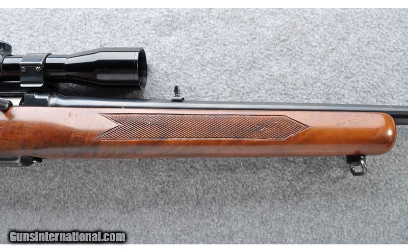 Description: This Winchester model 100 is a gas operated semi-automatic rifle chambered in .308 Winchester, introduced in 1960 and discontinued in 1973 with about 263,000 sold. The Pre-64 models had hand-cut checkering opposed to the post-64's pressed checkering. .308 Winchester SOLD Chambers: .308 Winchester in a five round detachable box magazine Metal Condition: "Very good, with minimal wear to the muzzle, charging handle and magazine Wood Condition: "Very good, showing a few field marks. Nicely figured wood Bore Condition: Bright & sharp Barrels: 22 Stock Dimensions: 13 1/2" LOP Fore End: Checkered walnut with sling swivel Butt Pad: Winchester checkered composite Weight: 8 lbs. 5 oz. Sights: "Dovetailed front blade, Folding leaf rear and a Hurricane/Olympic 4x32 scope in a Weaver tIp-off mount Item Location: Grand Junction, CO |