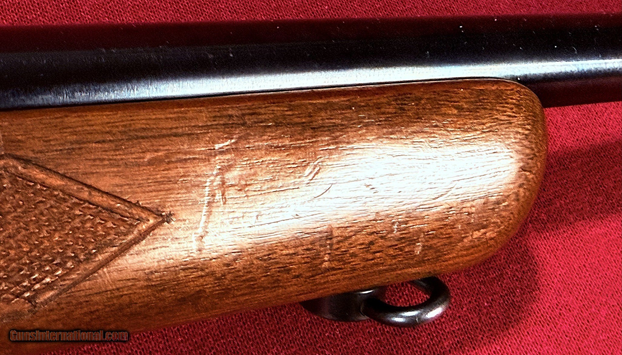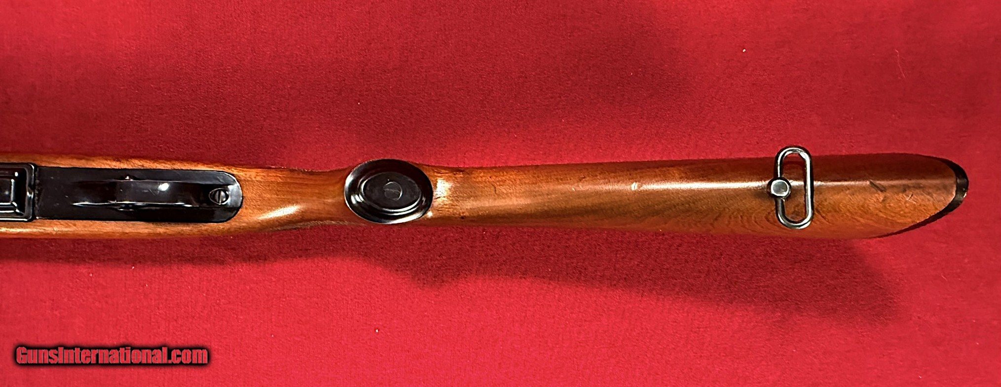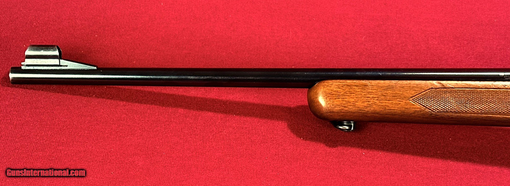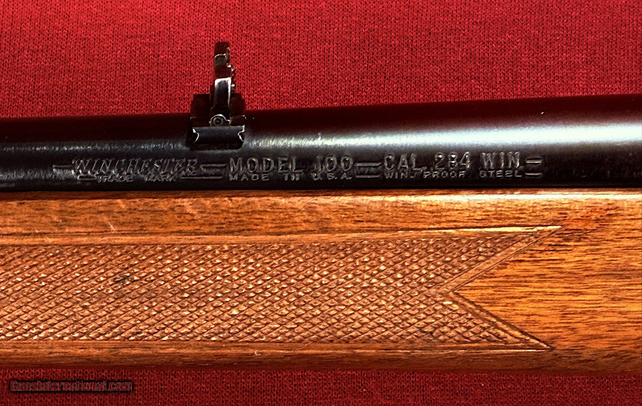 PRE-64 WINCHESTER Model 100 in the Scarce .284 Winchester Caliber, made in 1963. This Winchester Model 100 is a great example of a good honest rifle. It has been used, but never altered. It has some minor stock blemishes, but nothing serious. The metal is very nice with very little blue wear, just a little at the muzzle from being slid into a case. The action is tight and operates smoothly. It has a unique bolt that has twin shell ejectors for positive ejection of a fired case. The bore is excellent with sharp riflings. The bore of the rifle was always cleaned using a muzzle protector and the crown looks like new. The rifle is drilled and tapped for scope mounting but there is no evidence of ever having a scope mount installed. The iron sights are intact and allow for a fine aim.