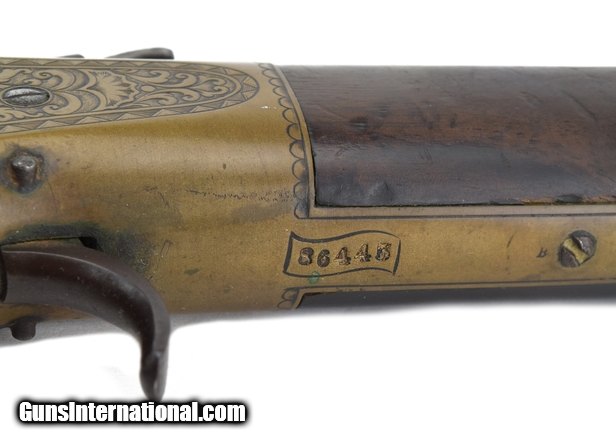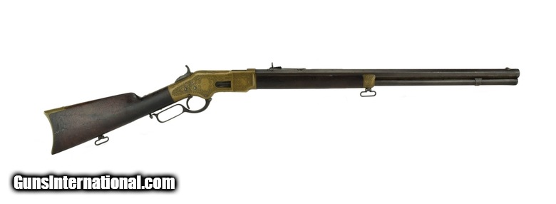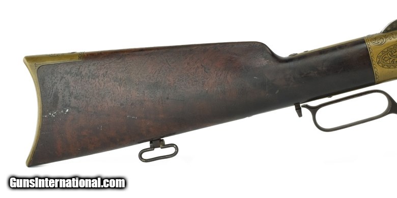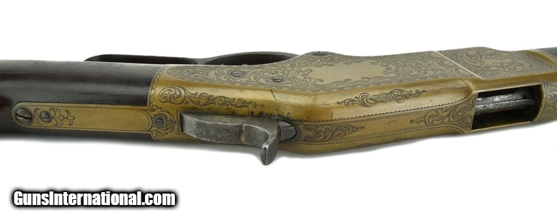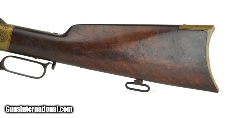 Description: Factory Engraved Winchester 1866 Rifle. Made in 1870. .44 Rimfire. This is an untouched factory engraved 1866 done by one of the Ulrich family members, who were factory engravers for Winchester. This gun has classic scroll work with geometric patterns. There are several animal heads in the engraving. The wood is a grade fancier than you typically see. The barrel has nice even brown patina. The rear sight was remounted through the barrel address. Very fine factory engraved gun! SOLD Antique: Yes |