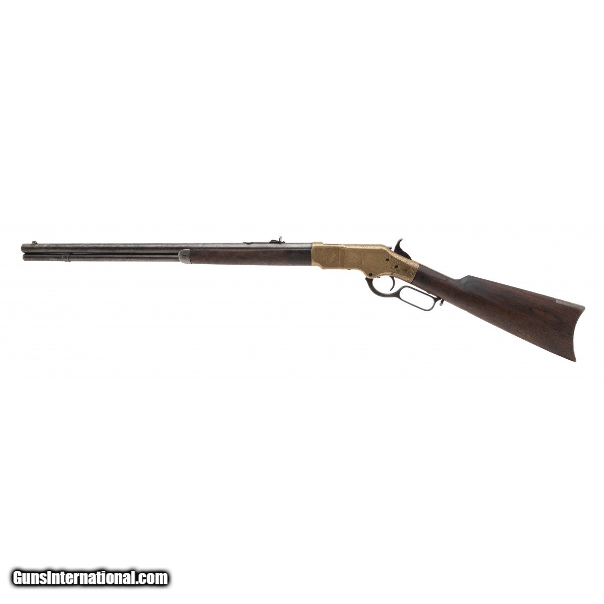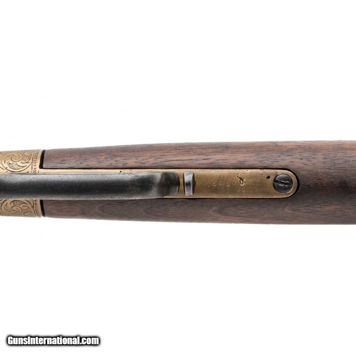 Description: " Serial number 154370. Made in 1880. 44 CF caliber Barrel has a gray patina with some pitting. Frame is nicely engraved in a factory pattern. The wood is replacements. The tang has been repaired and the serial number is restamped. SOLD Antique: Yes |