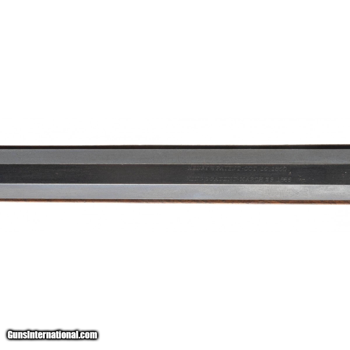 Description: "Serial number 17837. Made in 1868. 44 RF caliber with a 24" barrel. Very fine early gun with a Henry marked barrel. This gun is factory engraved. This gun is an early gun with the Henry like engraving. Traces of silver still remain on the frame. The barrel has about 95% of the original blue. The Wood is excellent with most of the original finish. The butt stock has been checkered. This is a beautiful factory engraved Winchester 1866 Rifle! SOLD Antique: Yes |