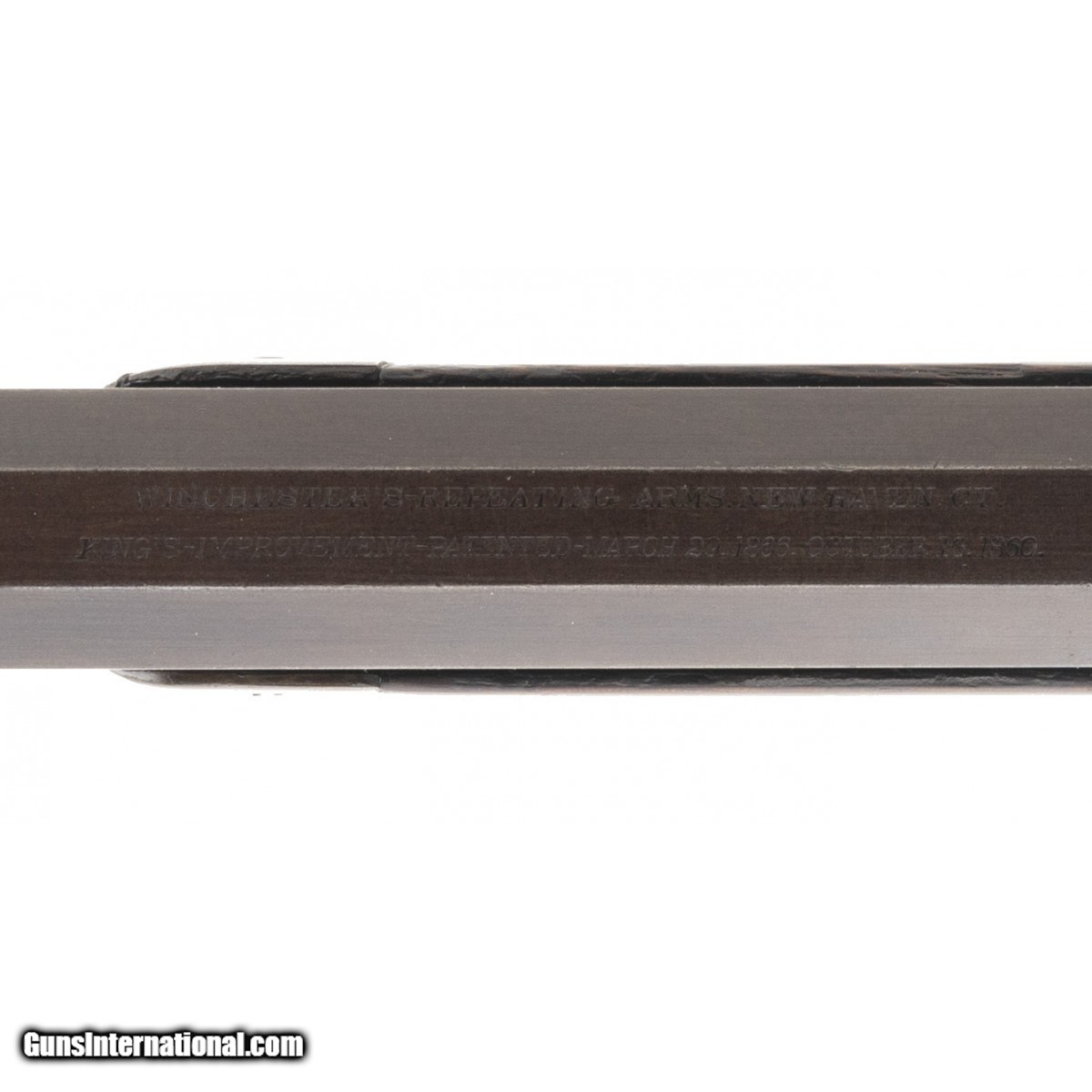Description: "Made in 1878. Has 24 inch octagon barrel in .44 Rimfire caliber. The barrel of this gun has a smooth plum brown patina with blue in protected areas. The frame is nice and sharp with a nice patina. This is a 4th model gun and one of the guns that was using up the carbine frames. Wood is very fine, forearm has one small crack on the left hand side. The upper tang has a very well done repair by the screw area. Very fine Winchester 1866 Rifle! SOLD Antique: Yes |