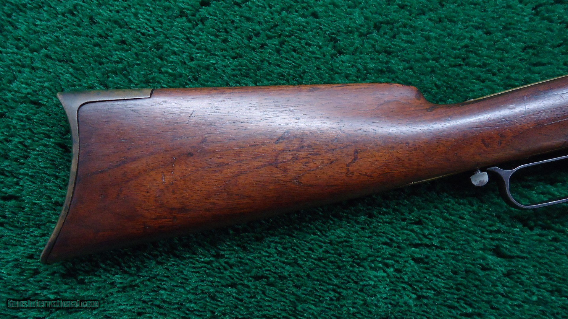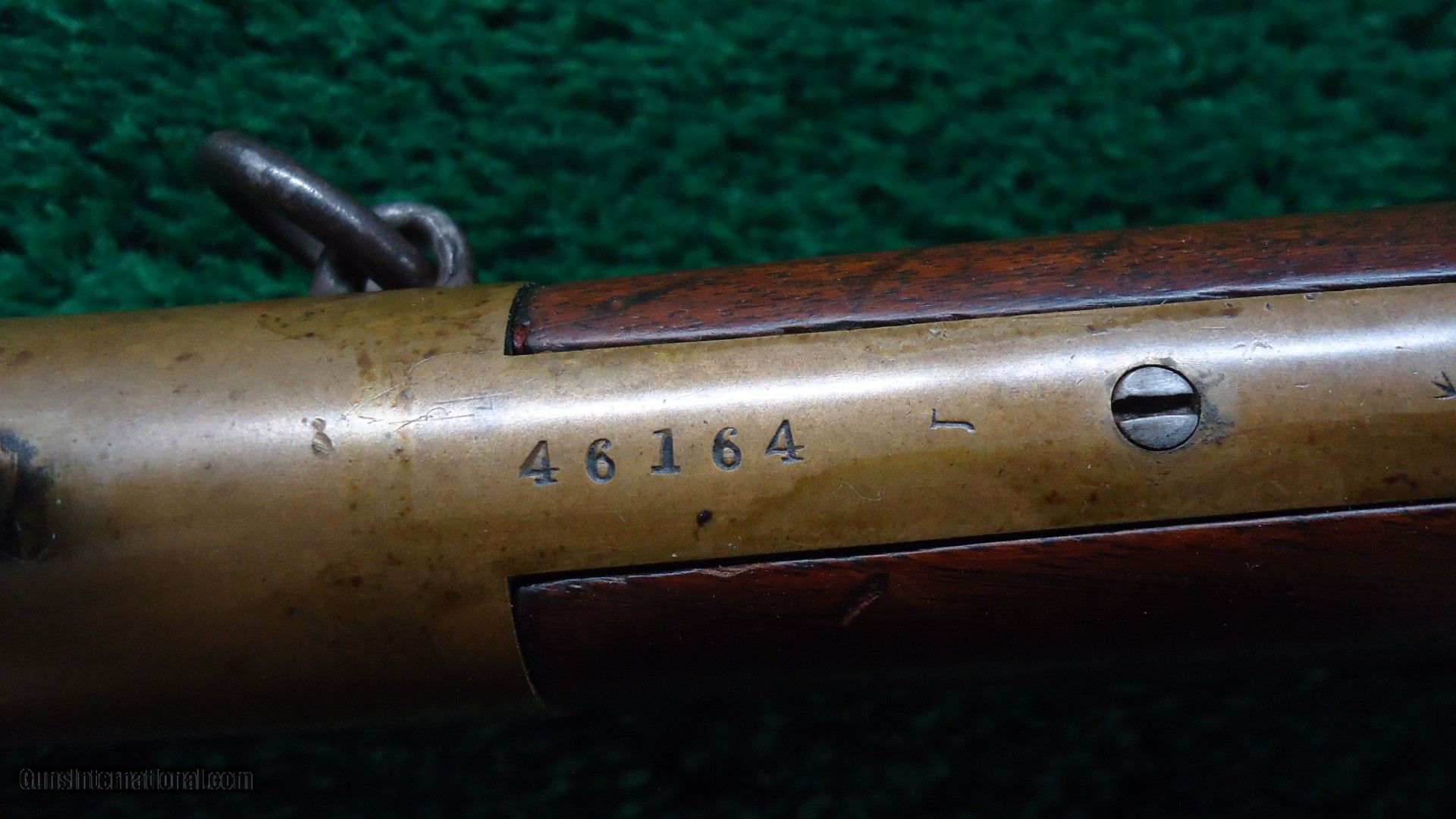 Description: Bore is better than average. Wood has been lightly cleaned but looks great. Complete with the early brass rifle style buttplate. 20 inch barrel with correct sights has a considerable amount of blue turning plum. Light markings that was typical of this serial range. Receiver has some minor rounding to the corners. Untouched and turning a deep patina. Complete with correct saddle ring. Nice functioning action. Leroy Merz Antique Firearms specializes in antique and vintage Winchesters and other fine American firearms. Since 1965 Mr. Merz has taken part in the world of firearms and has been a contributor to many well known reference books. We have hundreds of additional guns in every price range at our home online. Search for Merz Antiques in google. SOLD Antique: Yes Rifle Caliber: .44 Rimfire |