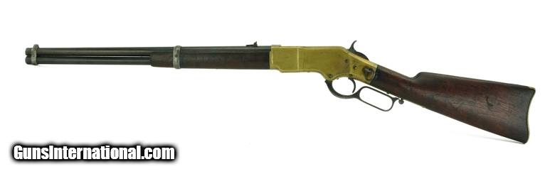 Description: Winchester 1866 Saddle Ring Carbine .44 Henry Rimfire made in 1878. Barrel has smooth brown patina. Frame has a light patina that shows some light use. Wood is very good. Cleaning rod is in butt. Good solid Winchester 1866 Saddle ring Carbine! SOLD Antique: Yes |