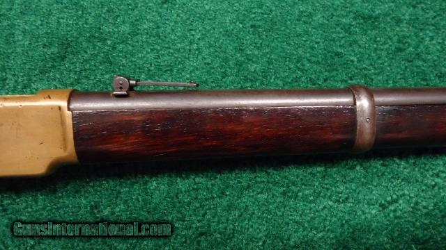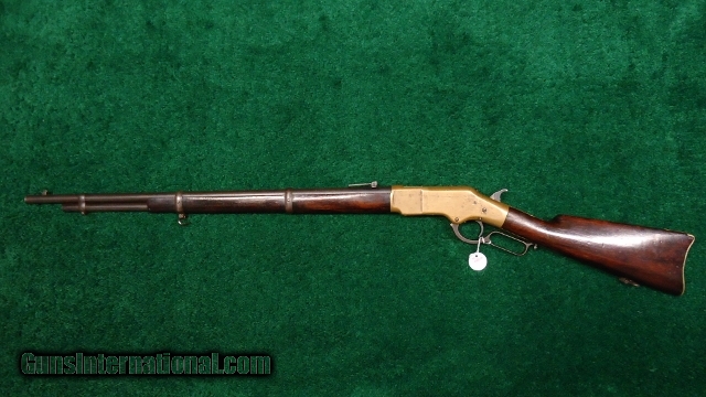 Description: Cal 44 RF. Orig sights. VG+ bore. Wood has had some varnish added but not sanded or undersized. Correct brass buttplate. Orig sling swivels. Traces of blue in protected areas. Good markings. Receiver is a pale yellow with some rounding. Some scuff marks. Generally not a bad old musket. Leroy Merz Antique Firearms specializes in antique and vintage Winchesters and other fine American firearms. Since 1965 Mr. Merz has taken part in the world of firearms and has been a contributor to many well known reference books. Just recently we mailed the 125th edition of our privately-published catalog. We have hundreds of additional guns in every price range at our home online. Search for Merz Antiques in google. SOLD Antique: Yes |