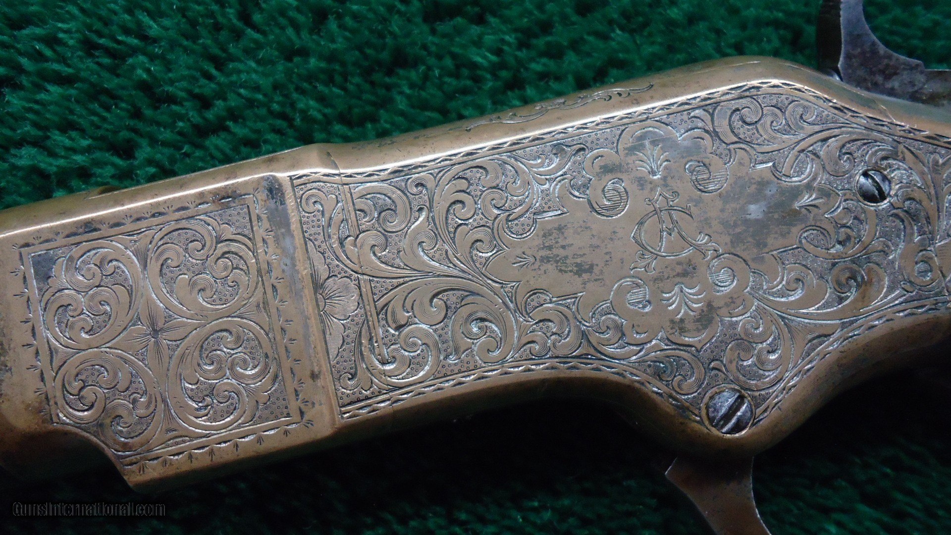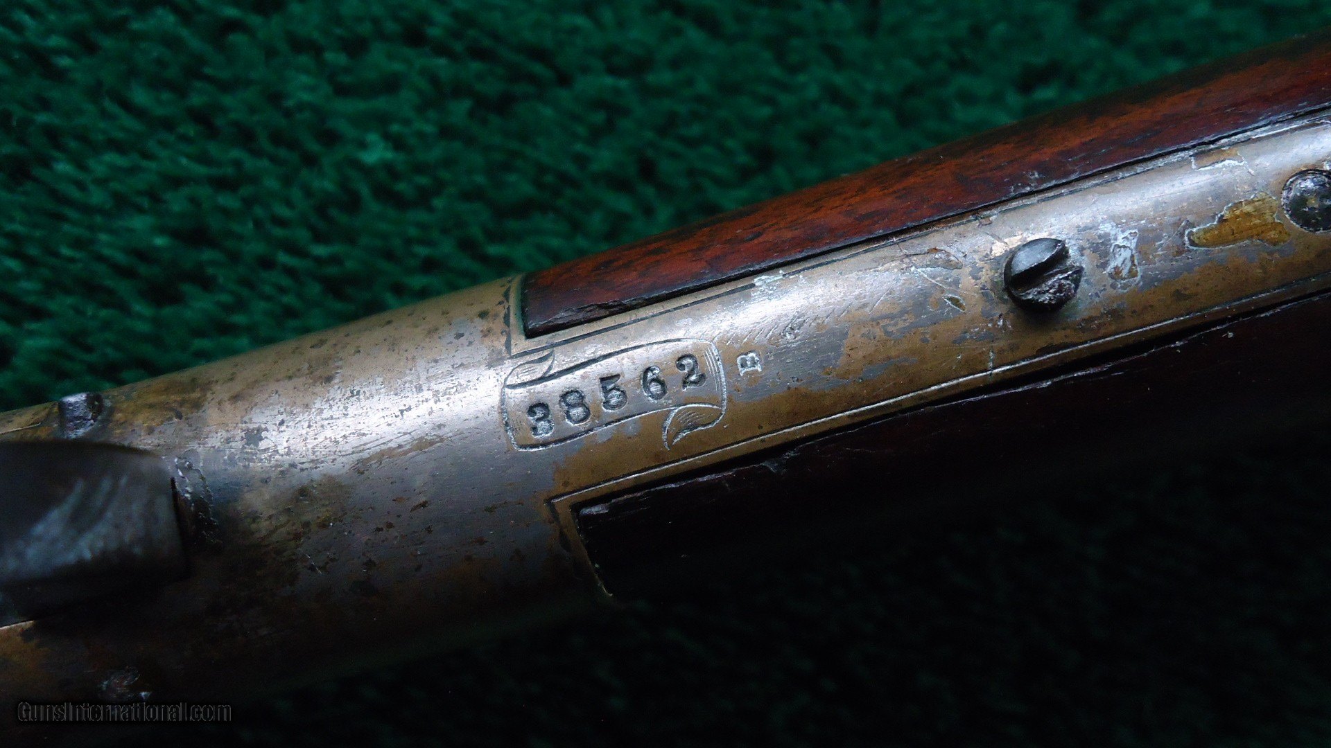 Description: N is in the 38,000 range. 24 inch full octagon barrel as well a full magazine tube. Features a fairly good bore with sharp rifling and would benefit from a good cleaning. The barrel has turned a plum/brown patina color. Has sharp corners and good markings complete with original sights. Marked on the front part of the lower tang on the inside is the initials U & F which stands for Conrad F. Ulrich which there were only a handful of these. Wood is in very good shape with numerous small mars and dings but no splits of cracks and retains most of the original varnish. The receiver is engraved quite elaborately with initials and a panel scene on the left hand side of the receiver. The silver has turned a very nice deep, very scratchy patina color. Has about 5 or 10% of the original silver showing in the protected area. Overall this is a good clean little gun. Complete with the correct swing swivels. Leroy Merz Antique Firearms specializes in antique and vintage Winchesters and other fine American firearms. Since 1965 Mr. Merz has taken part in the world of firearms and has been a contributor to many well known reference books. We have hundreds of additional guns in every price range at our home online. Search for Merz Antiques in google. SOLD Antique: Yes Rifle Caliber: .44 Henry |