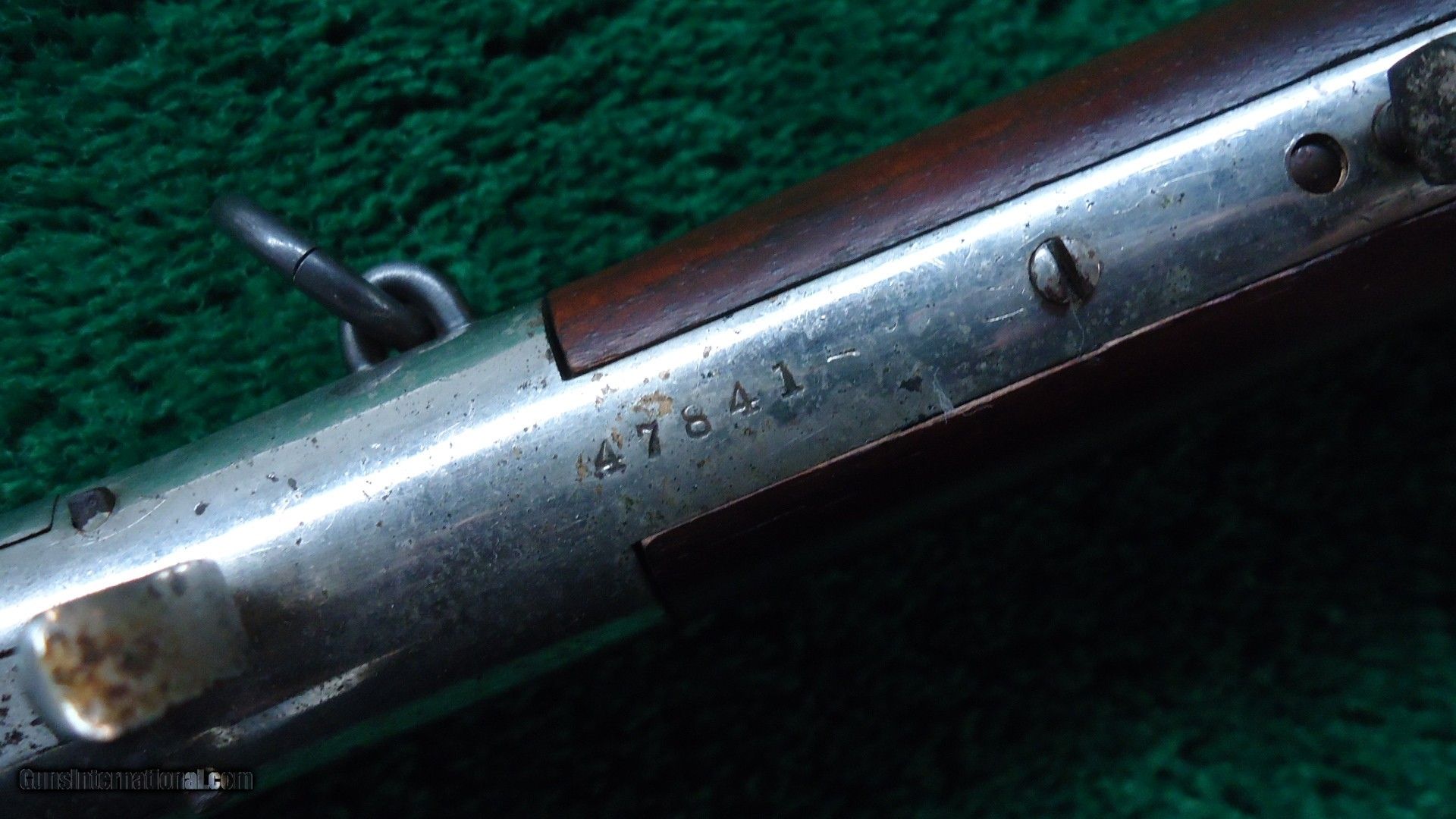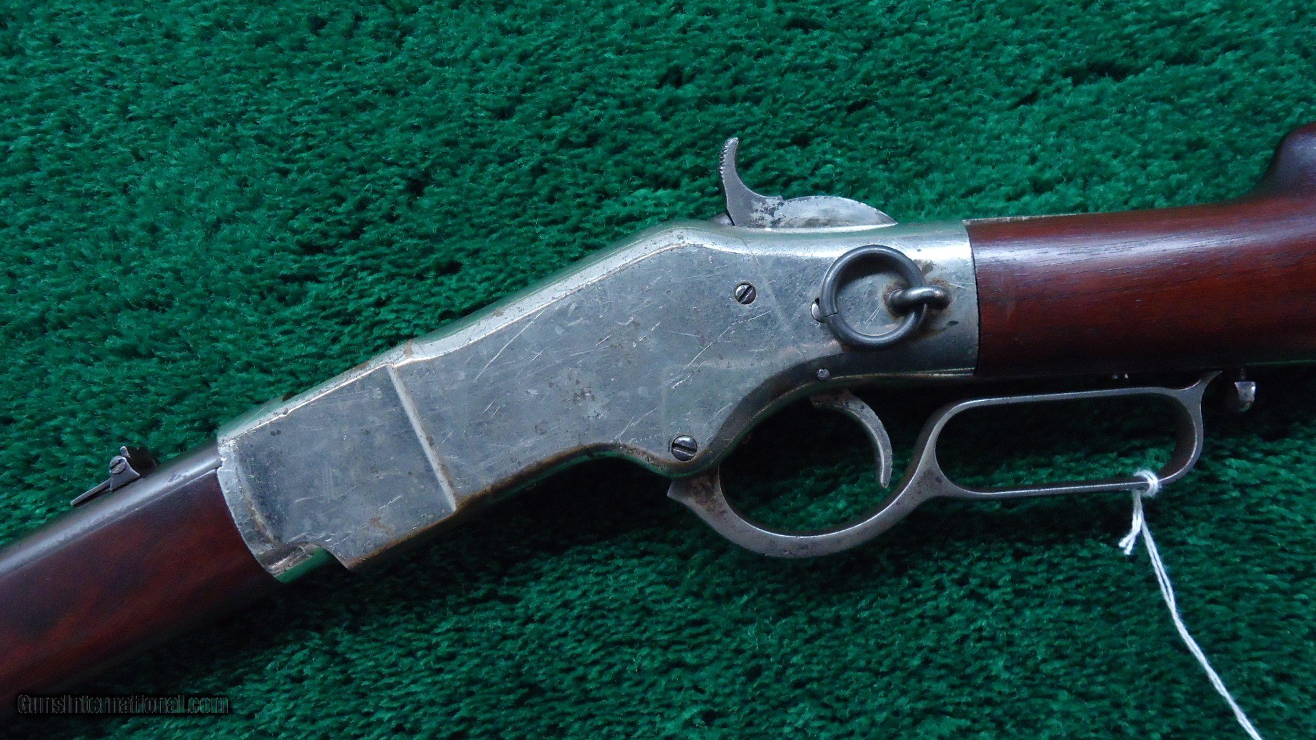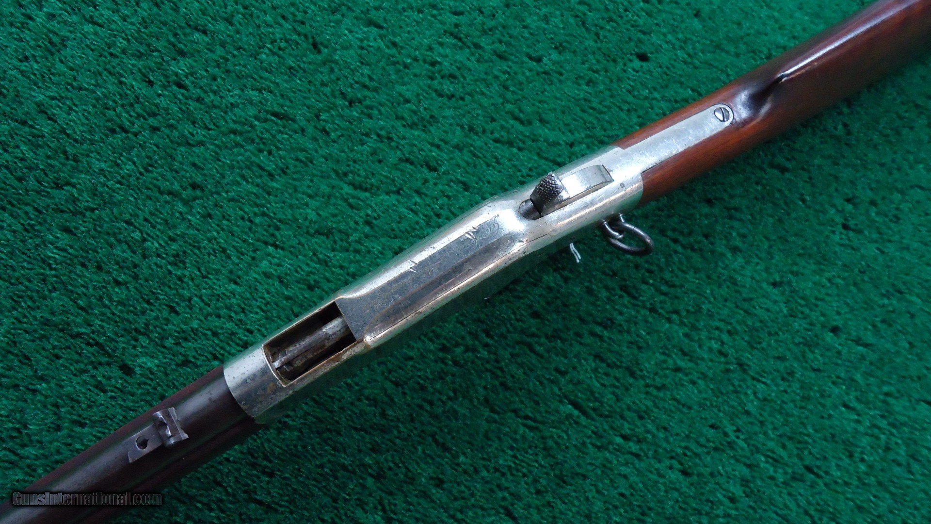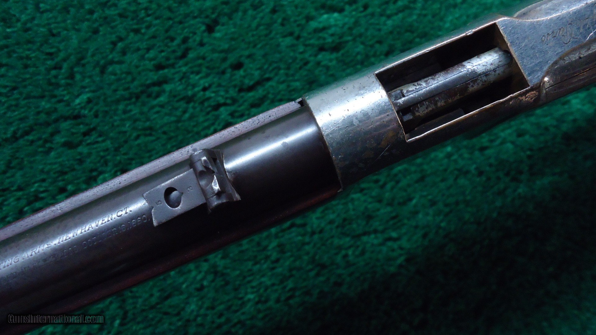 Description: 44 RF caliber. Blued barrel and mag tube with nickeled receiver, hammer lever and butt plate. The top of the receiver is marked with the French retailer mark "Gunther & Cie Frt Strasbourg, 46 Paris". Barrel has thinning blue. Bore is a little rough with very light rifling. The nickel is about 80% present on the rest of the gun. It is possibly period, or dealer applied nickel. The wood is near excellent. Sharp markings and a crisp action. A good looking SRC with a rifle style butt plate. Made in 1870. Leroy Merz Antique Firearms specializes in antique and vintage Winchesters and other fine American firearms. Since 1965 Mr. Merz has taken part in the world of firearms and has been a contributor to many well known reference books. We have hundreds of additional guns in every price range at our home online. Search for Merz Antiques in google. SOLD Antique: Yes Rifle Caliber: .44 Rimfire |