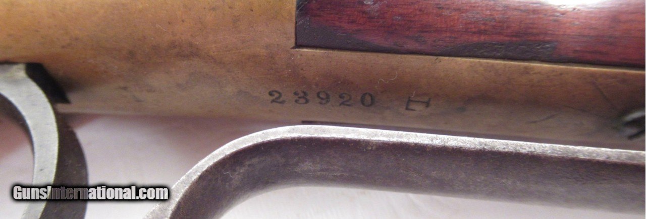Description: Winchester Model 1866 Rifle; Serial No. 23920; Made 1869; Caliber 44 Henry Rim Fire; 24” Octagon Barrel Which is HENRY MARKED; Also Marked on Frame “W.Y. DEG” (Wexel & Degress – Mexico City); 100% Untouched Original 66 Rifle; Factory Sling Swivels; Original 4 Piece Cleaning Rods in Butt; Beautiful Untouched Brass; Lots of Original Blue on Barrel; Lots of Original Varnish Present; Perfect Action; Very Strong Bore with some moderate pitting; 100% Original and Correct; 150 Year-Old Winchester that came out of Fort Worth, Texas Many Years Ago; LIQUIDATING PERSONAL COLLECTION; Price: $22,000 Shipped; Price includes insured shipping; return policy: three days inspection from the date the items received; full refund of shipping both ways ONLY IF THE ITEM IS MISREPRESENTED. SOLD Antique: Yes Manufacturer: Winchester Model: 1866 Serial Number: 23920 |