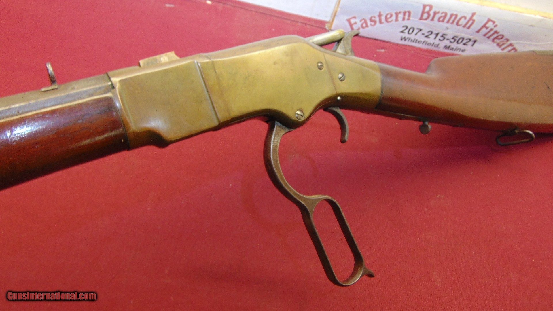 Description: GREAT WINCHESTER MODEL 1866 LEVER ACTION BRASS FRAME RIFLE . SER# 120867 MADE IN 1874. CALIBER 44 HENRY . 24 INCH OCATGON BARREL . DESCENT BORE SHOWING RIFLING WITH LIGHT TO MODERATE PITTING . RECEIVER SHOWS A NICE PATINA. ACTION IS TIGHT AND CRISP AND FUNCTIONS FINE. WOOD IS SOLID WITH A LIGHT 3 INCH GRAIN LINE CRACK ON THE RIGHT SIDE . ( STOCK IS SOLID AND TIGHT TO THE FRAME. gleneasternbranchfirearms ADD 35.00 SHIPPING – HANDGUN UPS 2ND DAY AIR ADD 35.00 SHIPPING – LONG GUNS GROUND SHIPPING Questions e-mail or call Glen at Eastern Branch Firearms 207-215-5021 TERMS – PLEASE READ BEFORE I DO NOT HAVE A LAYAWAY OPTION ( WE ACCEPT CREDIT CARDS ) -- I GET ALOT OF REQUEST FOR TRADES, I WOULD PERFER NOT TO DO TRADES ON MY INTERNET LISTINGS PAYMENT OPTIONS- We accept money orders, cashier’s checks , bank checks. sorry no personal checks. We accept all major credit cards please add 3% to the ’s cash discount price.(Maine Residents to pay 5% sales tax) .Handguns and long guns do need to be shipped separate. PLEASE do not send payment via FED EX . USPS & UPS are fine. Thank you. We include a signed copy of our FFL with each firearm shipped. SAFTY NOTICE- Buyer is solely responsible for determining that a used gun is safe to shoot. The firearms offered have not been test fired but have been given a visual inspection only for purposes. It is a requirement that every used firearm is inspected by a qualified gunsmith before firing. By , the buyer agrees to hold seller harmless against damages, injury, or death caused by defective merchandise. RETURN POLICY- All firearms come with a 3-day non firing , non messing with ( turning srews ,taking apart,removing parts, scoping. firing, cleaning or messing with in anyway) inspection/return privilege.Inspection is based on a visual review of the gun to confirm the gun is in the condition stated. In the case of a return, buyer pays all shipping charges & if paid for with a credit card buyer absorbs the 3% credit card charges . So please ask questions BEFORE you bid. Thanks for Looking and Good Luck!! U.S. sales only, no exports…this includes antiques. I will ship to third party for exporting SOLD Antique: Yes Rifle Caliber: .44 Henry |