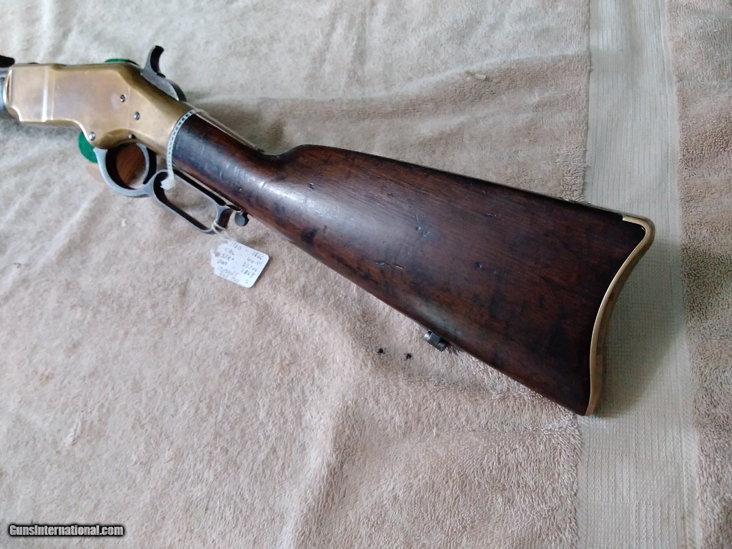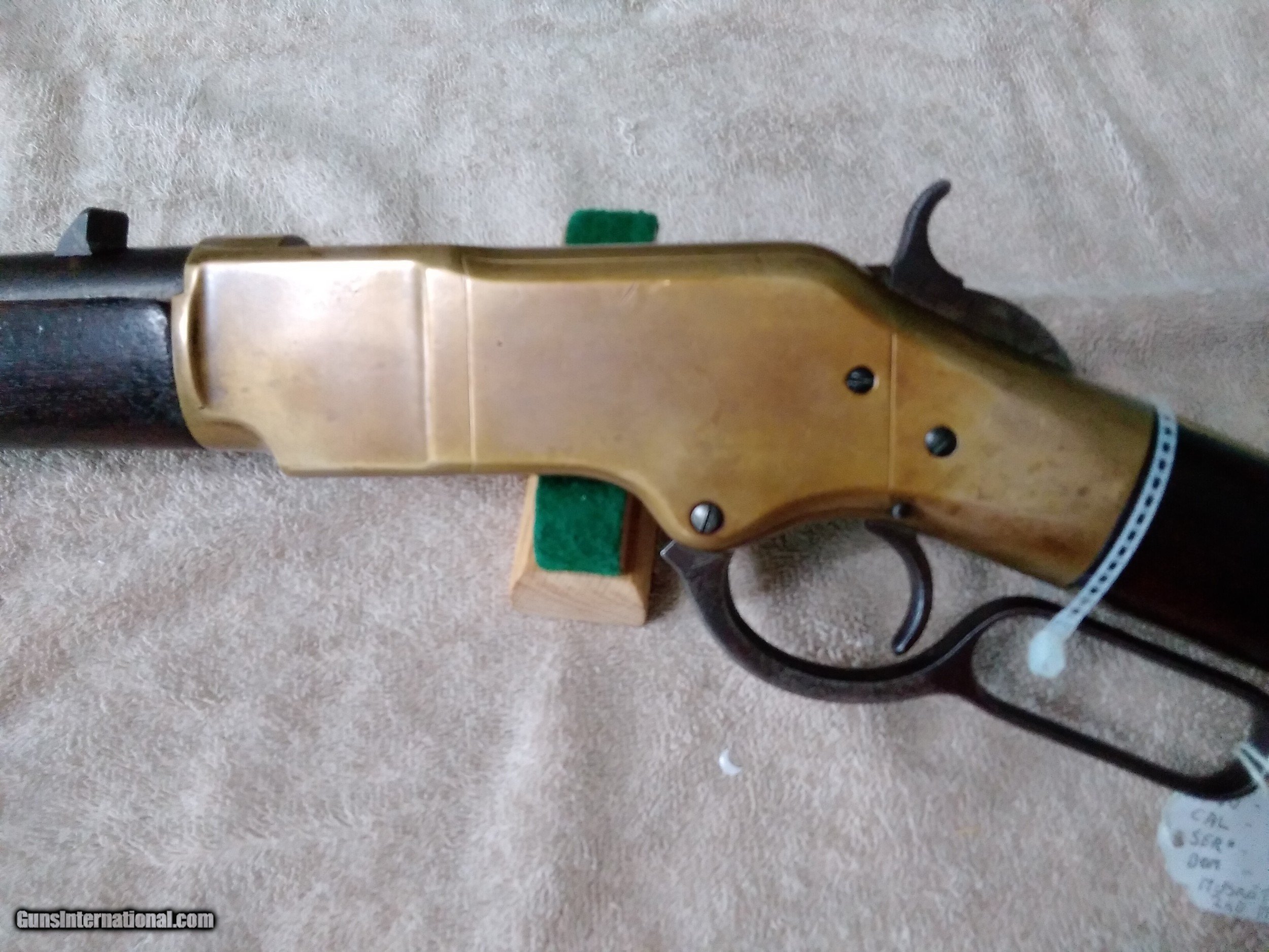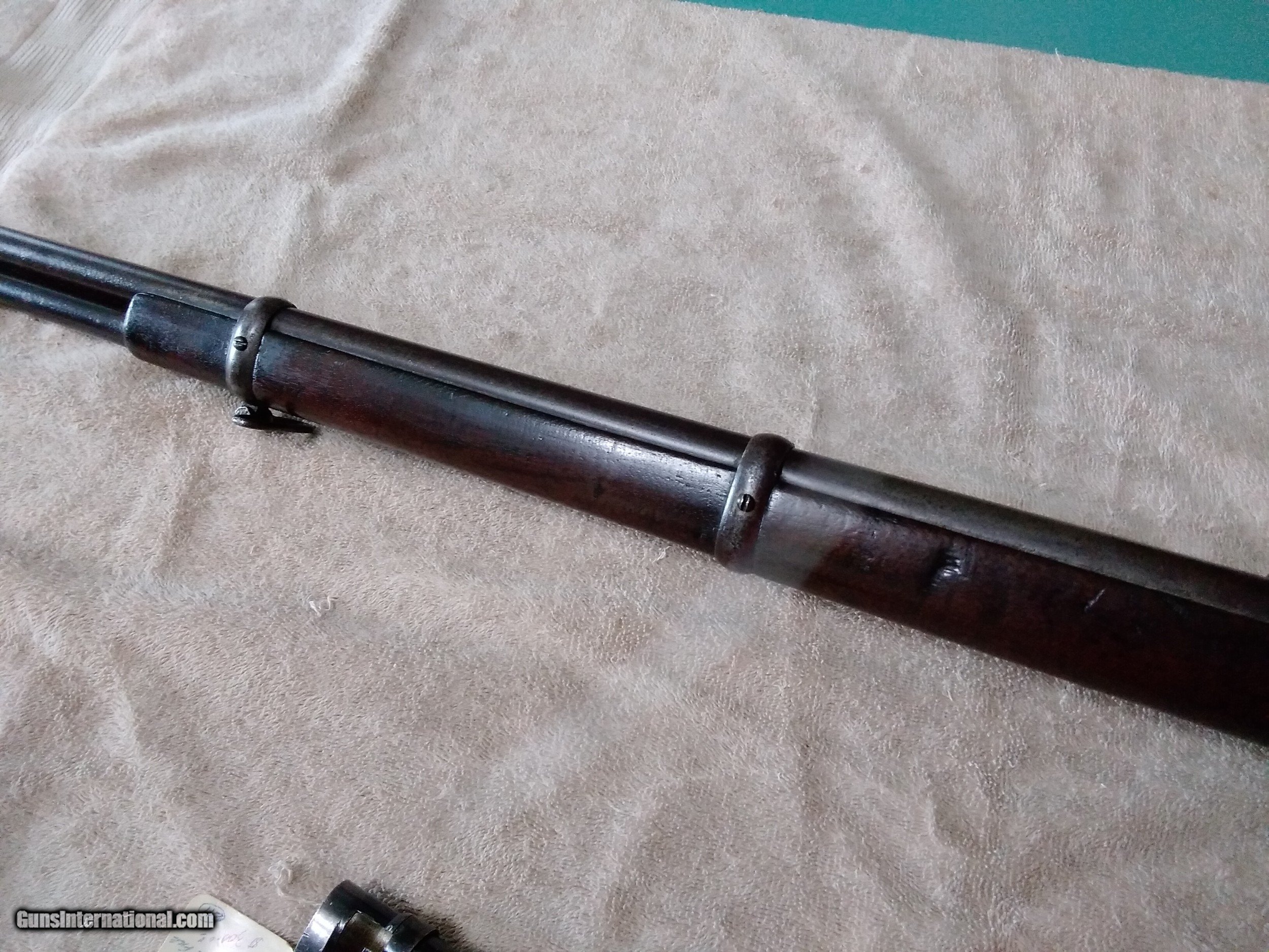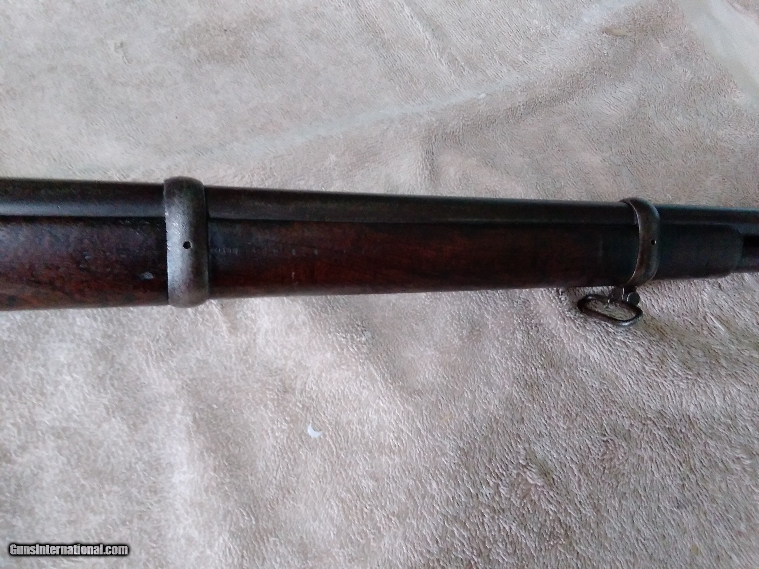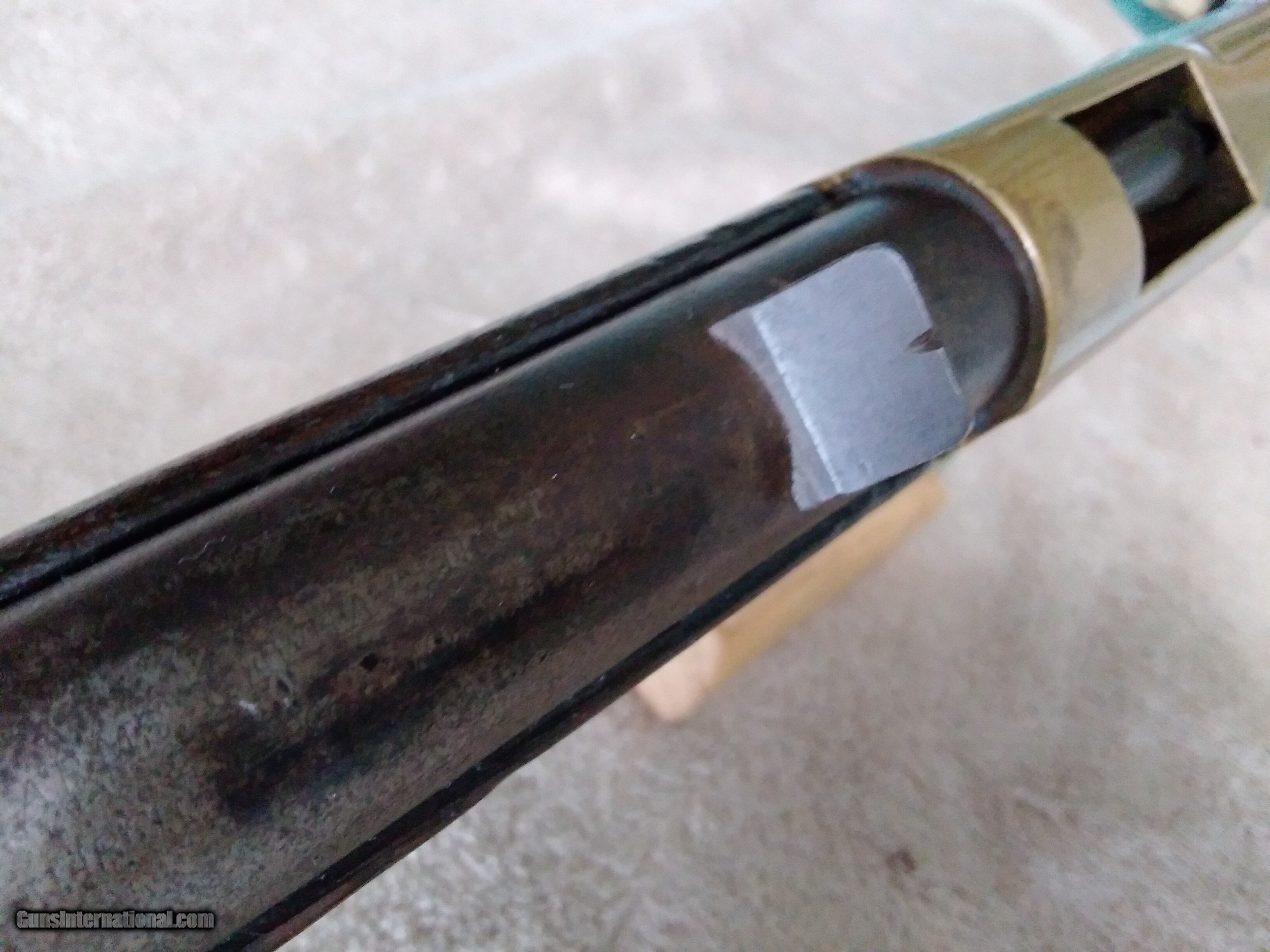 Description: SOLDI am offering My 4 brass guns for sale. This is My Winchester 1866 musket ser#23346 mfg'd in 1869. The gun is in very good condition and way above average. The metal has turned to brown patina. The brass is excellent mustard yellow and the wood is excellent with no cracks or gouges normally found on these old muskets. The included bayonet is in pristine cond.. The bore is excellent. The rear sight is a replacement.. A fine old '66 musket very reasonably priced at $6500.00 shipped to Your door. More pics if needed. Call Harry 519-522-1764 SOLD Antique: Yes Rifle Caliber: .44 Henry Manufacturer: Winchester Model: 1866 Serial Number: 23346 Barrel Length: 27 Condition: exc. Metal Condition: exc. Wood Condition: exc. Bore Condition: very good Barrel Type: round Action: tight Manufacture Date: 1869 Extras: bayonet/scabbord |