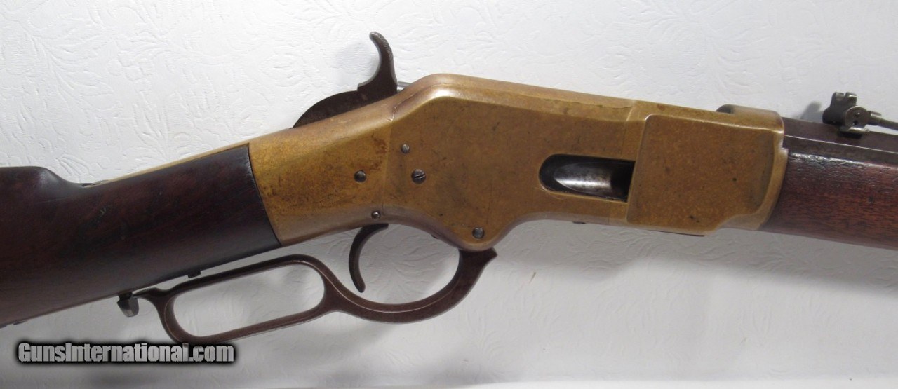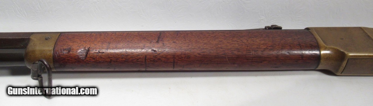 Description: Really Good Winchester Model 1866; 24” Octagon Barrel Sporting Rifle; Serial No. 28220; Made 1869; Pure Correct 100% Original Winchester in Original 44 Rim Fire Caliber; The Finest Un-touched, Un-Cleaned Dark Mustard Color Brass Present; Some Original Blue Present on Barrel and Loading Tube; Original Sling Swivels; Good Original Wood; If you want the Real Deal, this 151 Year-Old Winchester is The One For You!; LIQUIDATING PERSONAL COLLECTION; Price: $14,500 + $60 S&H; Price includes insured shipping; return policy: three days inspection from the date the item is received; full refund of shipping both ways ONLY IF THE ITEM IS MISREPRESENTED. SOLD Antique: Yes Manufacturer: Winchester Model: 1866 Serial Number: 28220 |