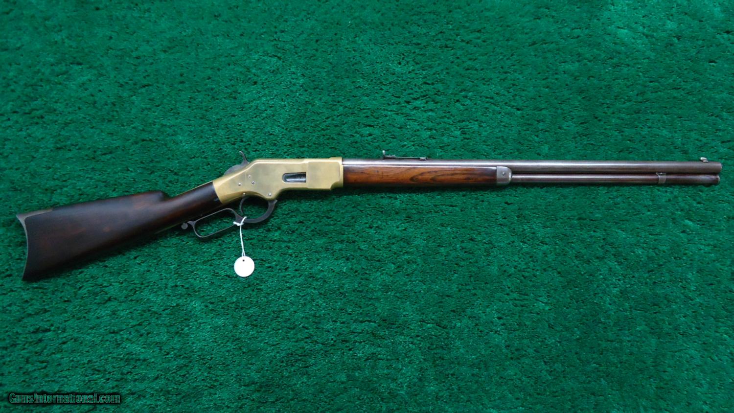 Description: This 1866 has the less common round bbl. Good markings and smooth metal with a medium grey/ brown aged color. Bore has good strong rifling with some roughness and could use a good cleaning. The frame is nice with smooth metal. Good looking and was cleaned years ago. Aging back nicely to a very pleasing color. Wood has been freshened but not overdone. A little bit shy but very little. Forearm wood fits well with no missing chunks. This gun was built in 1883. It has eye appeal and is a value. Comes with reproduction cleaning rods. Leroy Merz Antique Firearms specializes in antique and vintage Winchesters and other fine American firearms. Since 1965 Mr. Merz has taken part in the world of firearms and has been a contributor to many well known reference books. Just recently we mailed the 125th edition of our privately-published catalog. We have hundreds of additional guns in every price range at our home online. Search for Merz Antiques in google. SOLD Antique: Yes |