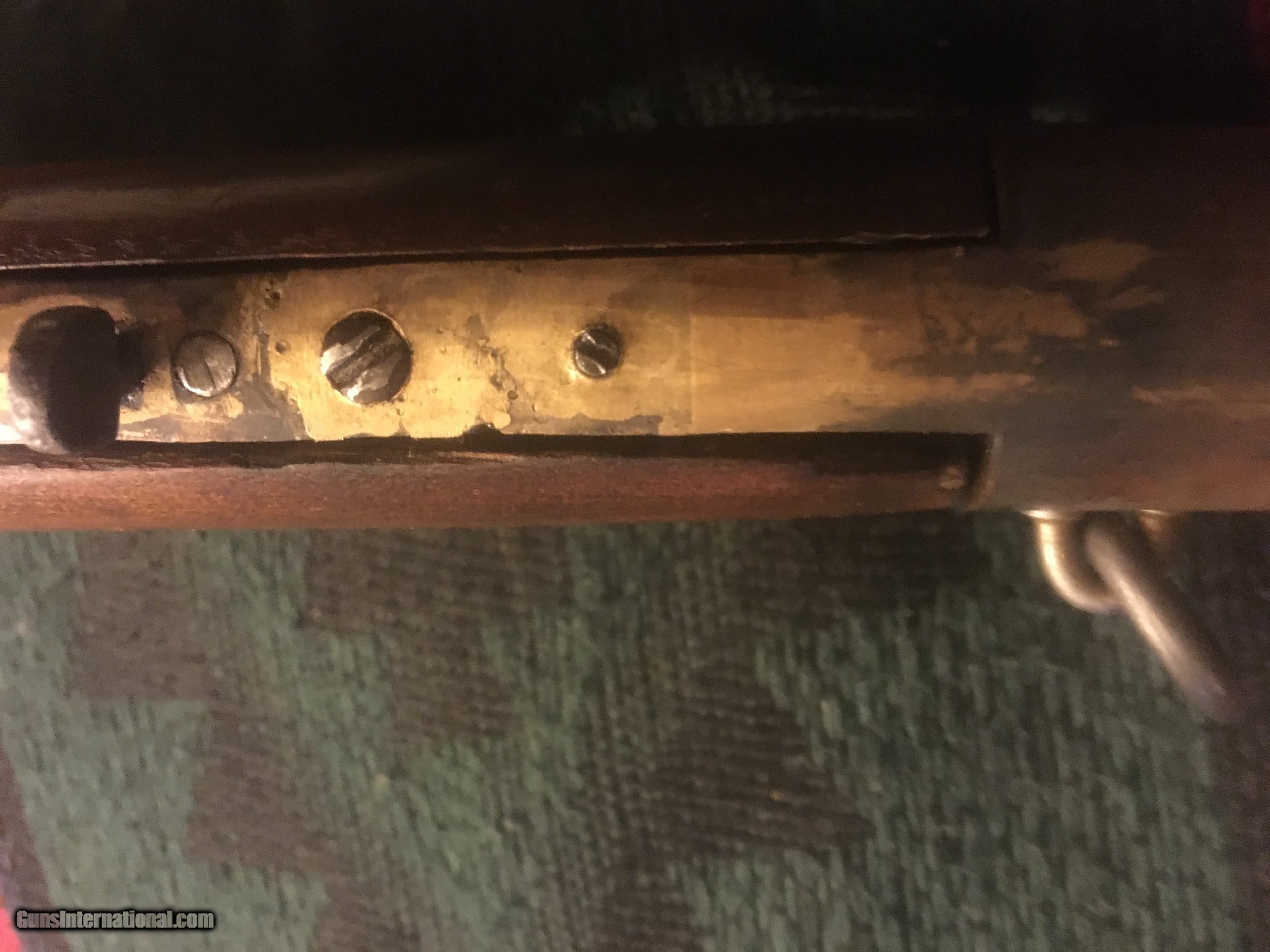 Description: Winchester 1866 Saddle Ring Carbine 44 Rimfire latter model has a repaired tang serial # all that is visable is 17 , must be last year made of 170,000 has has a repair on stock and wood has shrunk some with a line visble, where wood meets the brass , barrel has good riflings little dark could use a cleaning , overall not a bad 1866 , that looks like it was used as a workhorse in the wild west days . priced to sell , has the the steel carbine butt plate SOLD Antique: Yes |