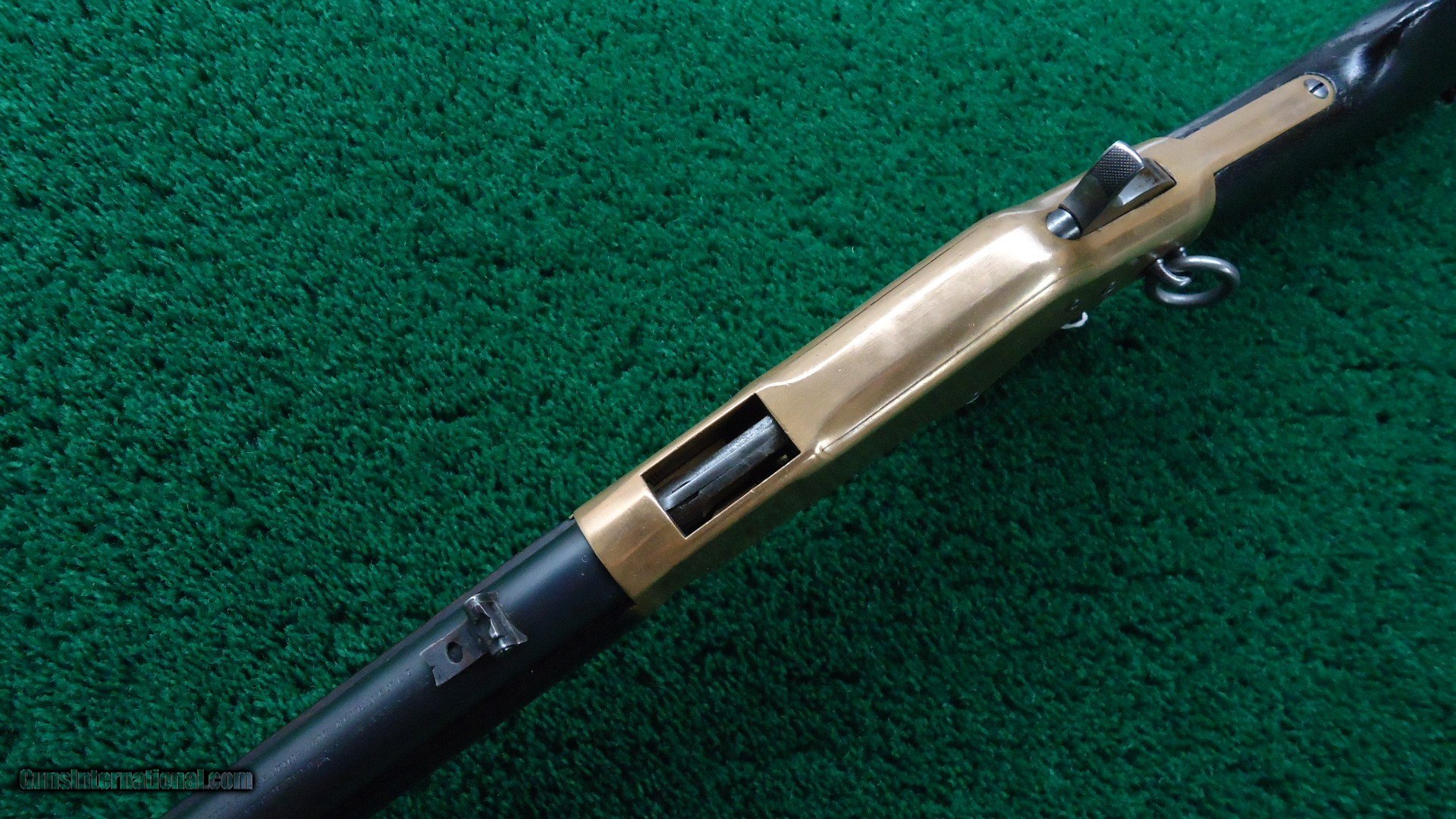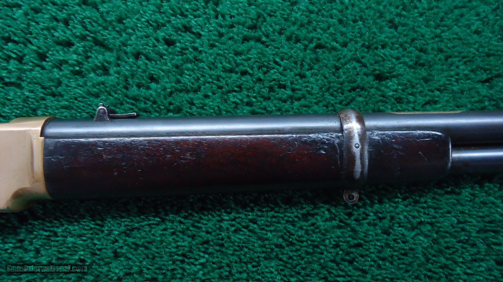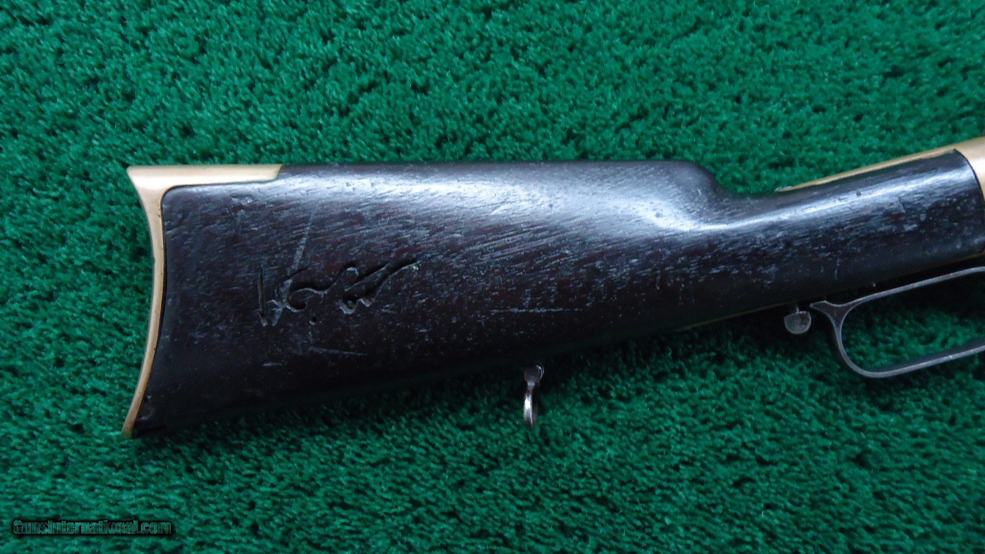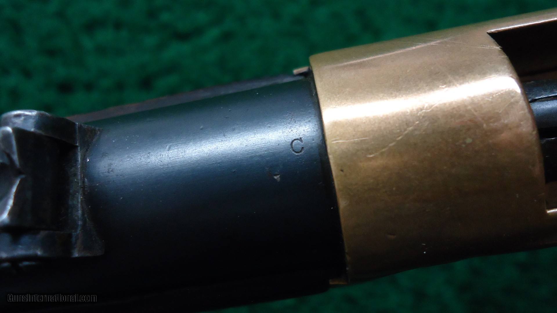 Description: Original sights. Good bore with sharp rifling. Barrel and mag tube retain about 90% original blue. Receiver has been polished some. Replacement sling swivels. Brass early style buttplate. Wood shows some Arabic symbols. On top of the barrel is a gold inlay about 2 inches long with more Arabic markings. Tight action. Good traces of case color on the hammer and lever. Leroy Merz Antique Firearms specializes in antique and vintage Winchesters and other fine American firearms. Since 1965 Mr. Merz has taken part in the world of firearms and has been a contributor to many well known reference books. We have hundreds of additional guns in every price range at our home online. Search for Merz Antiques in google. SOLD Antique: Yes Rifle Caliber: .44 Henry |