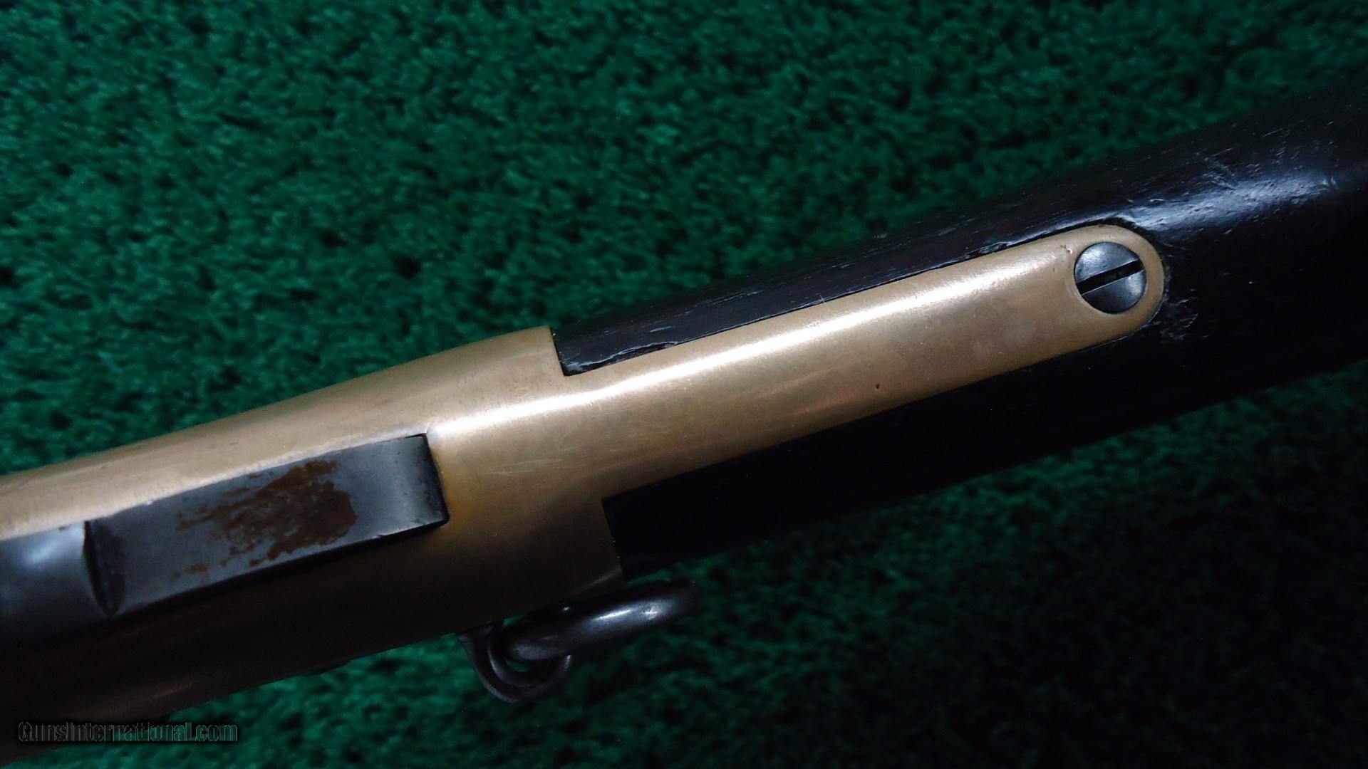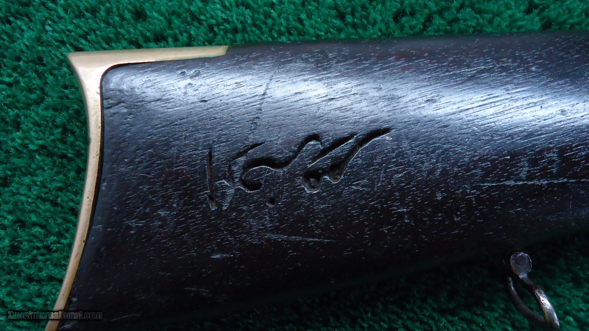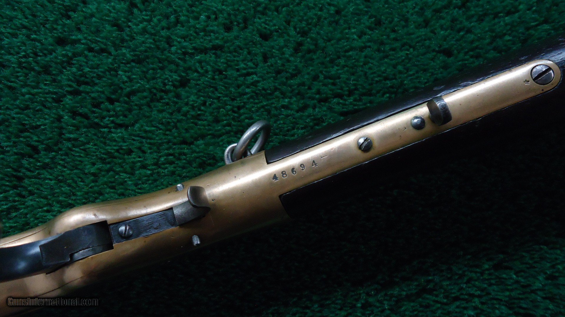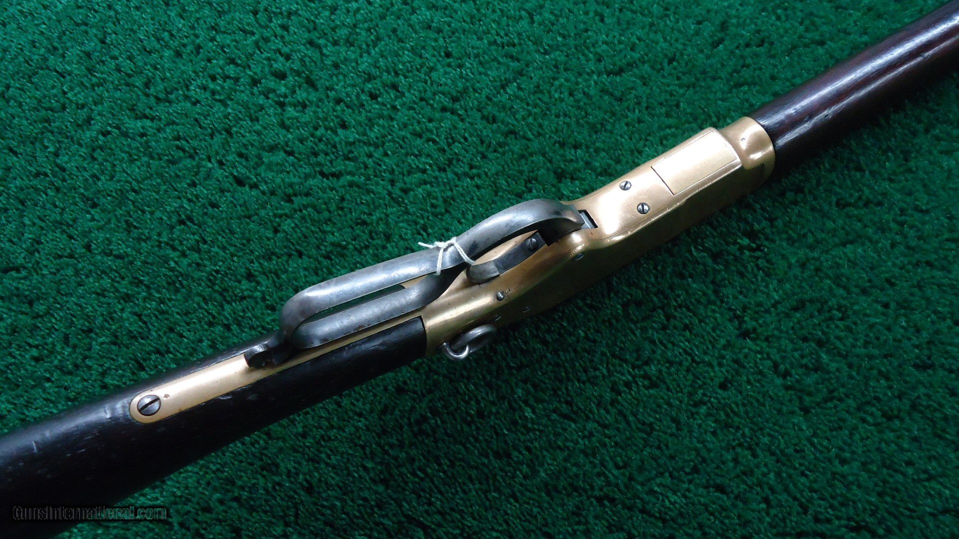 Description: Original sights. Good bore with sharp rifling. Barrel and mag tube retain about 90% original blue. Receiver has been polished some. Replacement sling swivels. Brass early style buttplate. Wood shows some Arabic symbols. On top of the barrel is a gold inlay about 2 inches long with more Arabic markings. Tight action. Good traces of case color on the hammer and lever. Leroy Merz Antique Firearms specializes in antique and vintage Winchesters and other fine American firearms. Since 1965 Mr. Merz has taken part in the world of firearms and has been a contributor to many well known reference books. We have hundreds of additional guns in every price range at our home online. Search for Merz Antiques in google. SOLD Antique: Yes Rifle Caliber: .44 Henry |