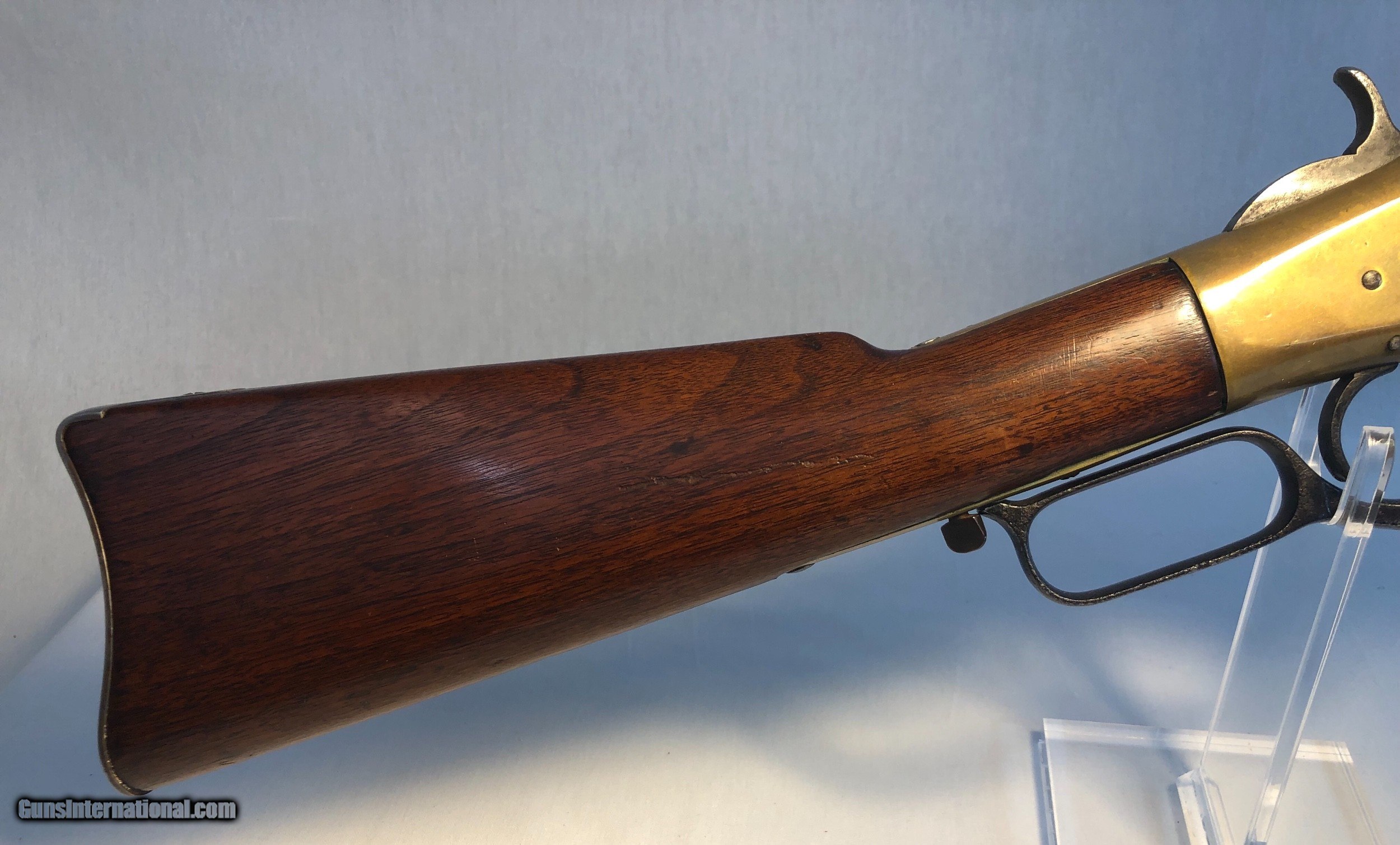 Description: Great looking 66 saddle ring carbine is available from a recent estate collection. This collection was meticuously cared for in its handling and storage for over 50 years. The stock and forearm on this carbine are in very good condition with no cracks or checking. The forearm has an impression on both sides in front of the barrel band, probably from band barrel removal at some point. Stock sports the original 3-piece cleaning rod. All markings are clear and legible on this gun. The bore is clean with visible good rifling present throughout the bore. This carbine is in excellent mechanical condition and the action is tight and crisp. Barrel and barrel bands have aged to a medium gray patina with little to no bluing present. Gorgeous saddle ring carbine. Ground shipping and handling is extra to the lower 48 states. No ship to CA, NJ This gun is sold as a collectors item only and we make no guarantees to its quality or functionality. This firearm should be checked by a qualified gunsmith before firing. Seller bears no responsibility for the functionality of this firearm. Please know and abide by your local laws in regards to purchasing firearms. We accept Master Card and Visa, personal check, money order, or cashiers check. Layaway available. SOLD Curio/Relic: Yes Antique: Yes Manufacturer: Winchester Model: 1894 Serial Number: 167714 Caliber Info: 44 Bore: GOOD Condition: VERY GOOD Metal Condition: GOOD Wood Condition: VERY GOOD Bore Condition: GOOD Manufacture Date: 1891 |