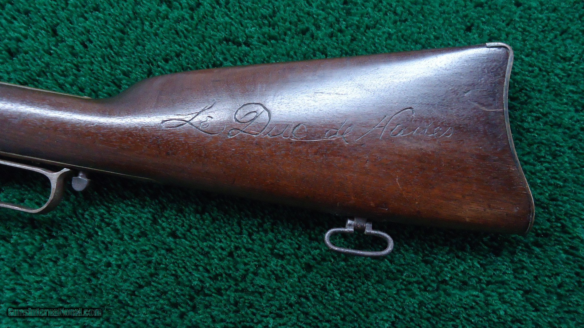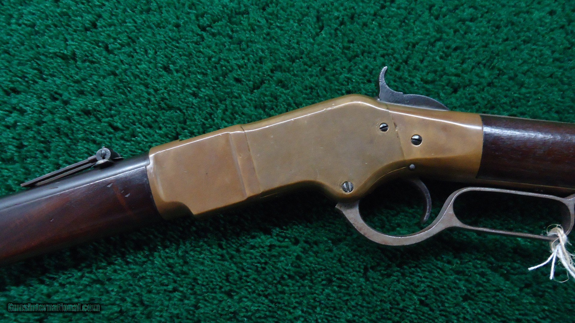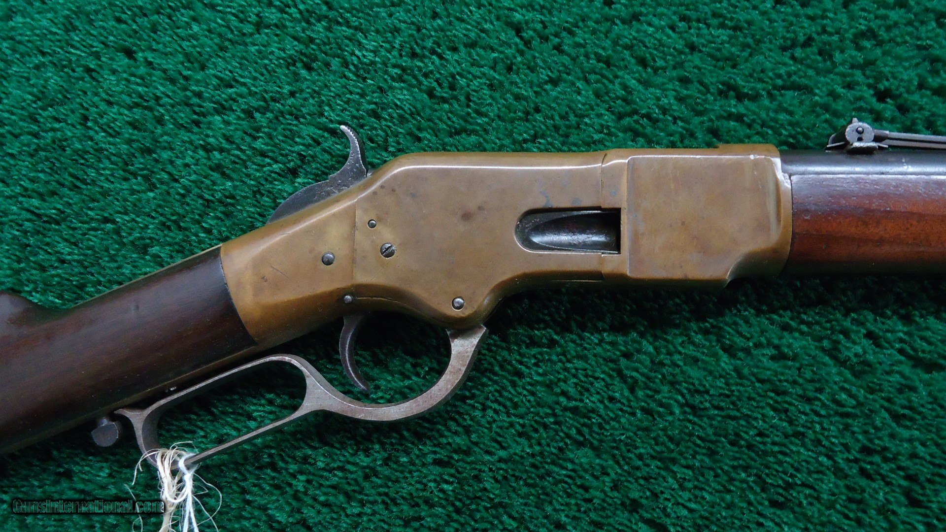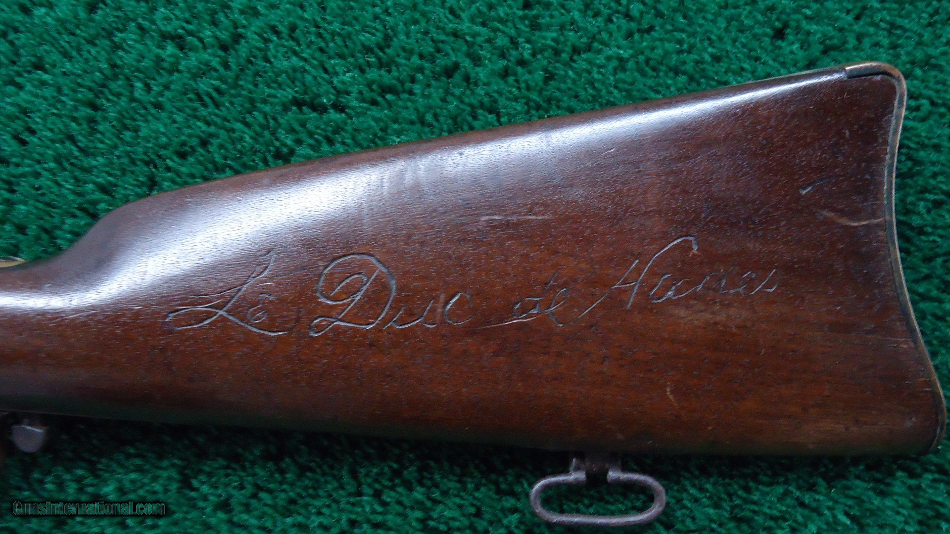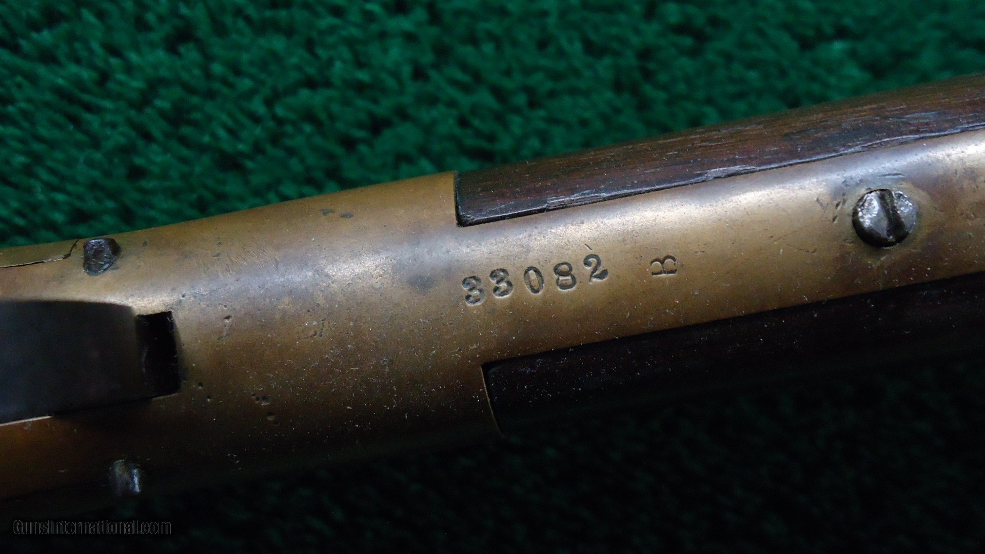 Description: Serial number 33082 which falls right in the middle of a group of muskets identified as being possible weapons used in the Battle of Liberty Place September 1874. 27 inch round barrel chambered in 44 RFwith 24 inch mag tube and musket style long forearm wood. The barrel and mag tube are a blue/brown color with some roughness at the muzzle. Sights include post front sight and ladder rear sight. Receiver is a deep mustard color in good overall condition with dings and dents. Wood is in good overall condition with of the period carving on the left side of butt "Le Duc de Hanes". Sling swivels are present. A good looking 1866. Leroy Merz Antique Firearms specializes in antique and vintage Winchesters and other fine American firearms. Since 1965 Mr. Merz has taken part in the world of firearms and has been a contributor to many well known reference books. We have hundreds of additional guns in every price range at our home online. Search for Merz Antiques in google. SOLD Antique: Yes Rifle Caliber: .44 Rimfire |