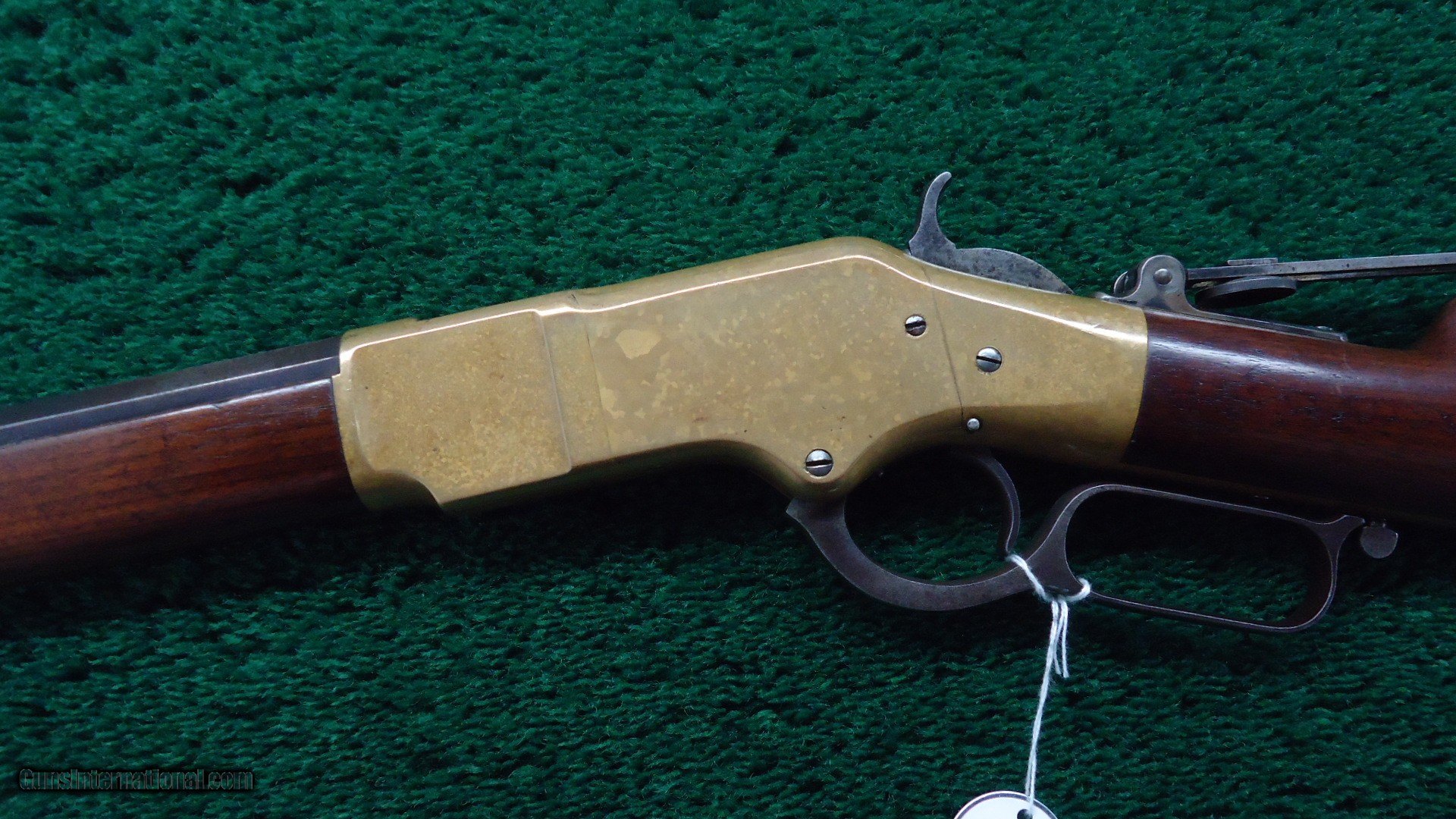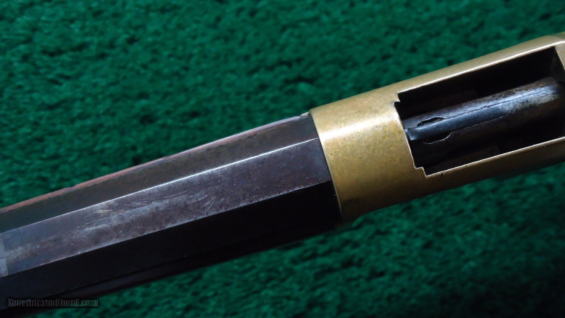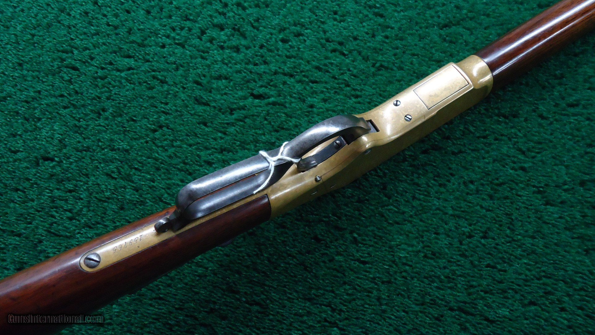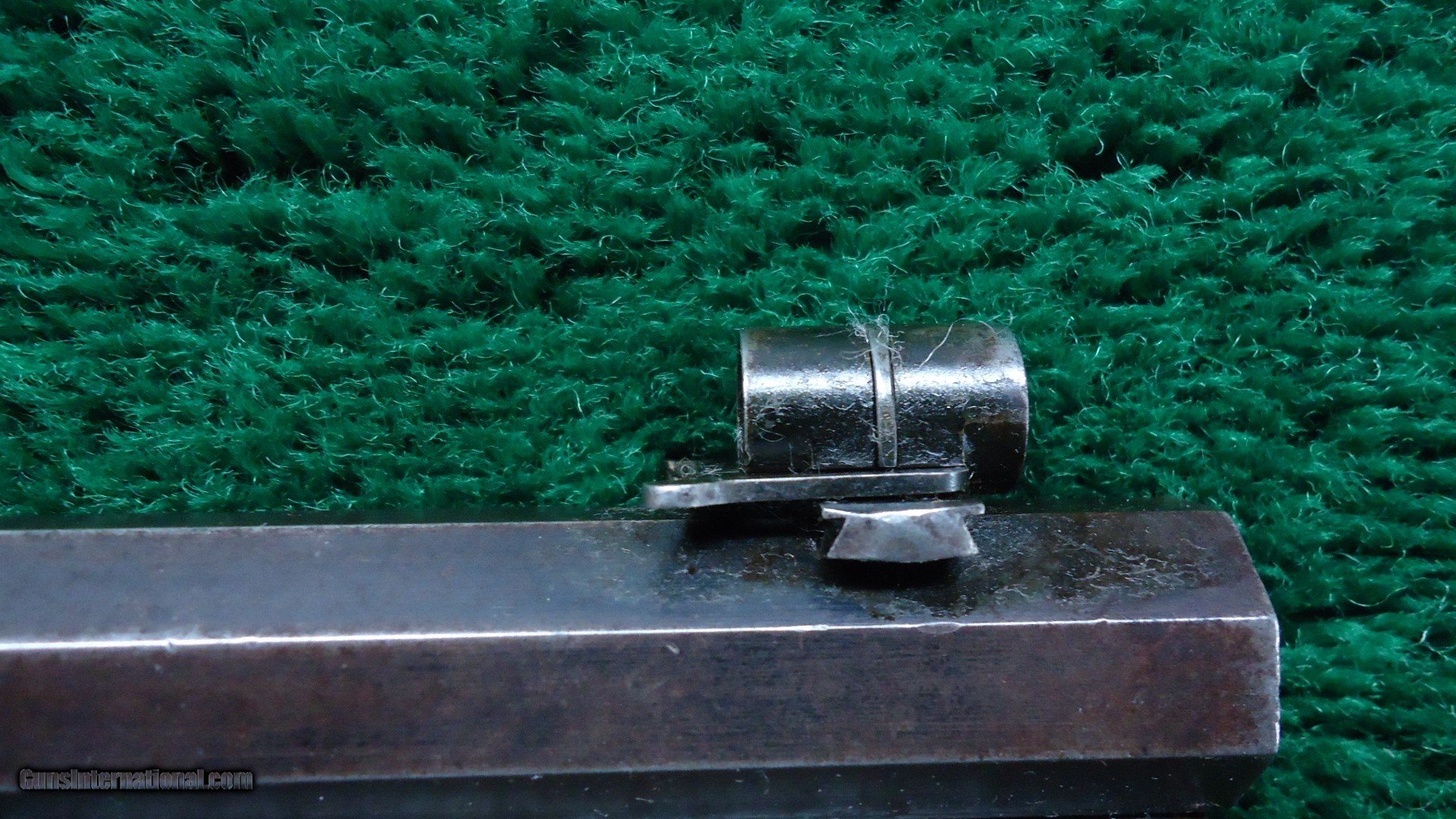 Description: Standard configuration 24 inch octagon barrel with full length mag tube and rifle style buttplate. Someone has set this one up for target shooting with the long range tang sight and the spirit level on the barrel as well as the hooded front sight. Bore is not too bad with some shine and deep rifling. Doesn't look too bad for an 1866. Beautiful butterscotch patina on the brass. A fair amount of original thinning blue remains on the barrel and mag tube with the balance turning a plum/brown. Nice looking and fitting wood. This is a later gun as it has the steel butt plate and forend cap. Rifle was made in 1883.Good looking old Winchester! Leroy Merz Antique Firearms specializes in antique and vintage Winchesters and other fine American firearms. Since 1965 Mr. Merz has taken part in the world of firearms and has been a contributor to many well known reference books. Just recently we mailed the 129th edition of our privately-published catalog. We have hundreds of additional guns in every price range at our home online. Search for Merz Antiques in google. SOLD Antique: Yes |