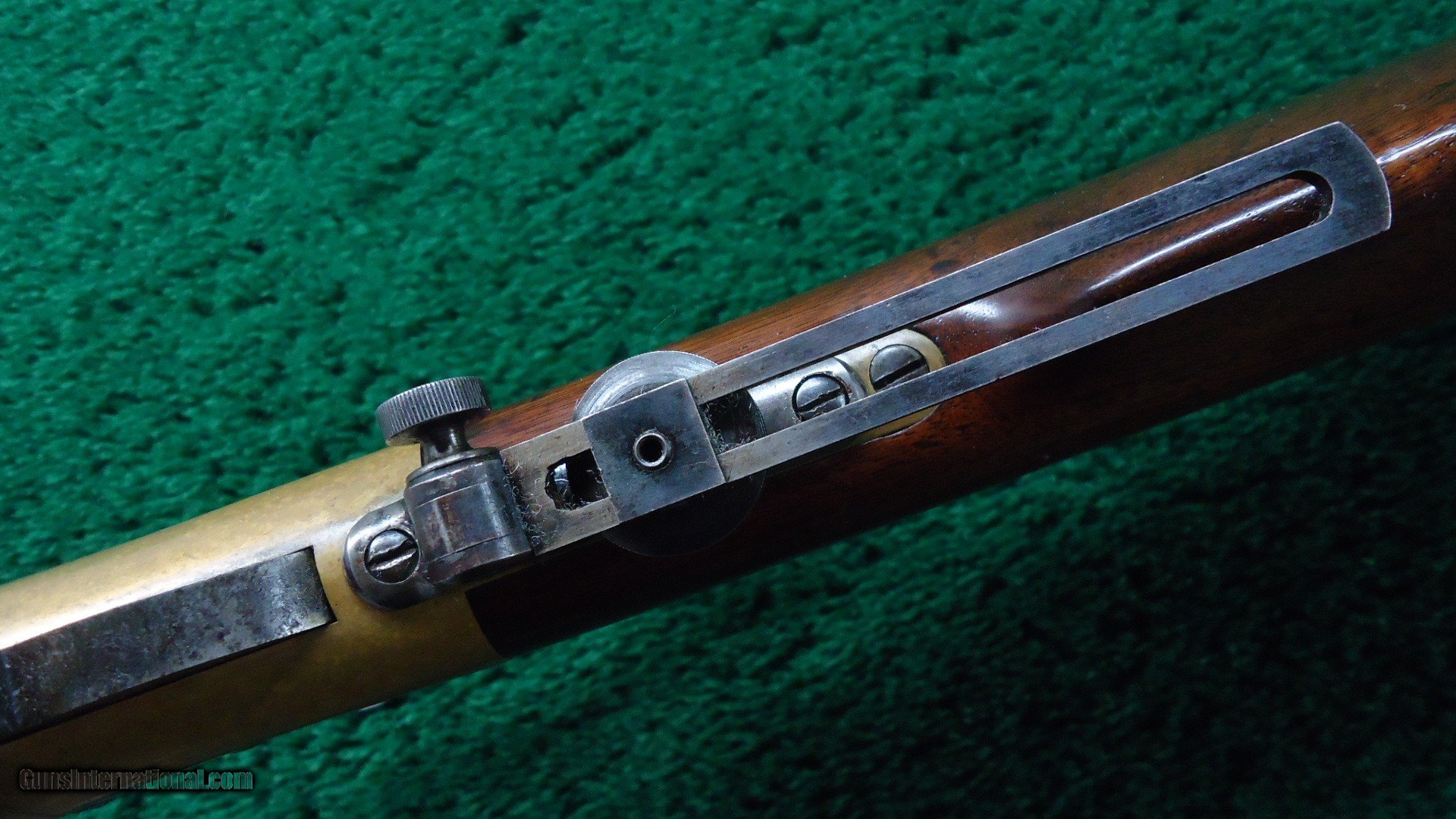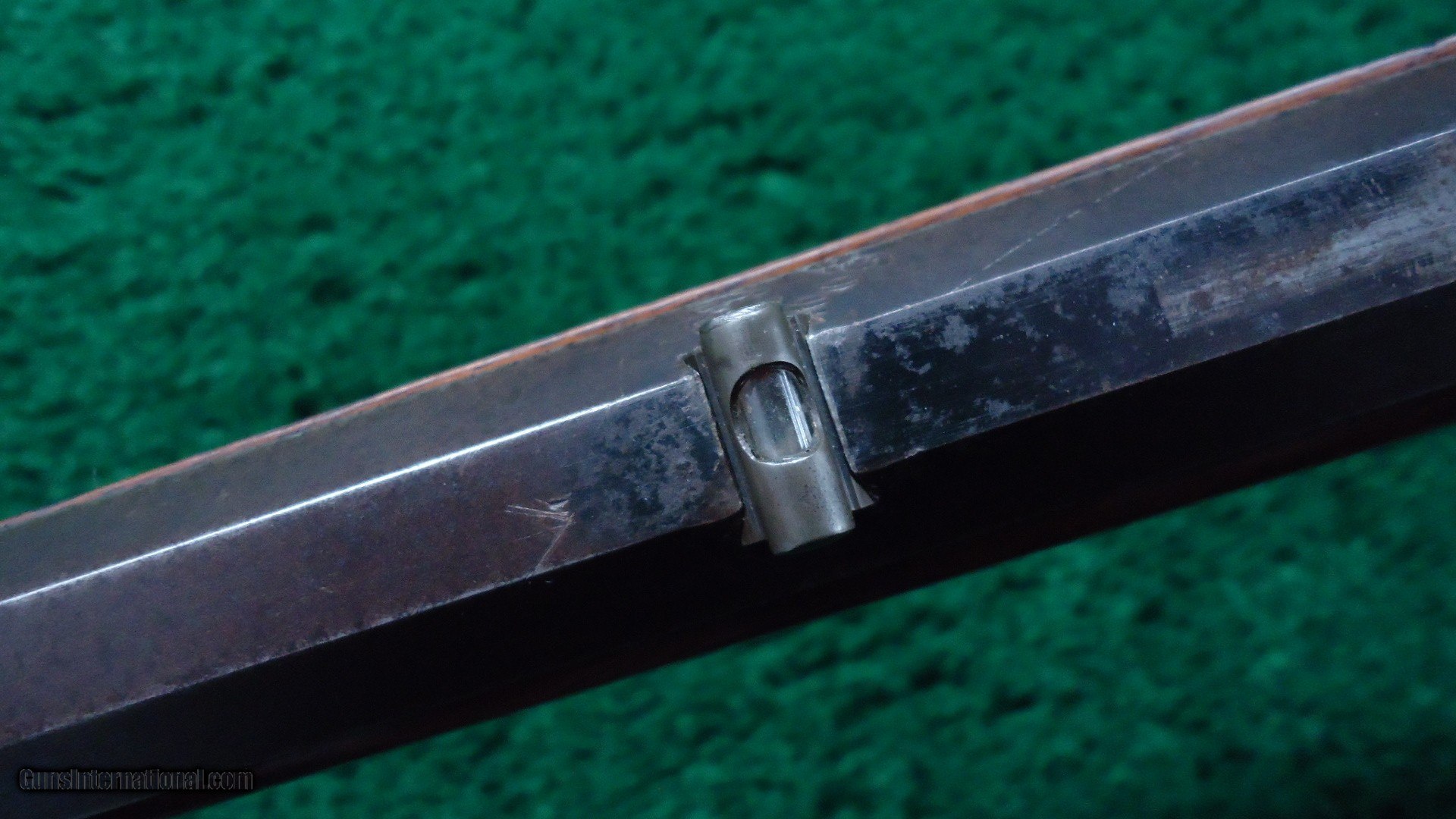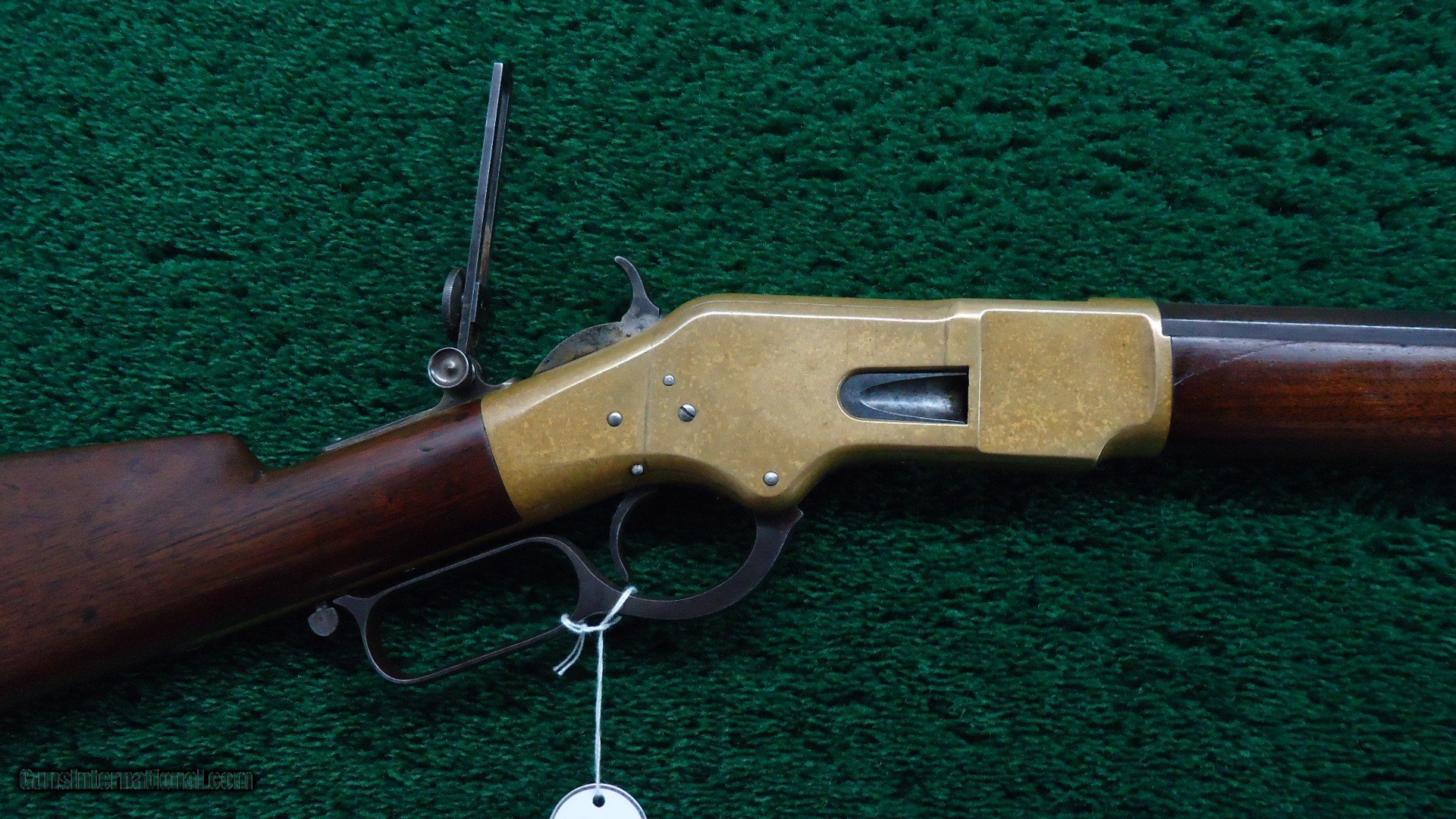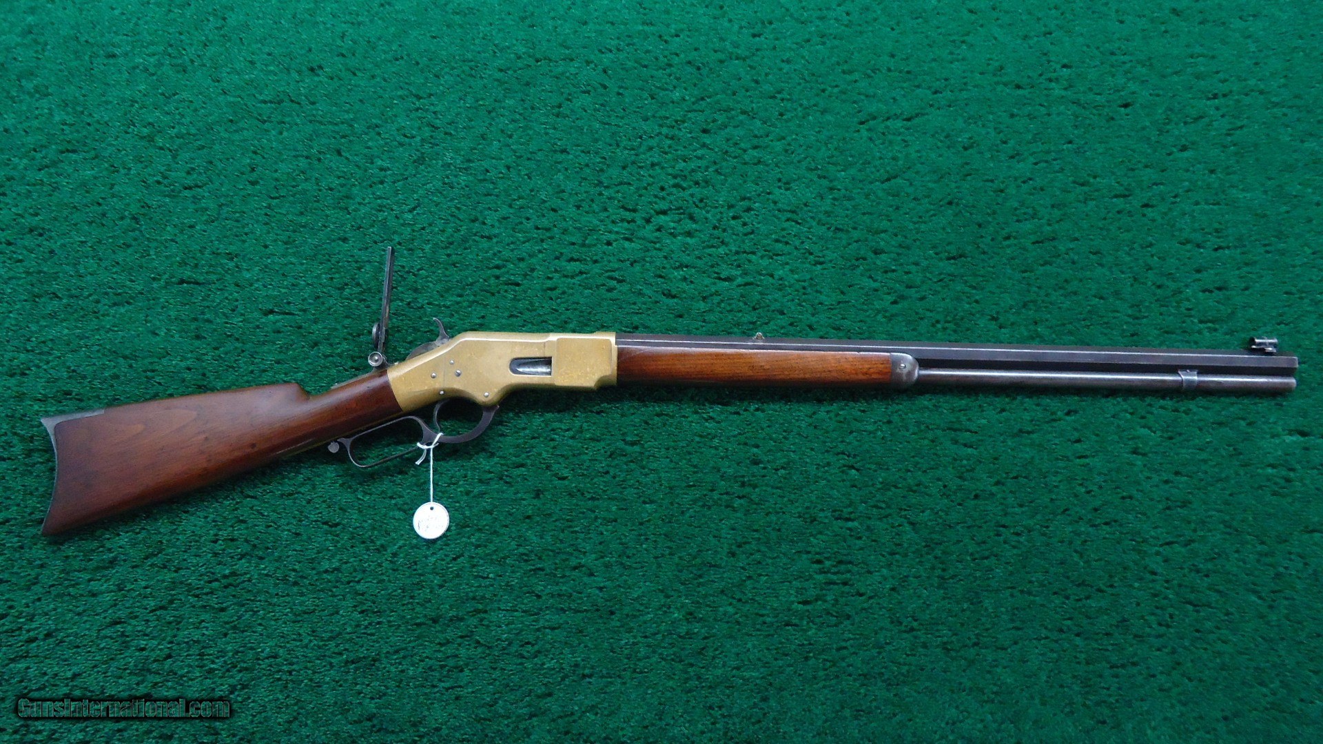 Description: Standard configuration 24 inch octagon barrel with full length mag tube and rifle style buttplate. Someone has set this one up for target shooting with the long range tang sight and the spirit level on the barrel as well as the hooded front sight. Bore is not too bad with some shine and deep rifling. Doesn't look too bad for an 1866. Beautiful butterscotch patina on the brass. A fair amount of original thinning blue remains on the barrel and mag tube with the balance turning a plum/brown. Nice looking and fitting wood. This is a later gun as it has the steel butt plate and forend cap. Rifle was made in 1883.Good looking old Winchester! Leroy Merz Antique Firearms specializes in antique and vintage Winchesters and other fine American firearms. Since 1965 Mr. Merz has taken part in the world of firearms and has been a contributor to many well known reference books. Just recently we mailed the 129th edition of our privately-published catalog. We have hundreds of additional guns in every price range at our home online. Search for Merz Antiques in google. SOLD Antique: Yes |