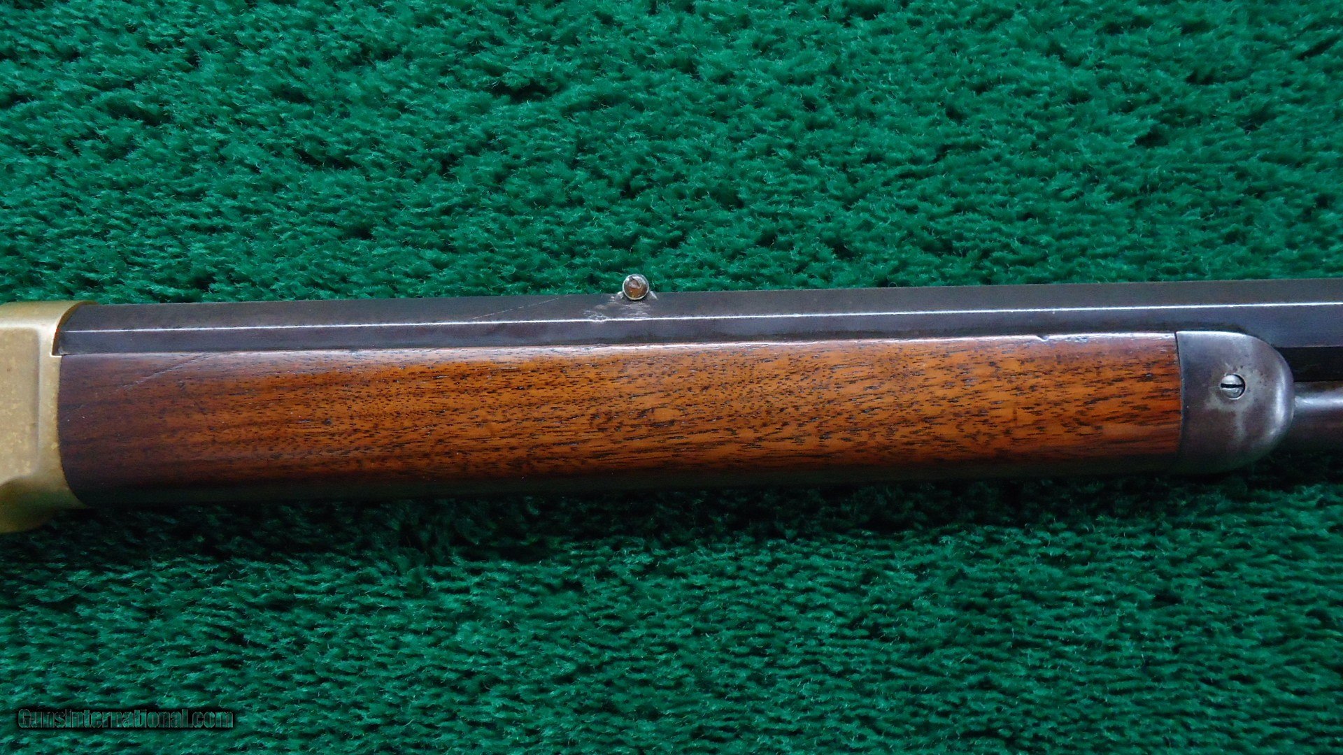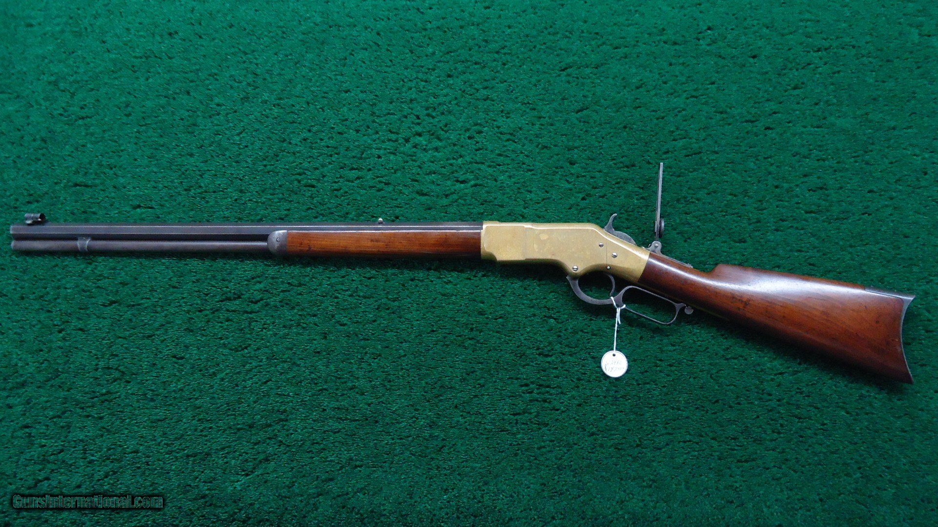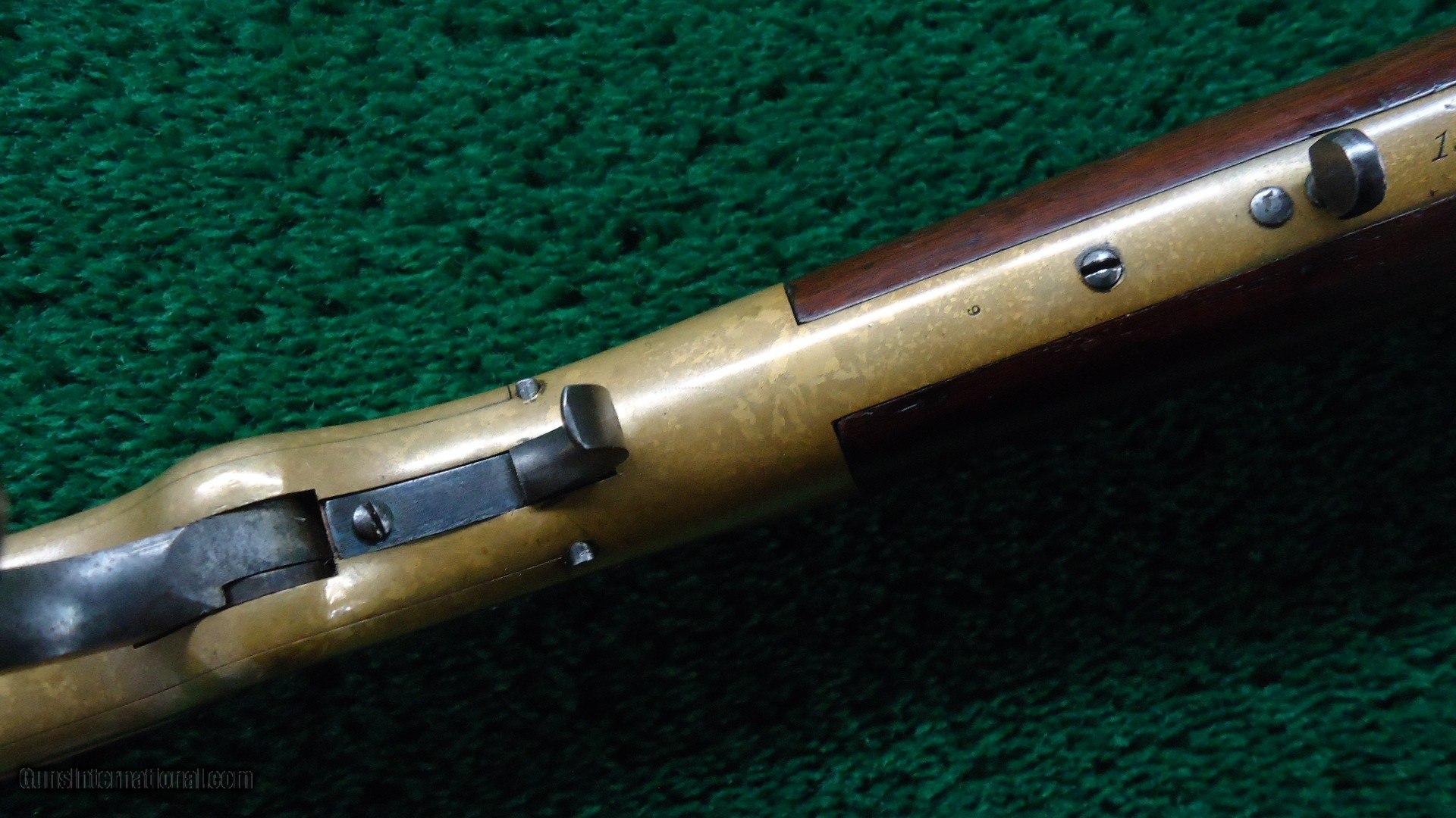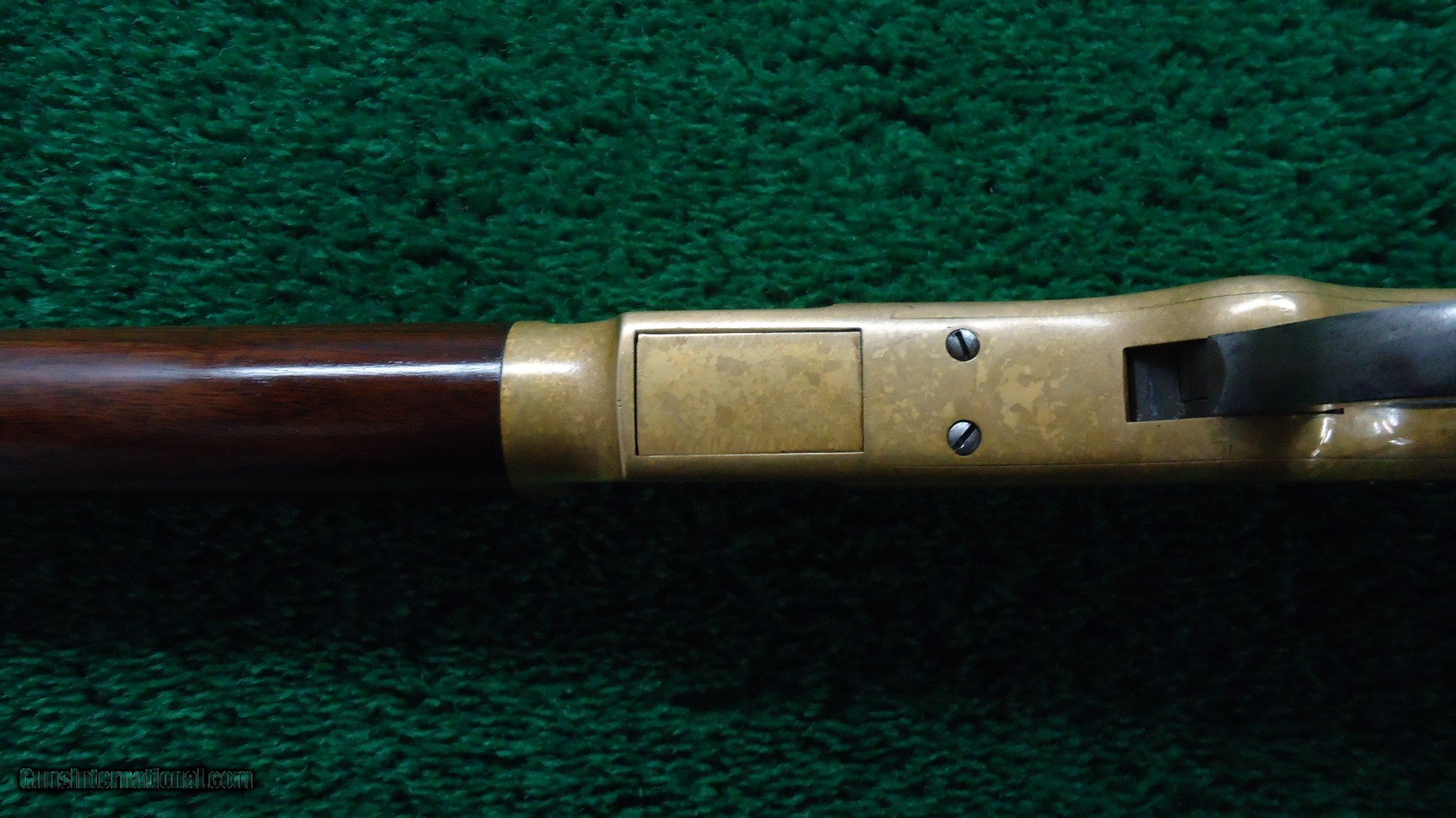Description: Standard configuration 24 inch octagon barrel with full length mag tube and rifle style buttplate. Someone has set this one up for target shooting with the long range tang sight and the spirit level on the barrel as well as the hooded front sight. Bore is not too bad with some shine and deep rifling. Doesn't look too bad for an 1866. Beautiful butterscotch patina on the brass. A fair amount of original thinning blue remains on the barrel and mag tube with the balance turning a plum/brown. Nice looking and fitting wood. This is a later gun as it has the steel butt plate and forend cap. Rifle was made in 1883.Good looking old Winchester! Leroy Merz Antique Firearms specializes in antique and vintage Winchesters and other fine American firearms. Since 1965 Mr. Merz has taken part in the world of firearms and has been a contributor to many well known reference books. Just recently we mailed the 129th edition of our privately-published catalog. We have hundreds of additional guns in every price range at our home online. Search for Merz Antiques in google. SOLD Antique: Yes |