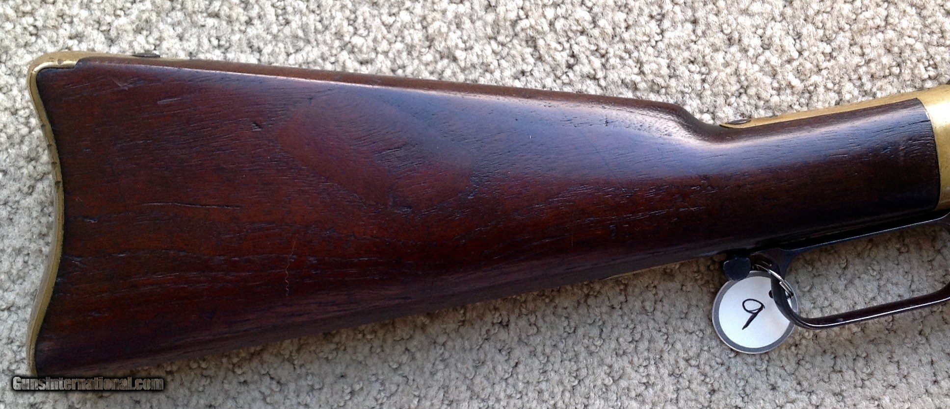 Description: PRICE REDUCED!! Thank you for reviewing this listing!! Being offered sale is a very nice classic Winchester Model 1866 Saddle Ring Carbine in .44 Rimfire. Serial#157823 manufactured in 1882. 20" round barrel, clean bore retaining strong rifling with some light pitting in spots. All metal is pleasing light to dark brown patina, address markings remain clear and legible. The brass receiver appears to have been cleaned sometime in its past. however has turned to a nice patina brass. All wood is in very good condition, no cracks or repairs present with minor marks due to age and normal wear. This carbine is sighted with a correct folding rear ladder sight and the front sight is the correct integral blade as part of the front barrel band. Action functions as it should. Please review all photos for the condition of this very nice carbine. A nice honest old west cowboy carbine. One note of interest, the carbine comes with a "general info" note from the cody museum that states the original order# and includes the dates the carbine was received and shipped from the Winchester warehouse. Shipping via USPS is included to the lower 48 states. This gun is sold as a collectors item only and we make no guarantees to functionality, seller bears no responsibility for any attempt to discharge this firearm with live ammo. Please know and abide by your local laws in regards to purchasing firearms. Payments Accepted:: certified check, USPS money order, bank cashiers check, personal check (with shipping hold) Please contact me via email, phone call( please leave a msg if no answer) or text my cell #. Thank you!! SOLD Antique: Yes Manufacturer: Winchester Model: 1866 Serial Number: 157823 Caliber Info: .44RF Condition: Very good Metal Condition: Nice gray/brownish patina Wood Condition: Very good Bore Condition: Good |