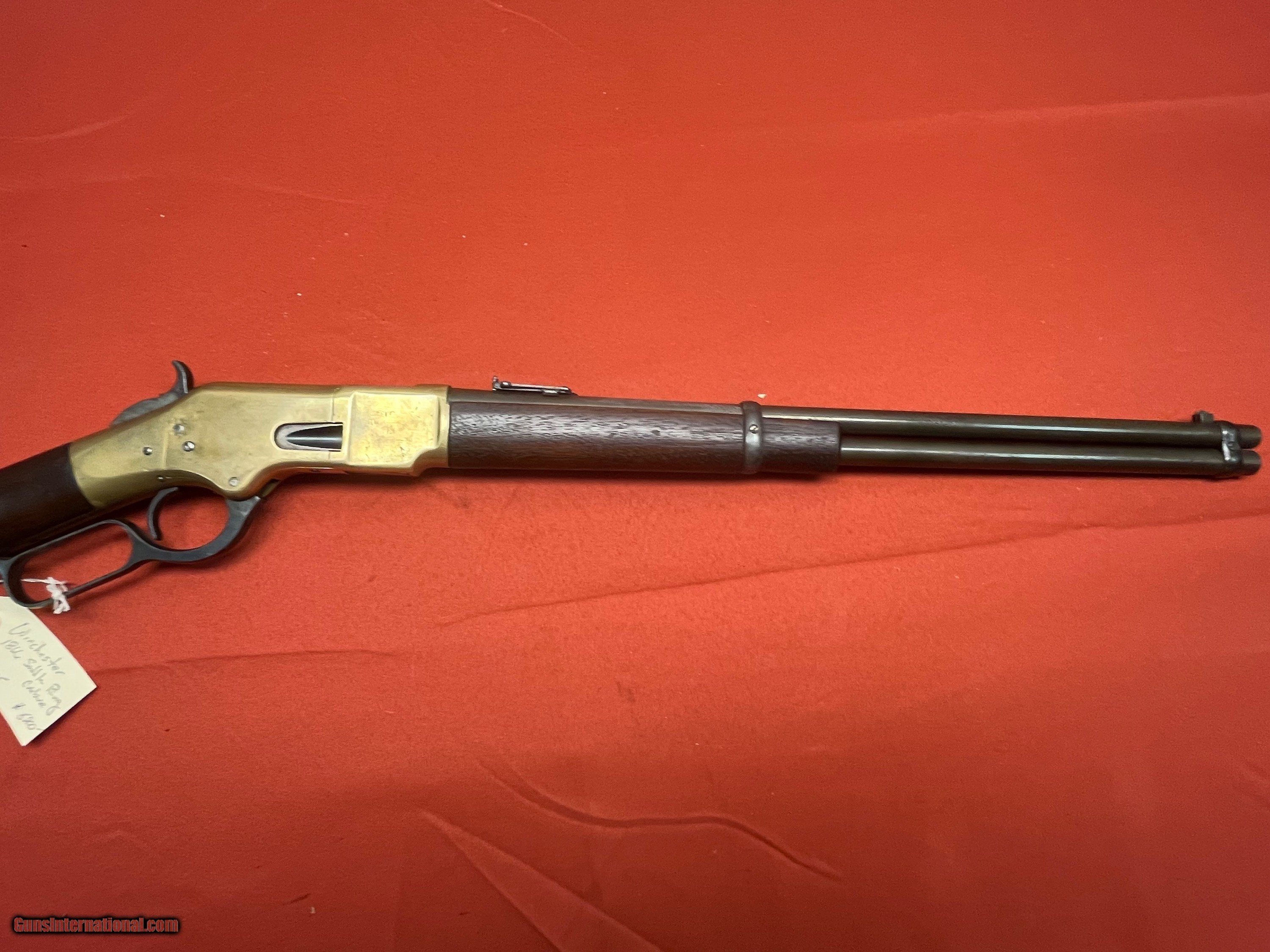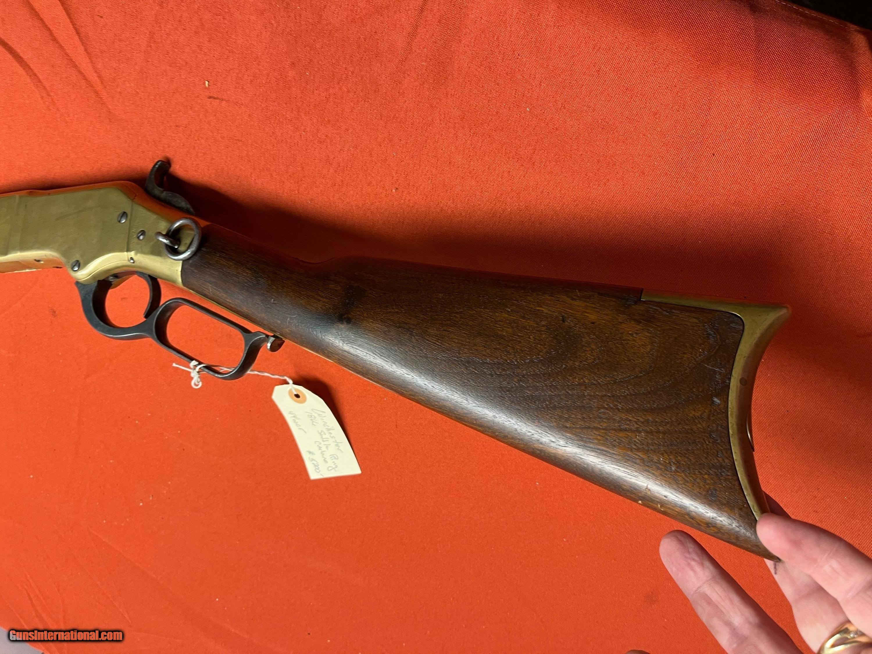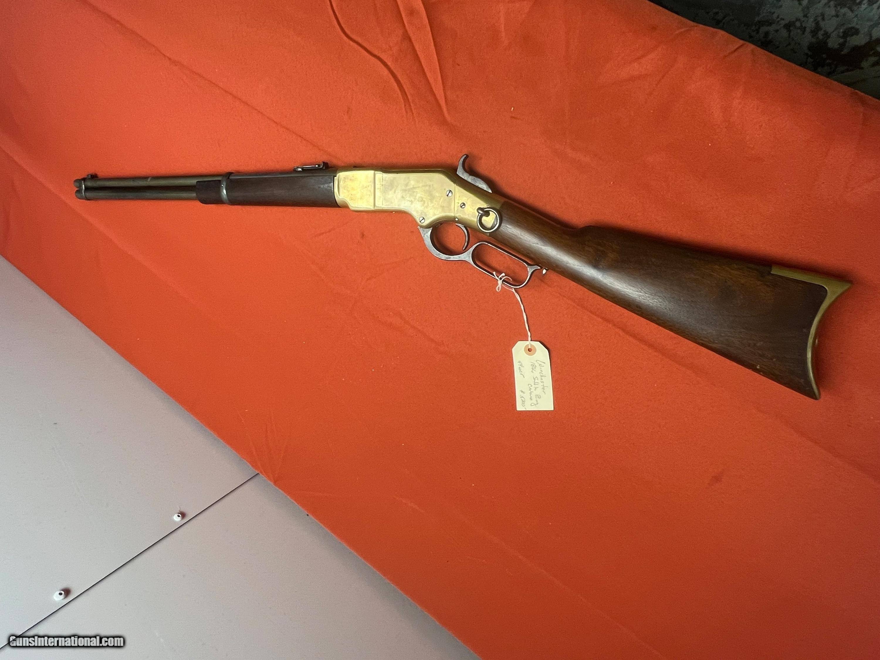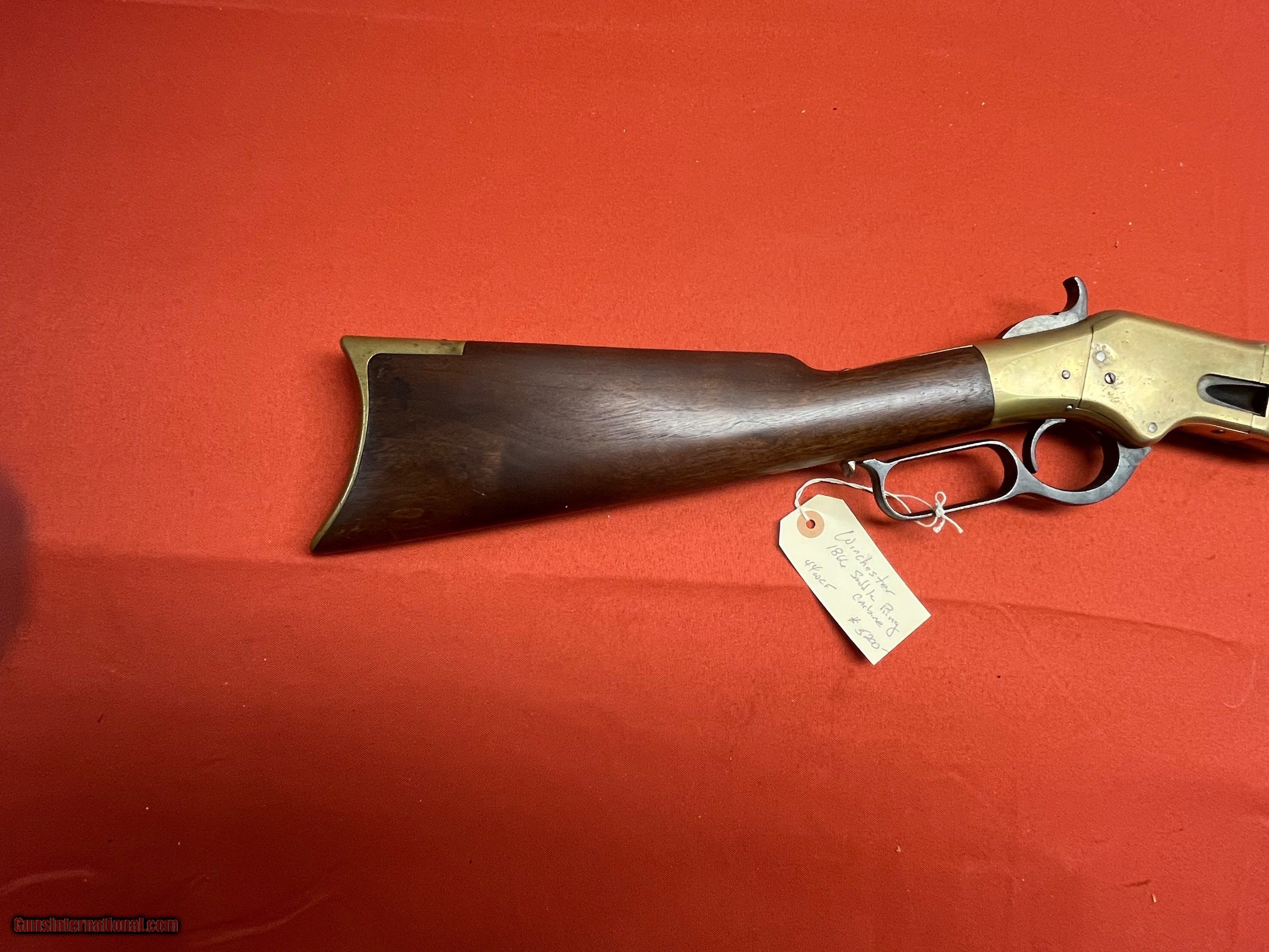 Description: WINCHESTER MODEL 1866 SADDLE RING CARBINE. SER# 53857, MADE IN 1871. CALIBER 44 W.C.F. CONVERTED FROM 44 HENRY. RECEIVER SHOWS A NICE MUSTARD PATINA COLOR. VERY NICE SOLID WOOD WITH NO CRACKS. SMOOTH ACTION THAT FUNCTIONS FINE, BARREL IS PROBABLY FROM A 1892 WINCHESTER. VERY SHOOTABLE BORE WITH DESCENT RIFLING AND LIGHT TO MODERATE PITTING. EASTERN BRANCH FIREARMS ADD 50.00 SHIPPING – HANDGUNS SHIP NEXT DAY AIR ADD 50.00 SHIPPING – LONG GUNS SHIP GROUND OPTIONAL INSURANCE IS AVAILABLE AT 1.25 PER 100.00 Questions e-mail or call Glen at Eastern Branch Firearms 207-215-5021 TERMS – PLEASE READ BEFORE I DO NOT HAVE A LAYAWAY OPTION ( WE ACCEPT CREDIT CARDS ) -- I GET ALOT OF REQUEST FOR TRADES, I WOULD PERFER NOT TO DO TRADES ON MY INTERNET LISTINGS PAYMENT OPTIONS- We accept money orders, cashier’s checks , bank checks. sorry no personal checks. We accept all major credit cards please add 3% to the ’s cash discount price.(Shipping within the state of Florida - Florida Residents must pay sales tax) .Handguns and long guns do need to be shipped separate. PLEASE do not send payment via FED EX . USPS & UPS are fine. Thank you. We include a signed copy of our FFL with each firearm shipped. SAFTY NOTICE- Buyer is solely responsible for determining that a used gun is safe to shoot. The firearms offered have not been test fired but have been given a visual inspection only for purposes. It is a requirement that every used firearm is inspected by a qualified gunsmith before firing. By , the buyer agrees to hold seller harmless against damages, injury, or death caused by defective merchandise. RETURN POLICY- All firearms come with a 3-day non firing , non messing with ( turning srews ,taking apart,removing parts, scoping. firing, cleaning or messing with in anyway) inspection/return privilege.Inspection is based on a visual review of the gun to confirm the gun is in the condition stated. In the case of a return, buyer pays all shipping charges & if paid for with a credit card buyer absorbs the 3% credit card charges . So please ask questions BEFORE you bid. Thanks for Looking and Good Luck!! U.S. sales only, no exports…this includes antiques. I will ship to third party for exporting SOLD Antique: Yes |