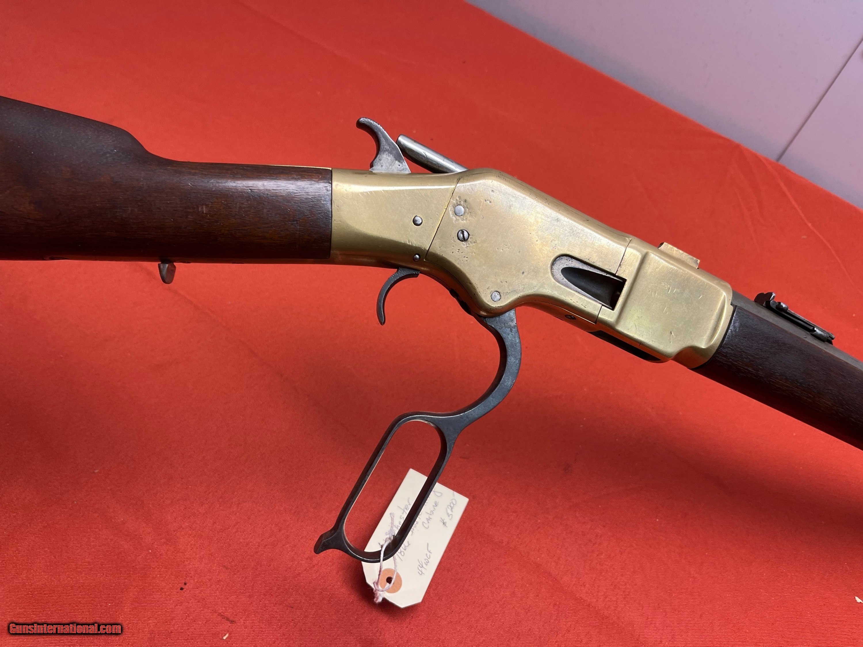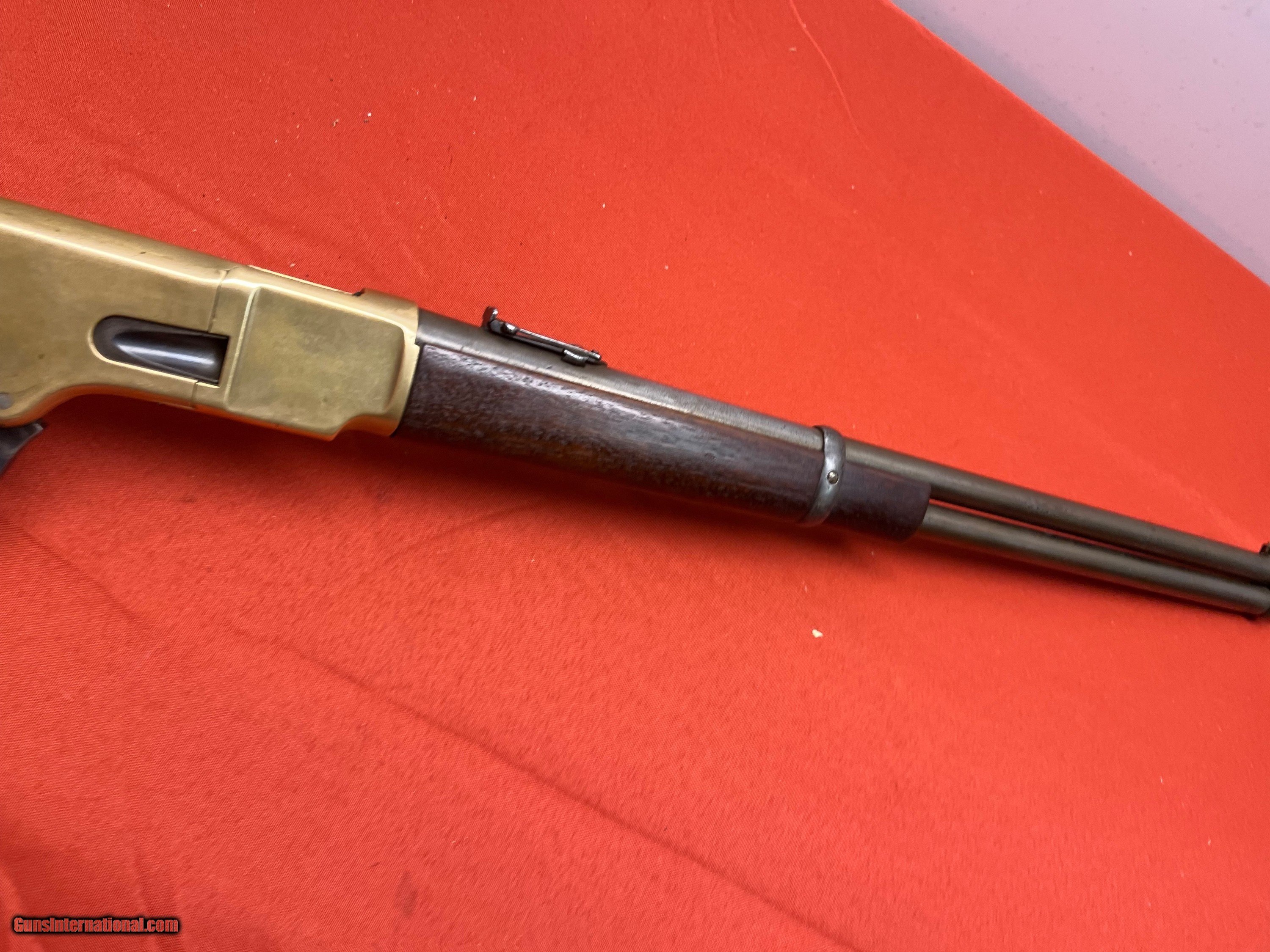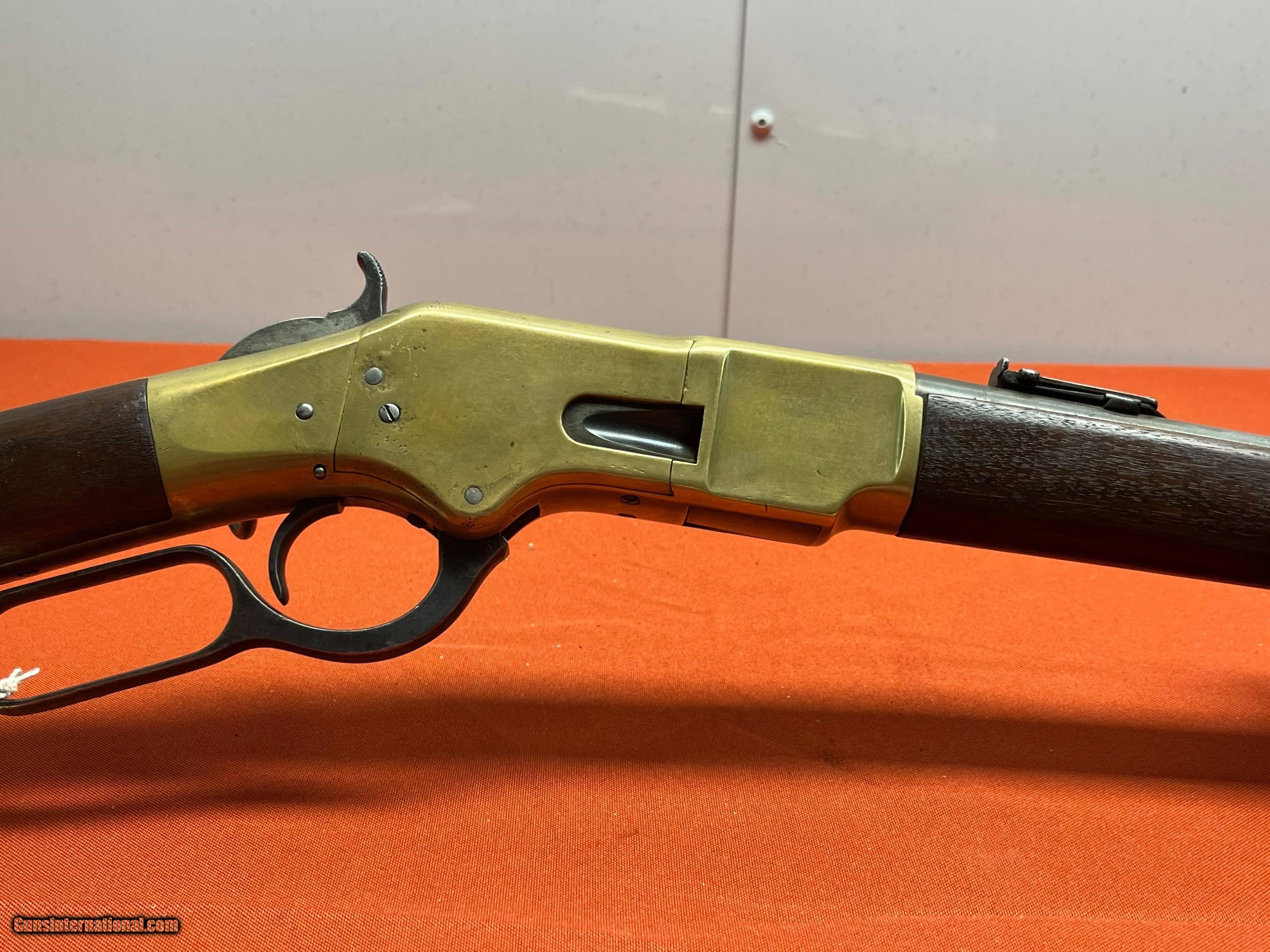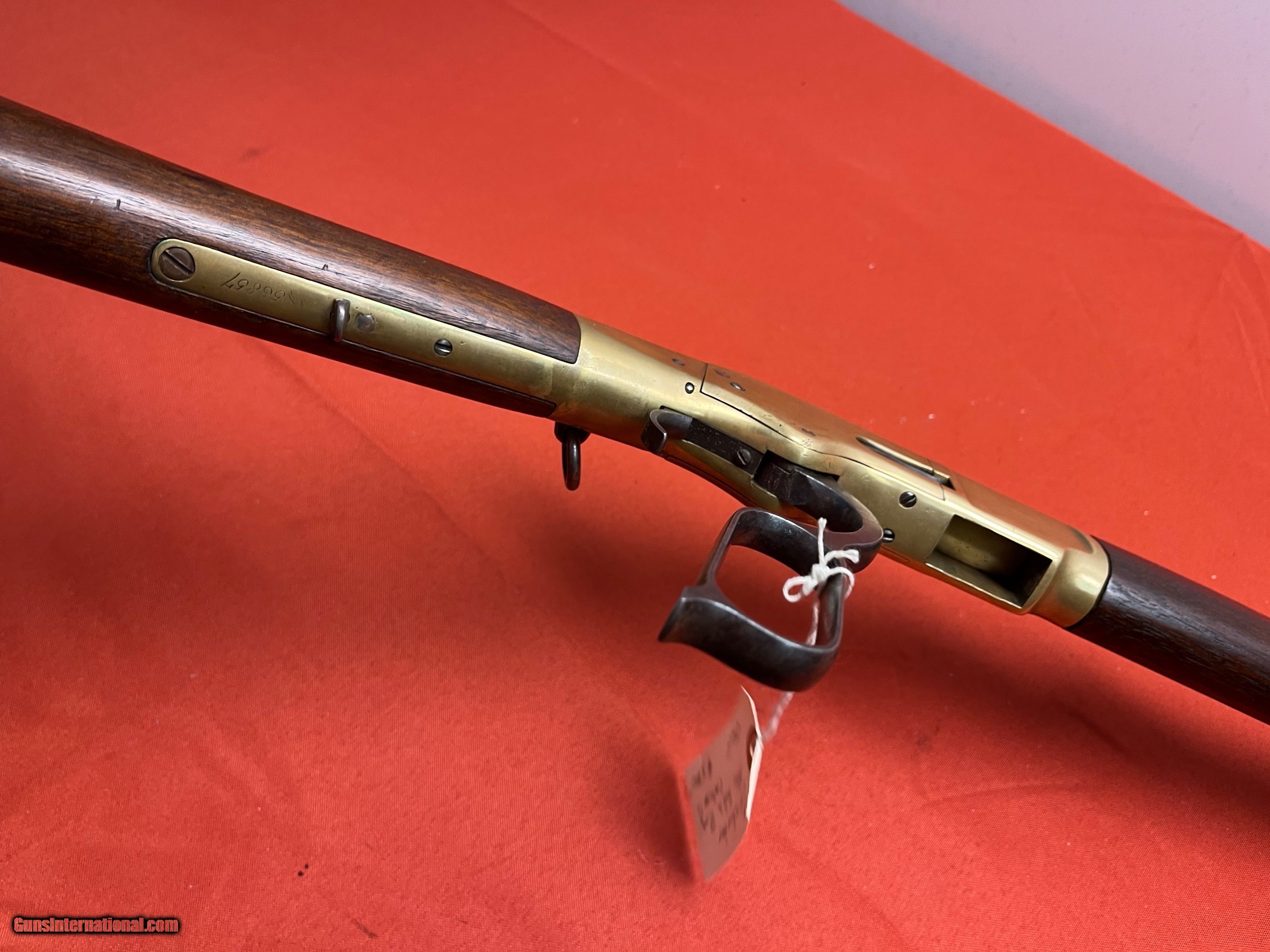 Description: WINCHESTER MODEL 1866 SADDLE RING CARBINE. SER# 53857, MADE IN 1871. CALIBER 44 W.C.F. CONVERTED FROM 44 HENRY. RECEIVER SHOWS A NICE MUSTARD PATINA COLOR. VERY NICE SOLID WOOD WITH NO CRACKS. SMOOTH ACTION THAT FUNCTIONS FINE, BARREL IS PROBABLY FROM A 1892 WINCHESTER. VERY SHOOTABLE BORE WITH DESCENT RIFLING AND LIGHT TO MODERATE PITTING. EASTERN BRANCH FIREARMS ADD 50.00 SHIPPING – HANDGUNS SHIP NEXT DAY AIR ADD 50.00 SHIPPING – LONG GUNS SHIP GROUND OPTIONAL INSURANCE IS AVAILABLE AT 1.25 PER 100.00 Questions e-mail or call Glen at Eastern Branch Firearms 207-215-5021 TERMS – PLEASE READ BEFORE I DO NOT HAVE A LAYAWAY OPTION ( WE ACCEPT CREDIT CARDS ) -- I GET ALOT OF REQUEST FOR TRADES, I WOULD PERFER NOT TO DO TRADES ON MY INTERNET LISTINGS PAYMENT OPTIONS- We accept money orders, cashier’s checks , bank checks. sorry no personal checks. We accept all major credit cards please add 3% to the ’s cash discount price.(Shipping within the state of Florida - Florida Residents must pay sales tax) .Handguns and long guns do need to be shipped separate. PLEASE do not send payment via FED EX . USPS & UPS are fine. Thank you. We include a signed copy of our FFL with each firearm shipped. SAFTY NOTICE- Buyer is solely responsible for determining that a used gun is safe to shoot. The firearms offered have not been test fired but have been given a visual inspection only for purposes. It is a requirement that every used firearm is inspected by a qualified gunsmith before firing. By , the buyer agrees to hold seller harmless against damages, injury, or death caused by defective merchandise. RETURN POLICY- All firearms come with a 3-day non firing , non messing with ( turning srews ,taking apart,removing parts, scoping. firing, cleaning or messing with in anyway) inspection/return privilege.Inspection is based on a visual review of the gun to confirm the gun is in the condition stated. In the case of a return, buyer pays all shipping charges & if paid for with a credit card buyer absorbs the 3% credit card charges . So please ask questions BEFORE you bid. Thanks for Looking and Good Luck!! U.S. sales only, no exports…this includes antiques. I will ship to third party for exporting SOLD Antique: Yes |