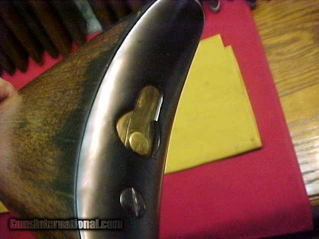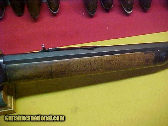 Description: #3892 Winchester 1873 OBFMCB standard 24” barrel length and standard trigger, 44WCF, and being a mid-to-late 3rd Variation in the 465XXX range (1893) with a smooth action and a bright shiny 9+ bore! Now, at first glance I thought this was a smooth bore because the rifling is very shallow, however it is consistent for the entire length, and the rifling is all the same depth from one end of the bore to the other. Also, being a mid-1890s gun, the Winchester factory had finally started using the step-down breech frame on some of the Model 1873s in 44-cal, and at some point in these later ‘73s, apparently the non-step frame was discontinued. Previous to that, the 44-caliber rifle frames usually did not have the step-down at the breech, however that was used on all the three other calibers and on some of the special order 44s. The exterior of this rifle is a very near perfect refinish (the lever, hammer, etc, should have been casehardened). The metal and wood are totally devoid of any damage or mentionable dings/or dents, but the wood does have some staining to the stock from oil, etc. The finish is about 97% coverage of an even blue with a 85% density, and the markings are very fine as well. The sights do look to be generic replacements and all these facts (along with 55-years of collecting) form my opinion that this is a well done restoration and refinish and is NOT the original factory finish ….so based on THAT opinion, I have priced it with that in my mind. Near Excellent ( as refinished ), so it is therefore not a $4500 gun, but it sure is a heck of a buy at $2475! SOLD Antique: Yes |
