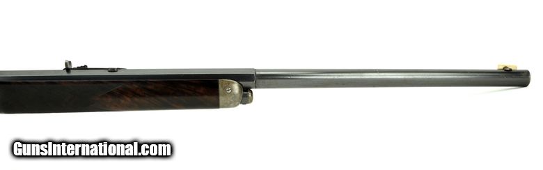 Description: Excellent Deluxe Winchester Model 1873 Rifle. Made in 1879. Early second Model deluxe that still has the thumb print dust cover. Condition is excellent with 98% of the original blue. Strong case colors remain on the frame, forend cap, lever, hammer, and butt plate. Wood is very fine with light handling wear. Gun has half octagon, half round barrel with a half magazine. Bore is very good with minor spots of pitting. Action works perfect. Gun comes with factory letter confirming all features. Along with this Winchester comes a letter from noted Winchester Historian George Madis attesting to the originality of this gun. Very fine Deluxe gun that is completely original! SOLD Antique: Yes |