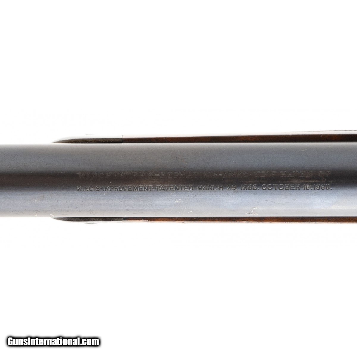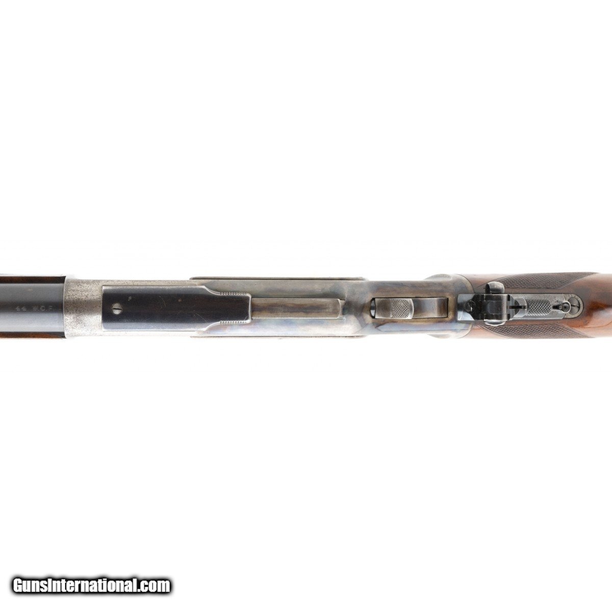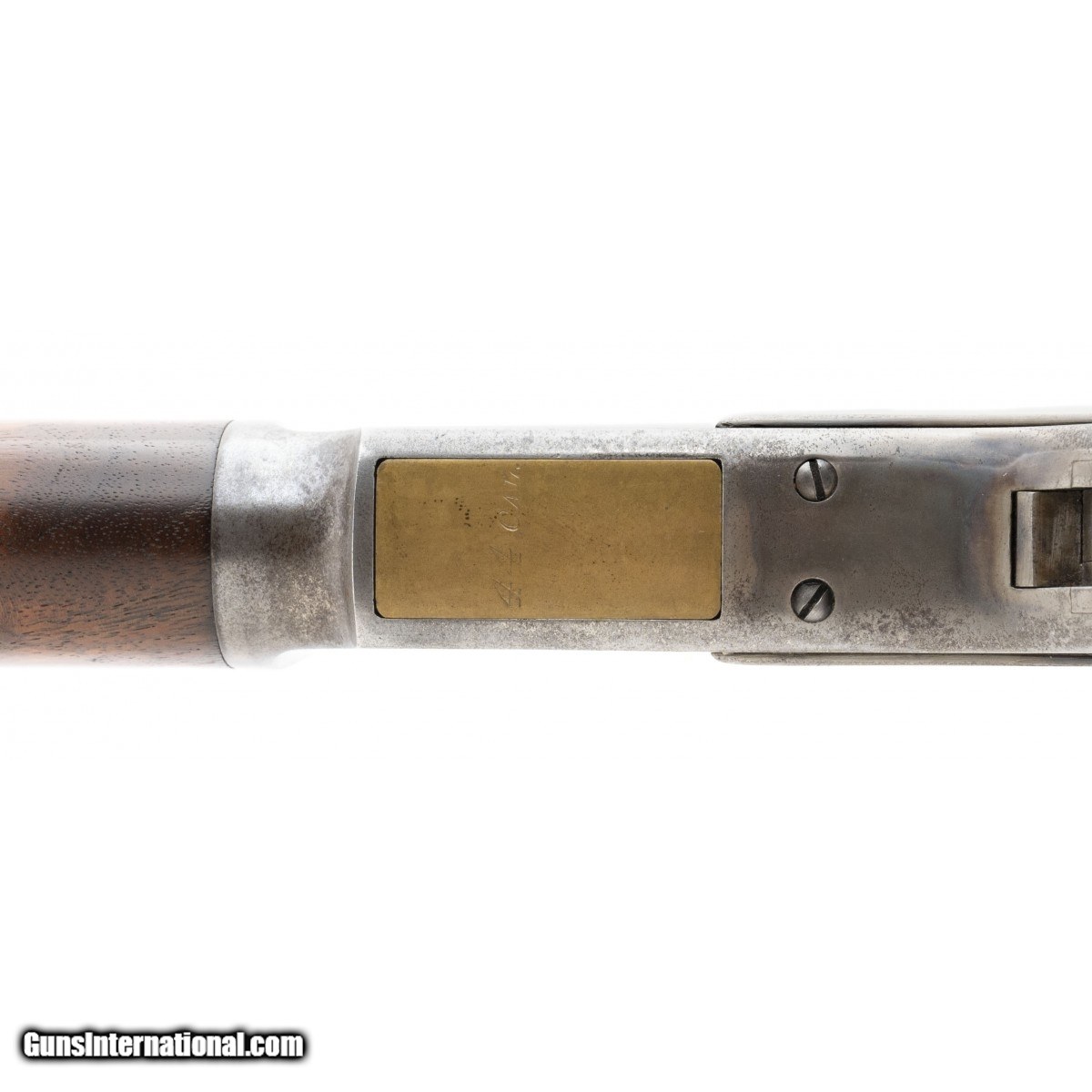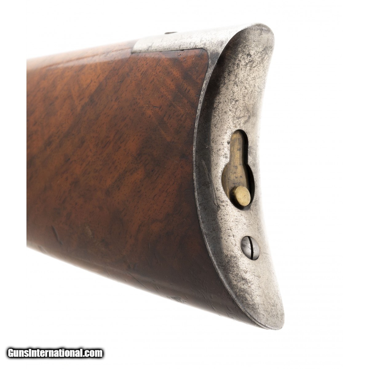 Description: "Serial number 301287. Made in 1891. 44-40 caliber with a 24" barrel. Beautiful gun in excellent condition! Barrel has 95% of the original blue. Frame has bright case colors. Wood is excellent. This gun also has a half magazine. The tang and globe sight are additions. This gun comes with a factory letter confirming all features. Beautiful deluxe Winchester 1873 Deluxe Rifle! SOLD |