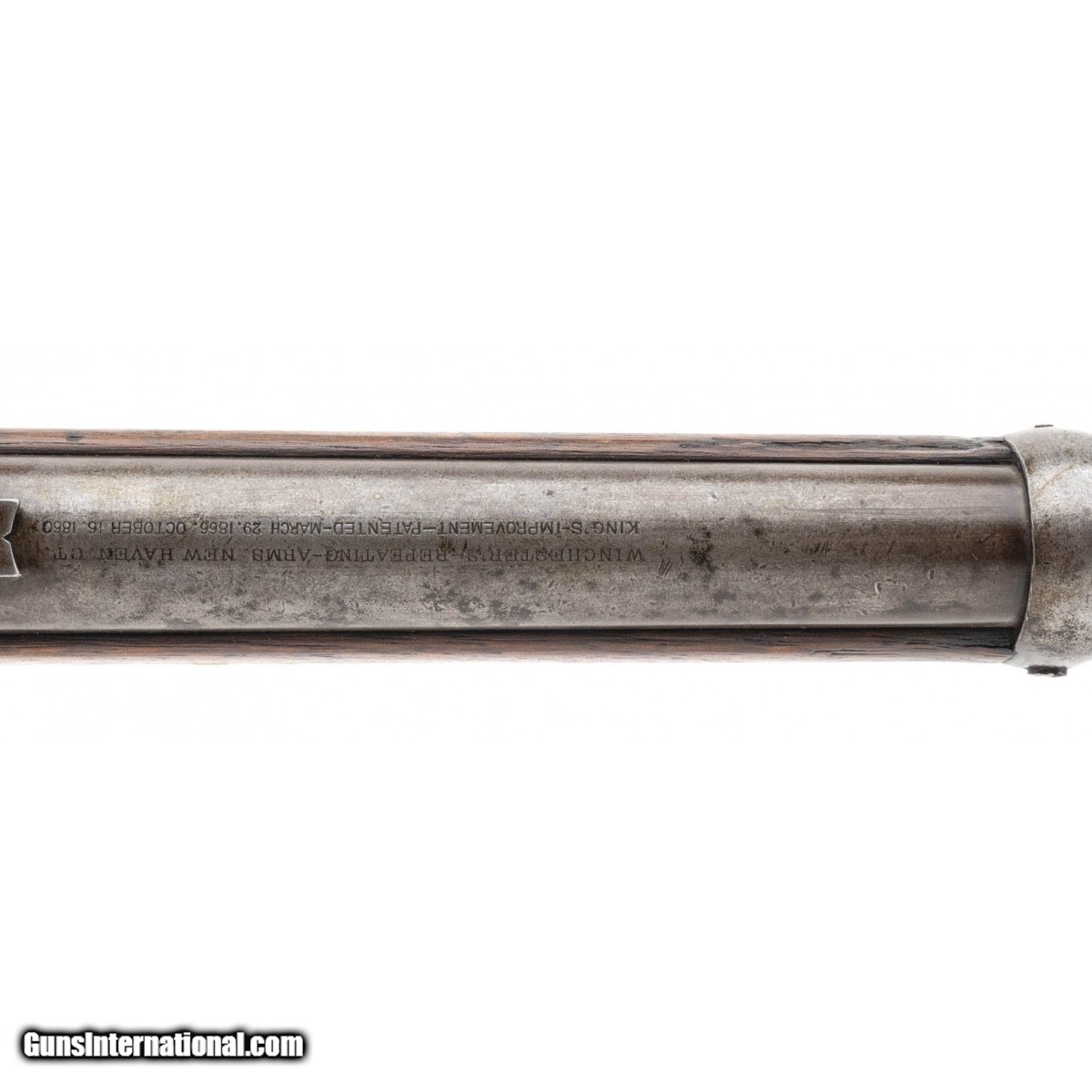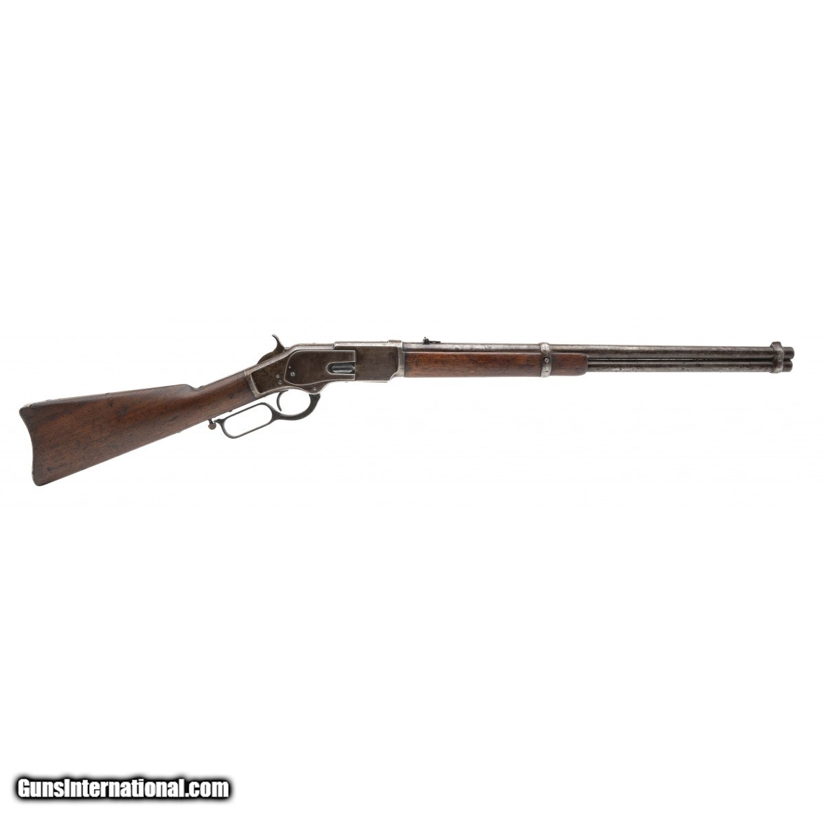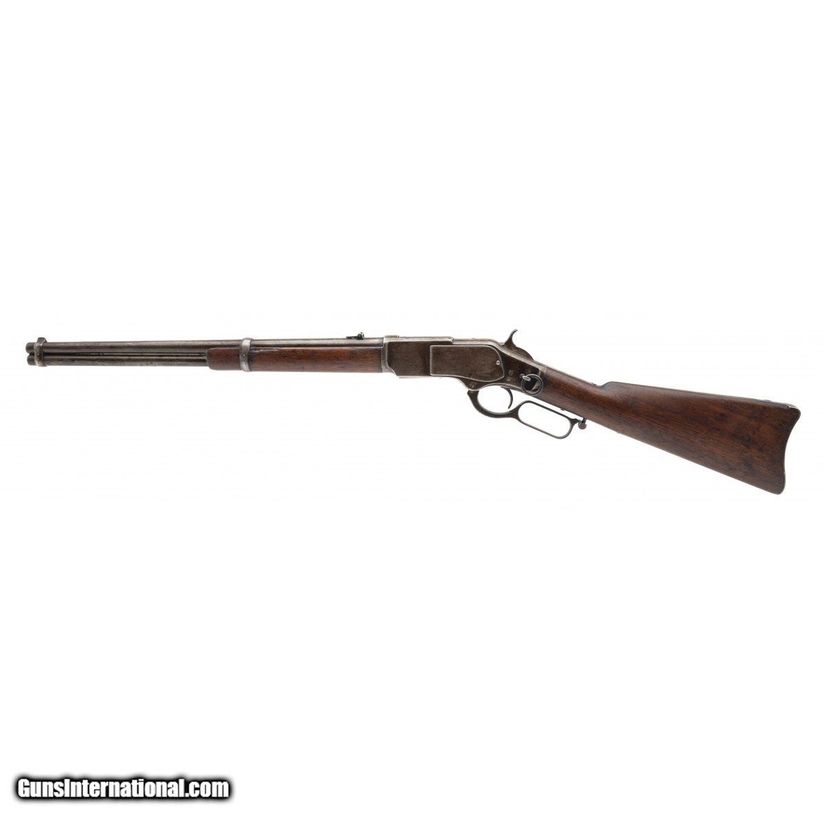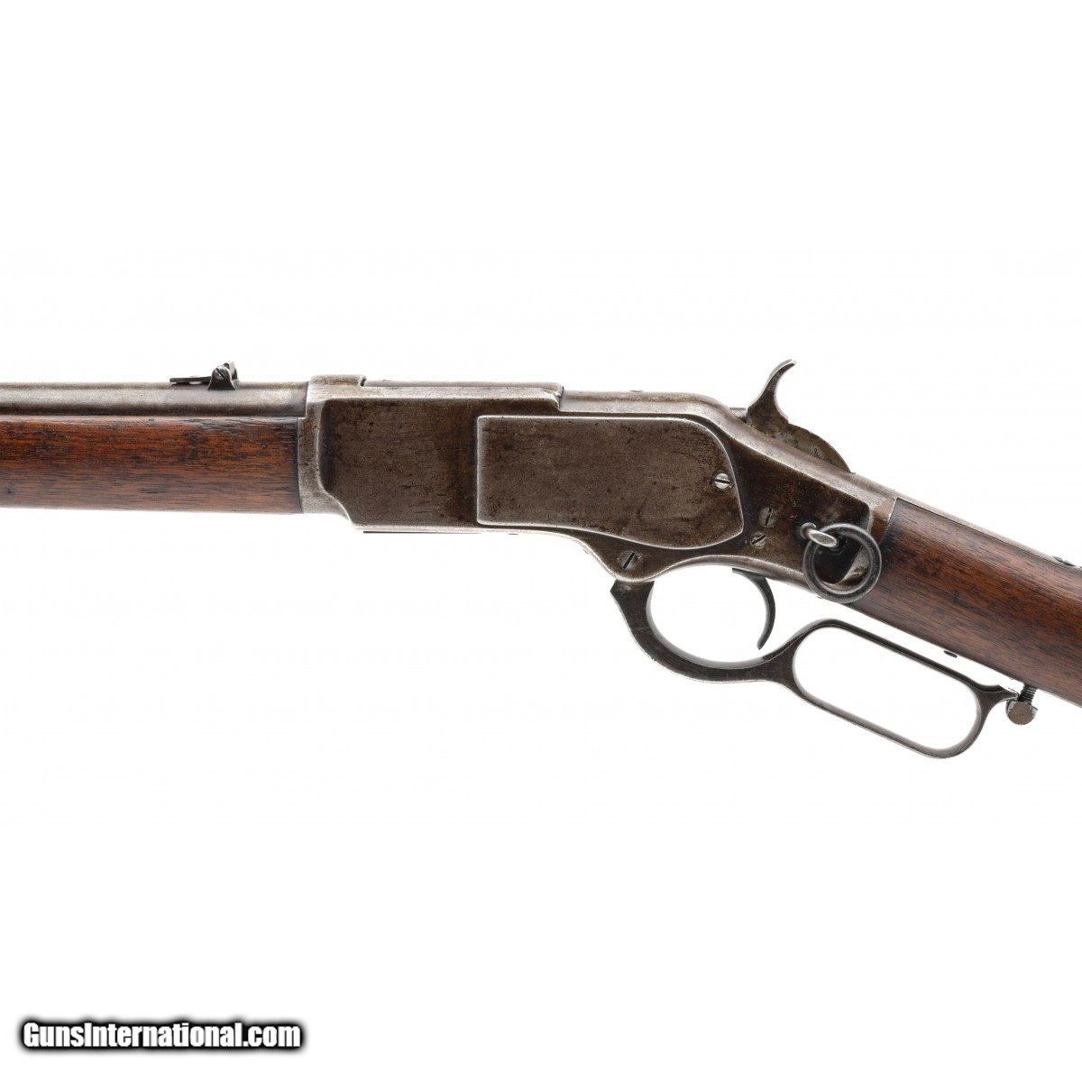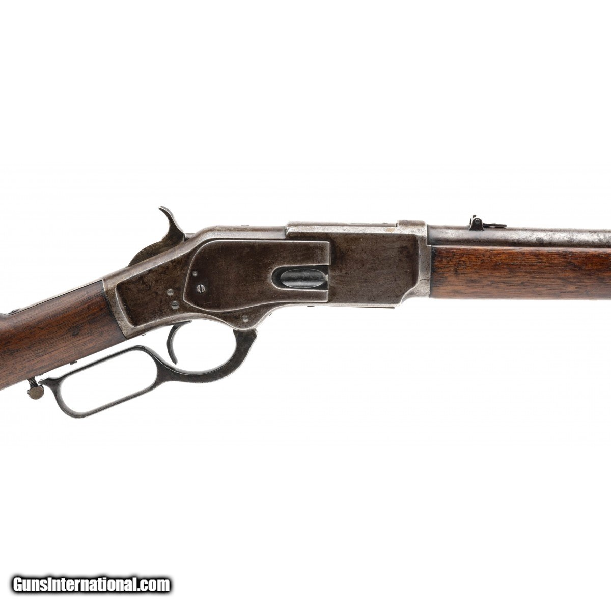Description: "Serial number 15846. Made in 1876. 44-40 caliber with a 20" barrel. This is actually a really nice example of a 1st Model carbine. Barrel has a light gray to brown patina. All markings are nice and sharp. The brown also has a brown to gray patina ith some traces of blue in protected areas. Wood is very good as being lightly cleaned. Action works perfectly and gun is all original! SOLD Antique: Yes |
