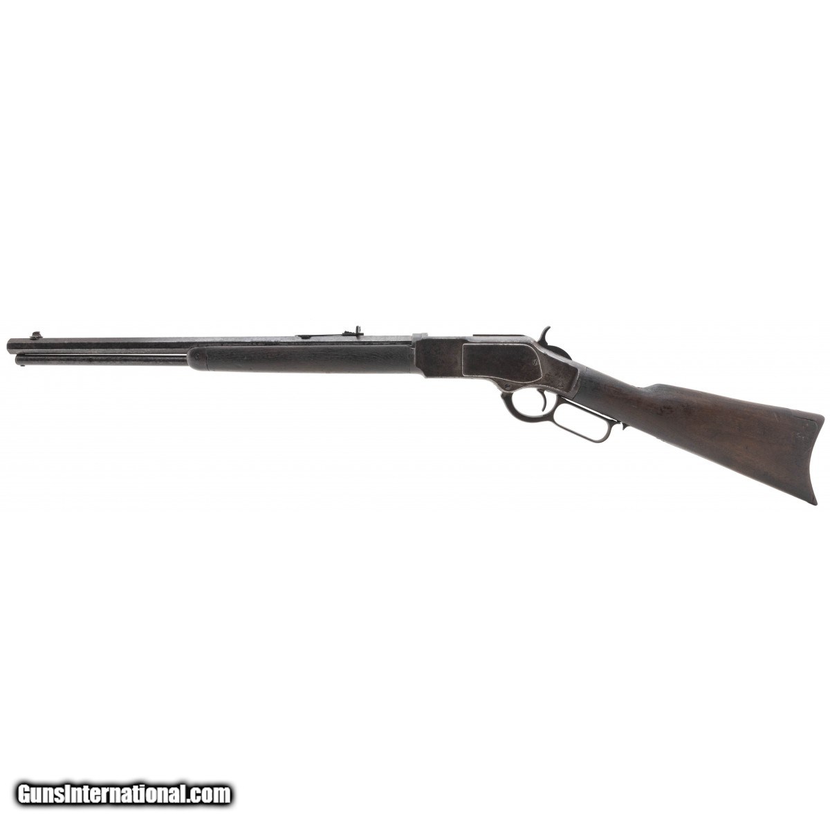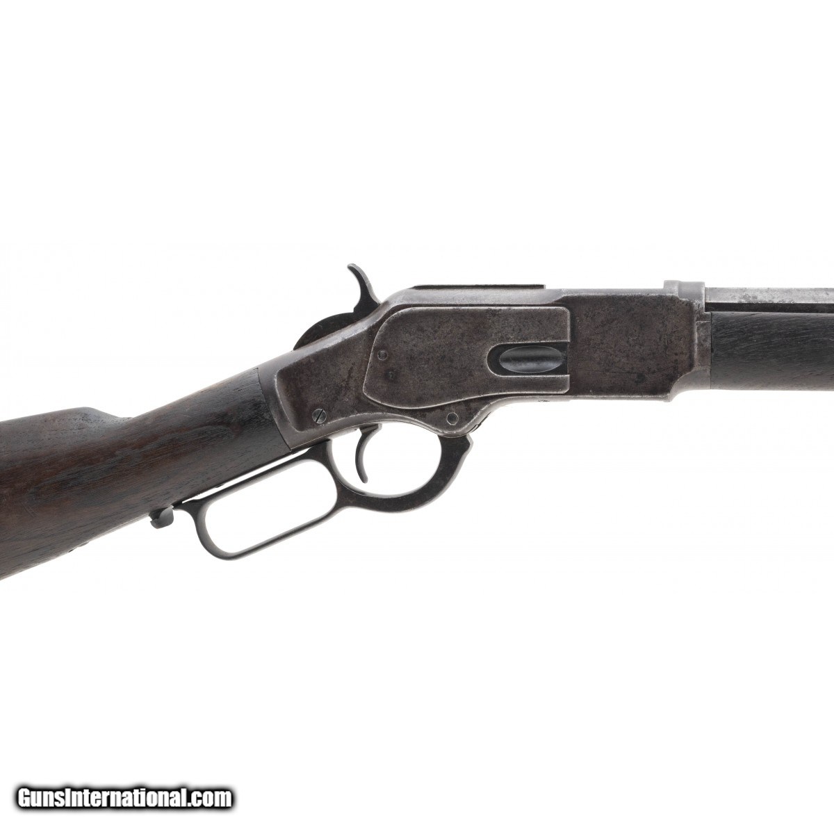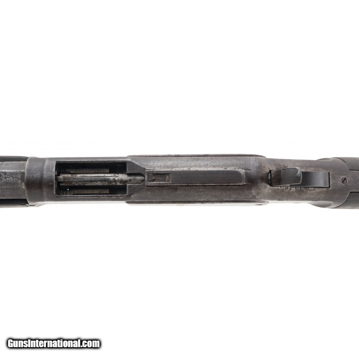 Description: " SN:496834. Manufactured in 1896. Barrel and tube have been reduced to approximately 20"". Bore is good with strong rifling and some very minor pitting. Metal has a grey and brown patina. Action works properly. Fair overall condition. An affordable 1873. SOLD Antique: Yes |