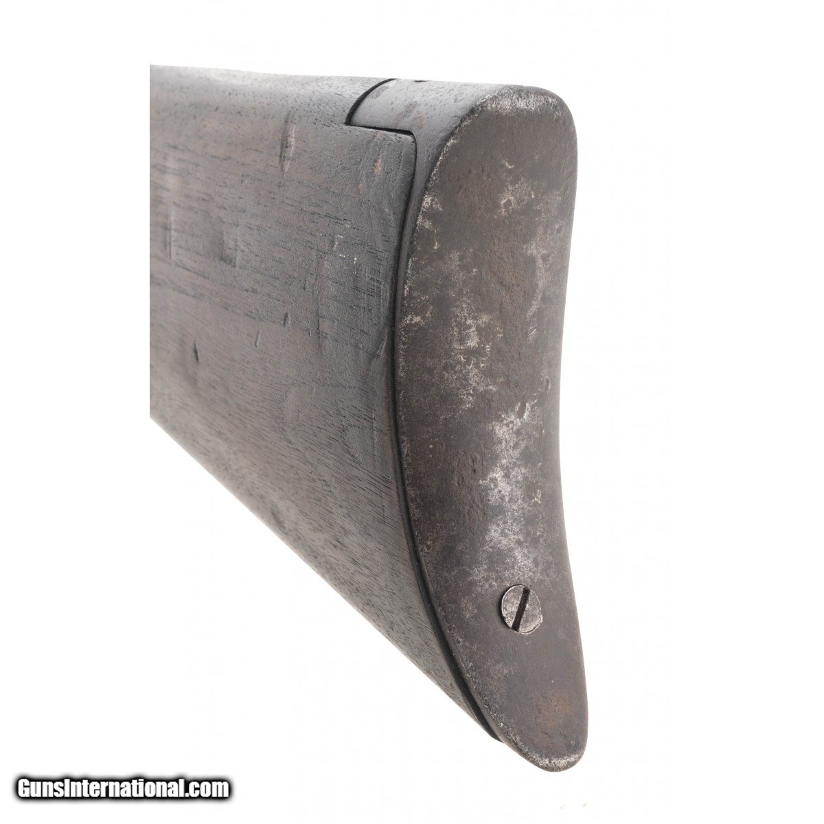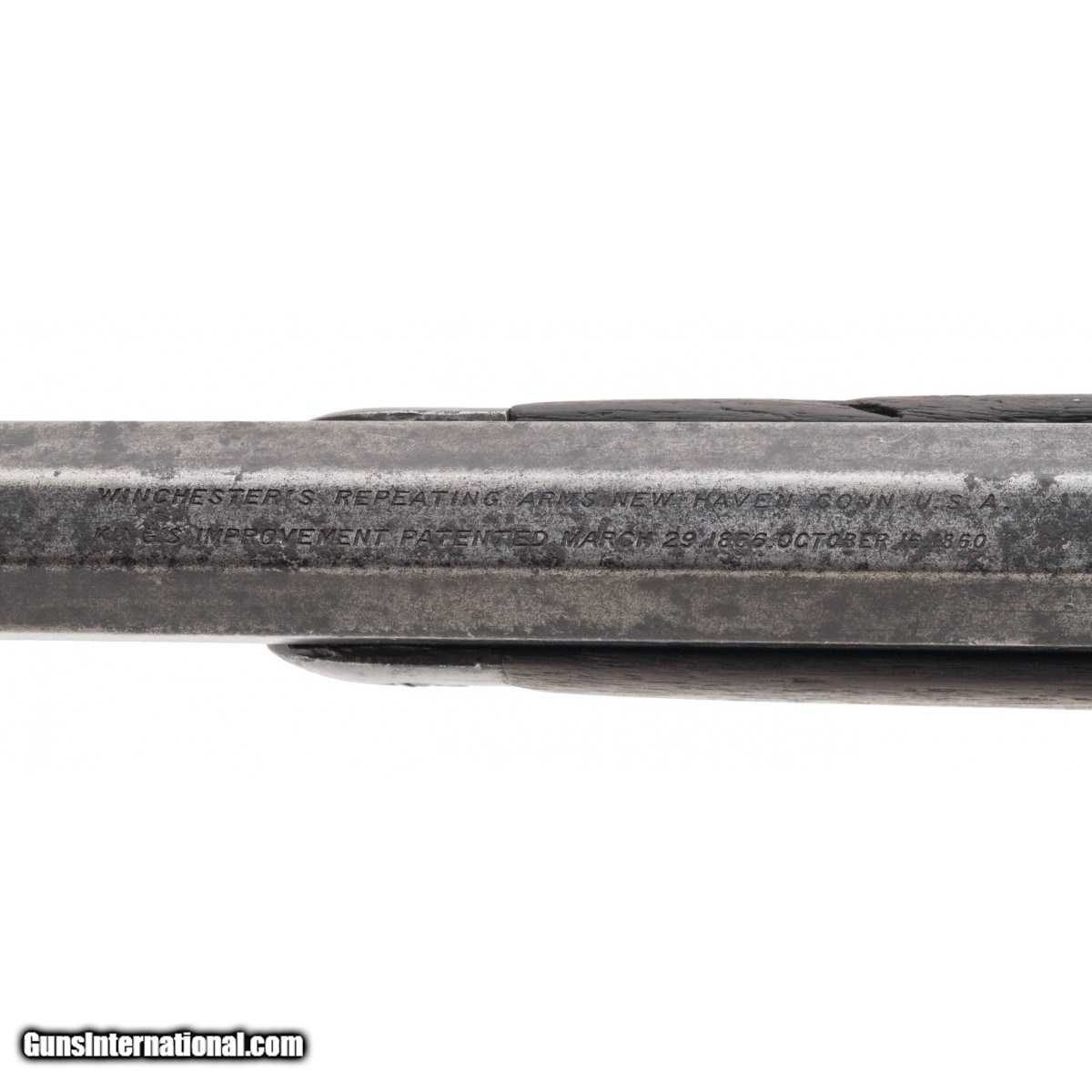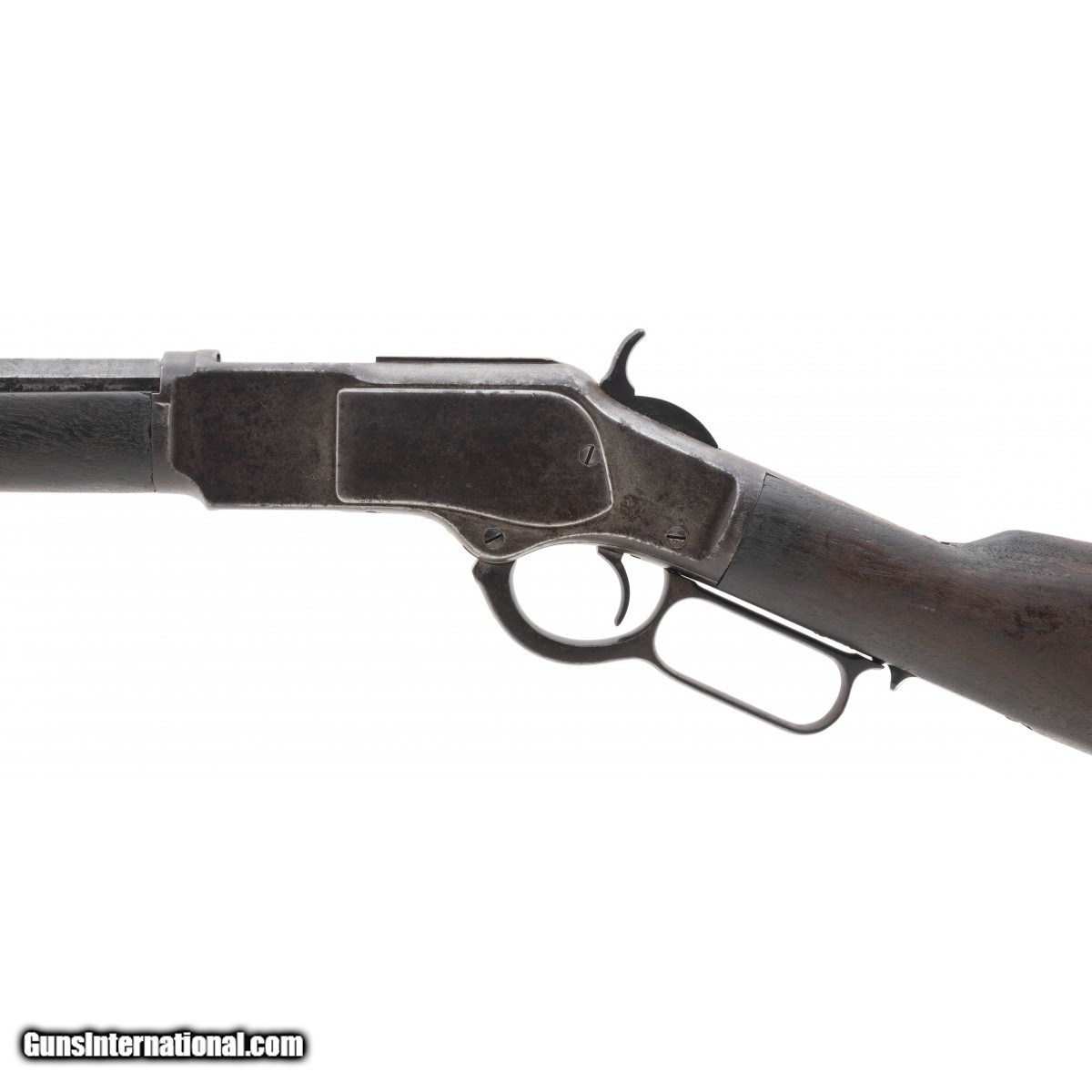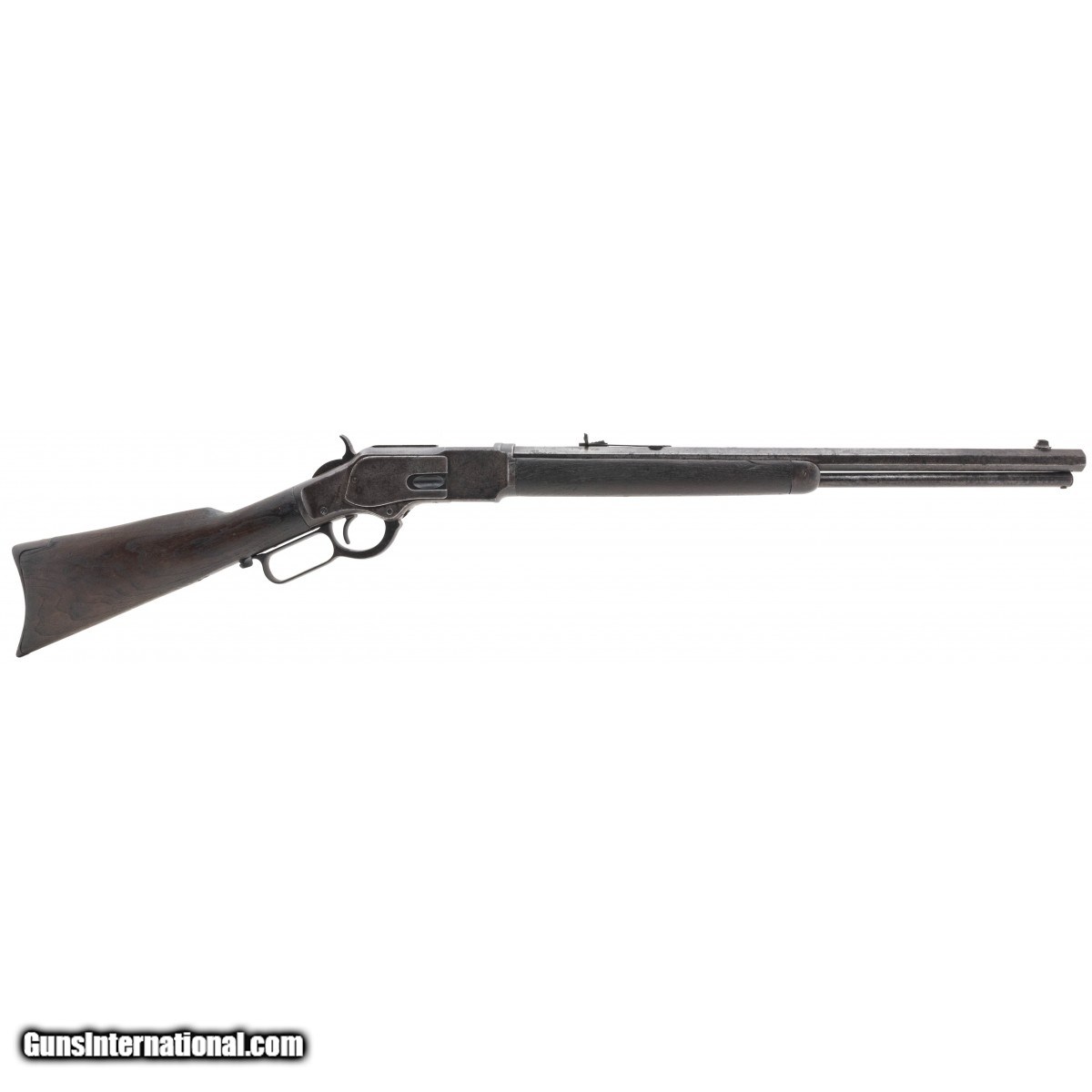 Description: " SN:496834. Manufactured in 1896. Barrel and tube have been reduced to approximately 20"". Bore is good with strong rifling and some very minor pitting. Metal has a grey and brown patina. Action works properly. Fair overall condition. An affordable 1873. SOLD Antique: Yes |