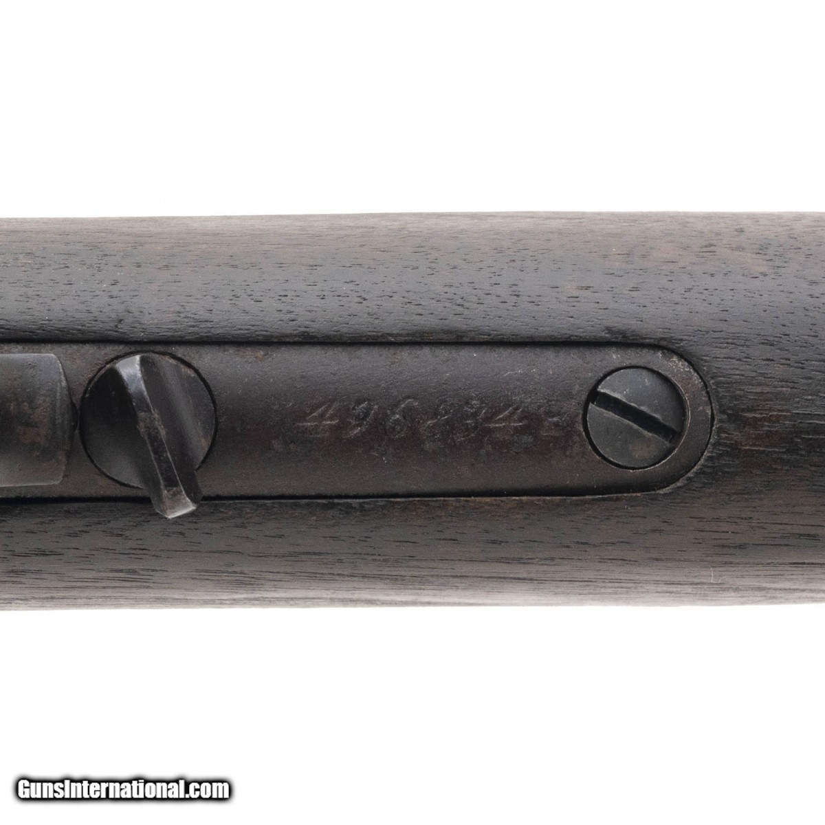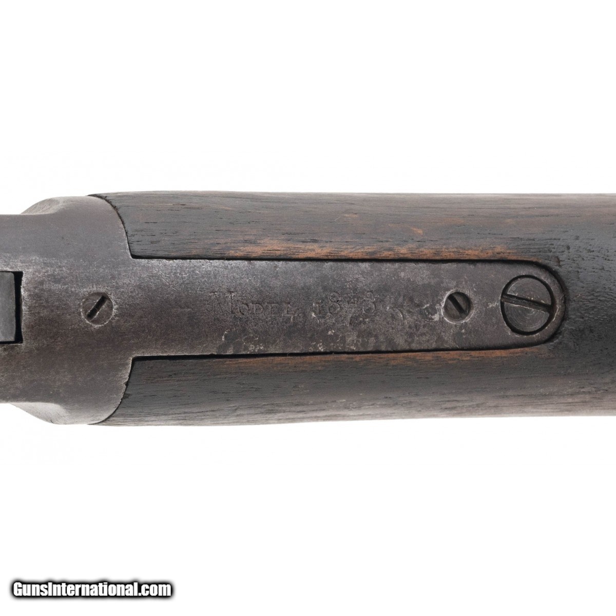 SN:496834. Manufactured in 1896. Barrel and tube have been reduced to approximately 20"". Bore is good with strong rifling and some very minor pitting. Metal has a grey and brown patina. Action works properly. Fair overall condition. An affordable 1873.