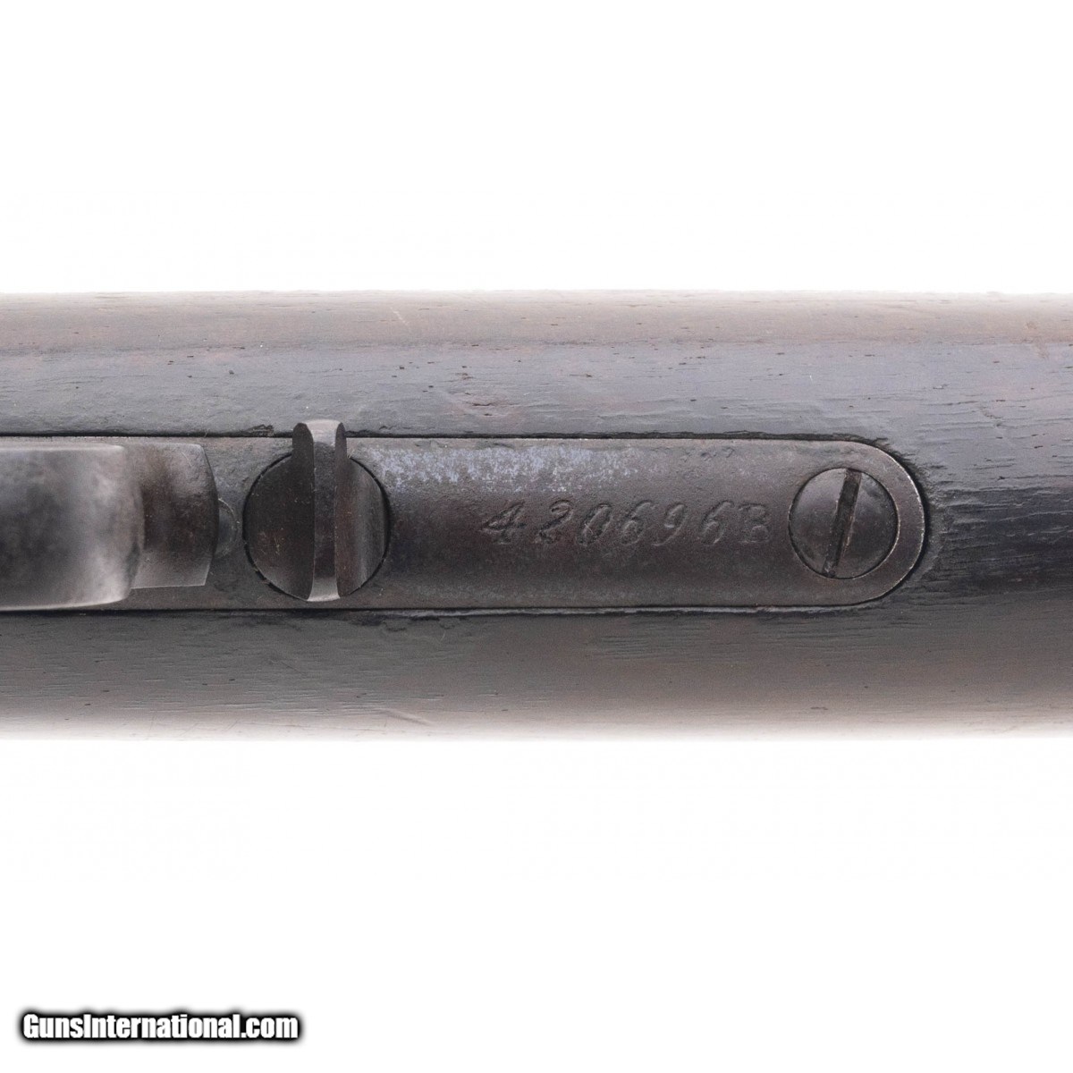 Description: " SN:420696. Manufactured in 1892. Popular 44-40 caliber. Barrel is 24"". Action works properly. Metal has an even brown patina. Bore has strong rifling with some pitting. Tube has a minor dent by muzzle. Very good overall condition. SOLD Antique: Yes |