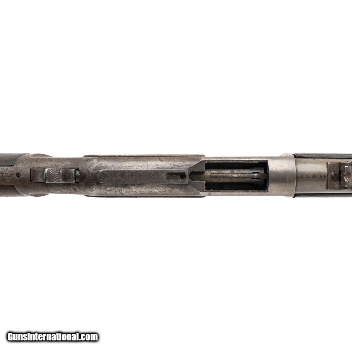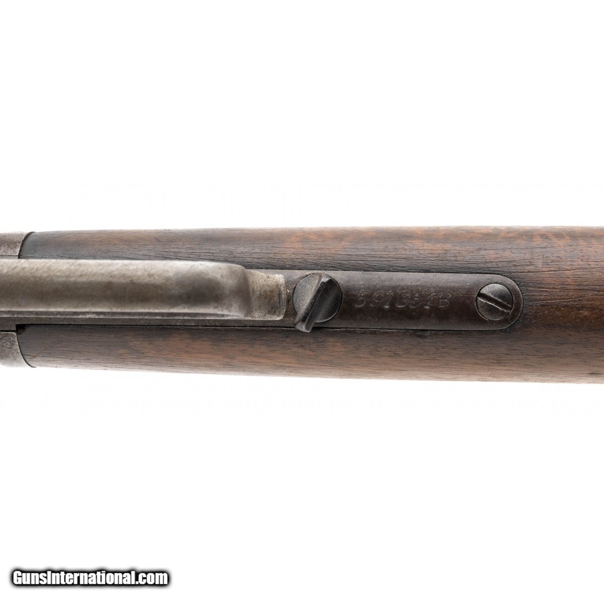 Description: " Serial number 591351B. Made 1905. 44-40 caliber with a 30" barrel. Metal has been cleaned and has a light gray patina. Wood id very good as refinished/ The dust cover is missing. SOLD |