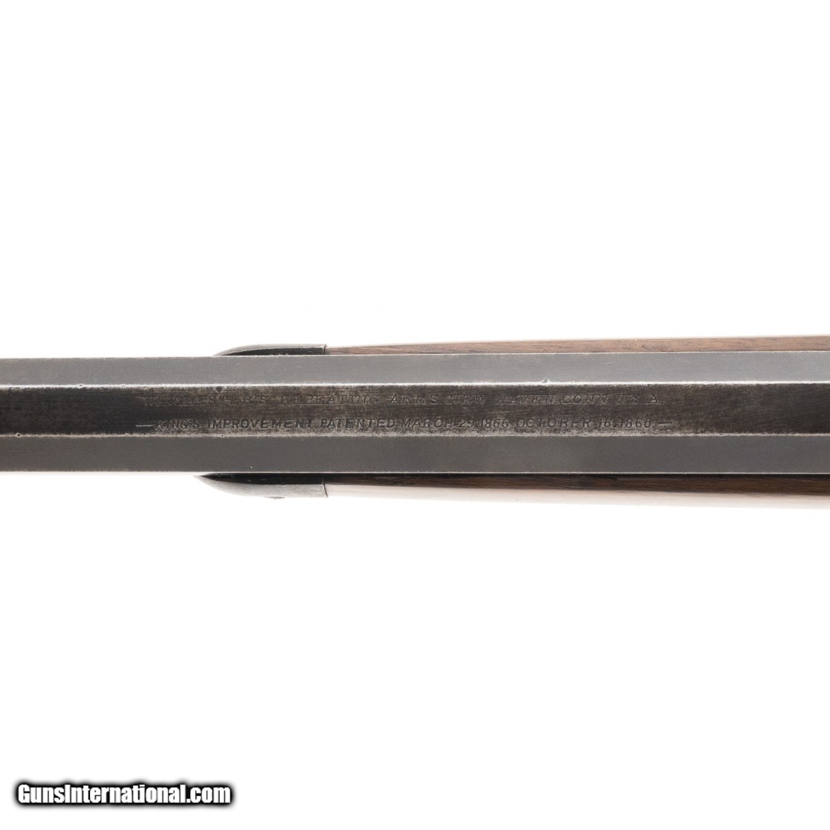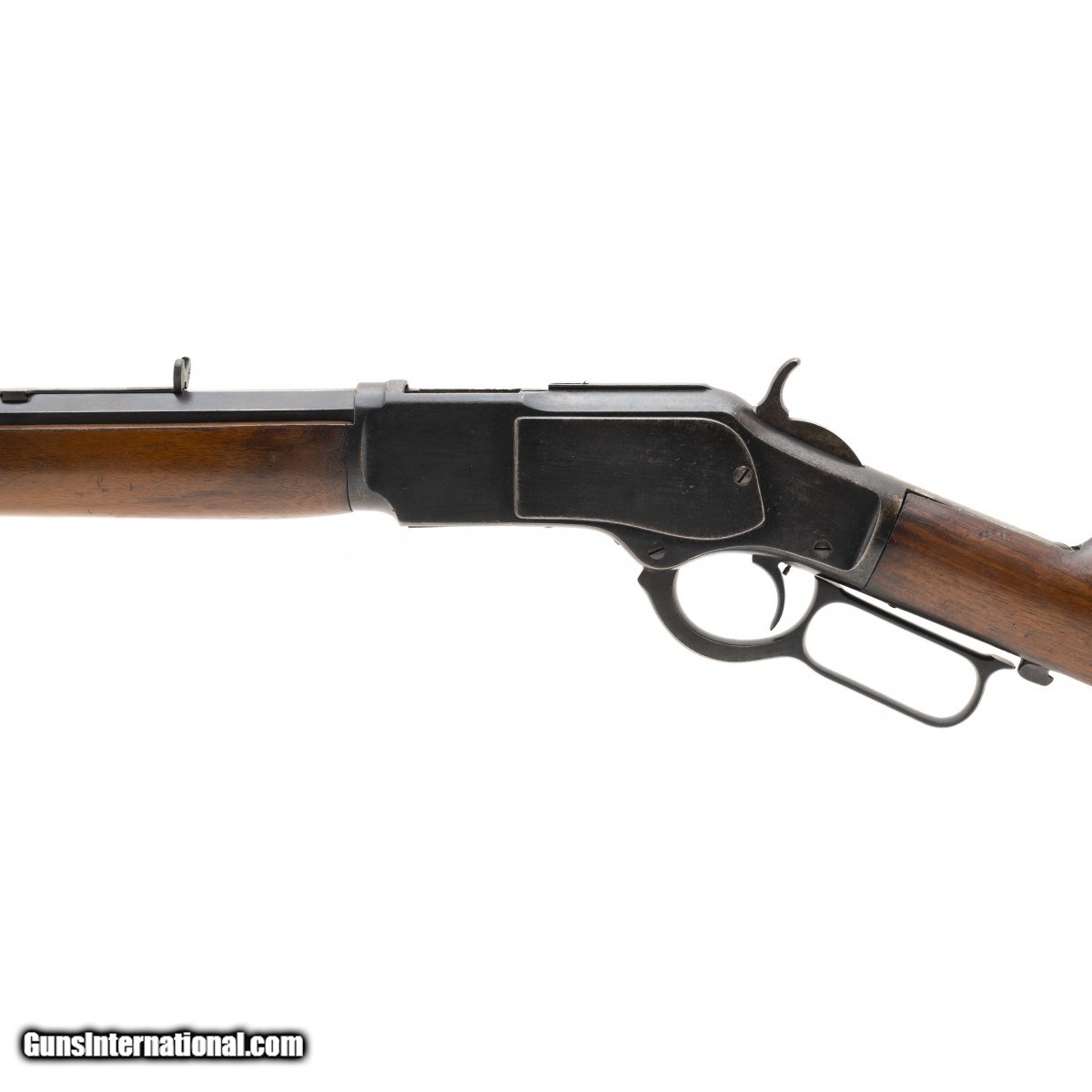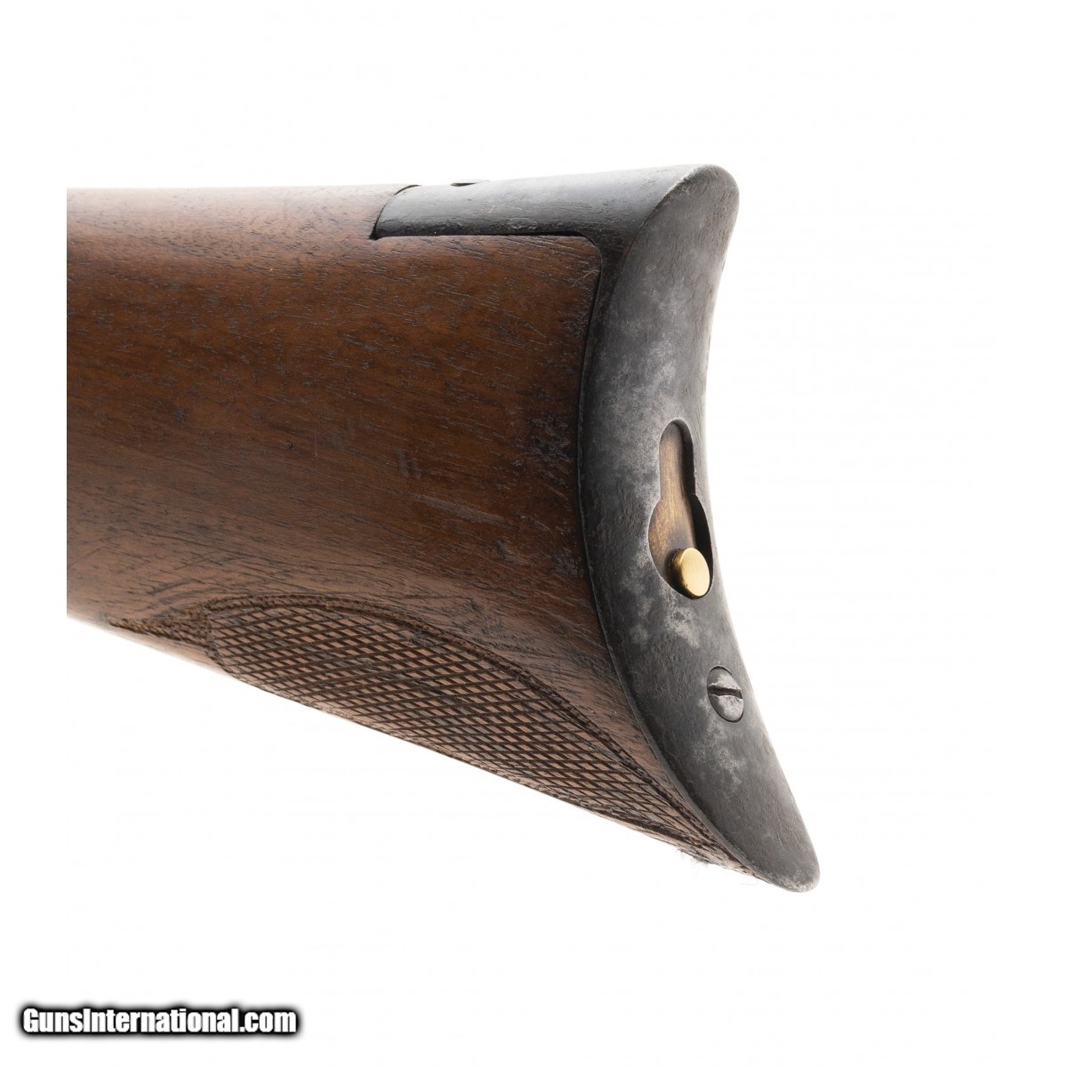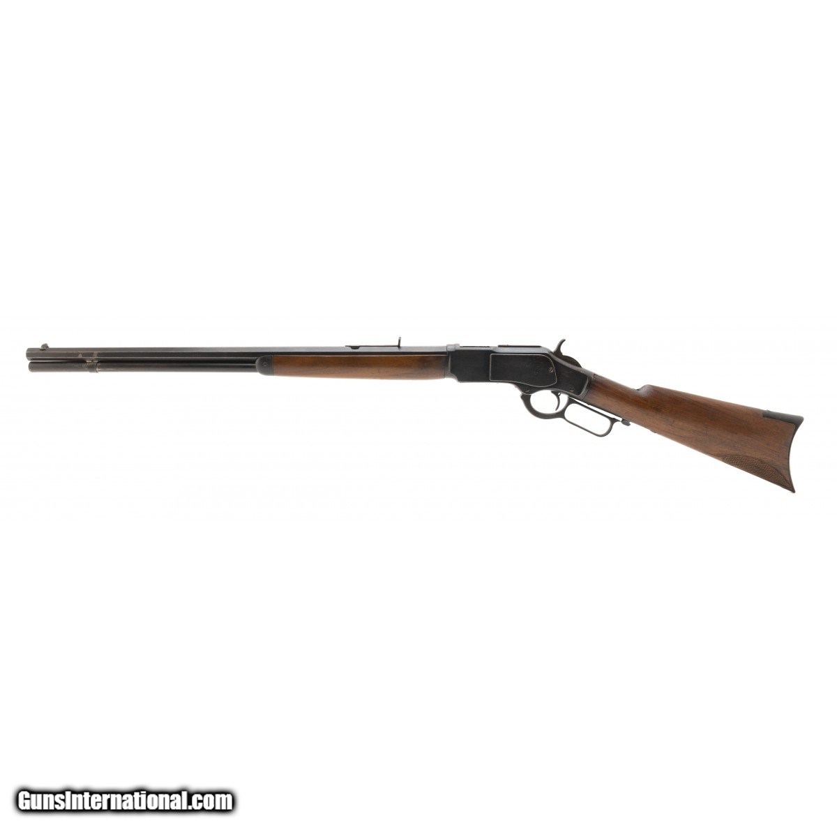 Description: "Serial Number 332800. 38-30 caliber with a 24" barrel. Metal still has a lot of the original blue. Forearm is a well made replacement. Buttstock has been shortened and the left hand side has been checkered. Dust cover is missing. Very attractive Winchester 1873 Rifle! SOLD Antique: Yes |