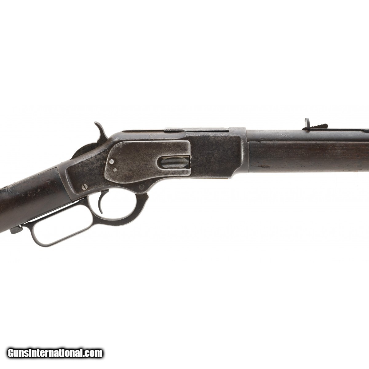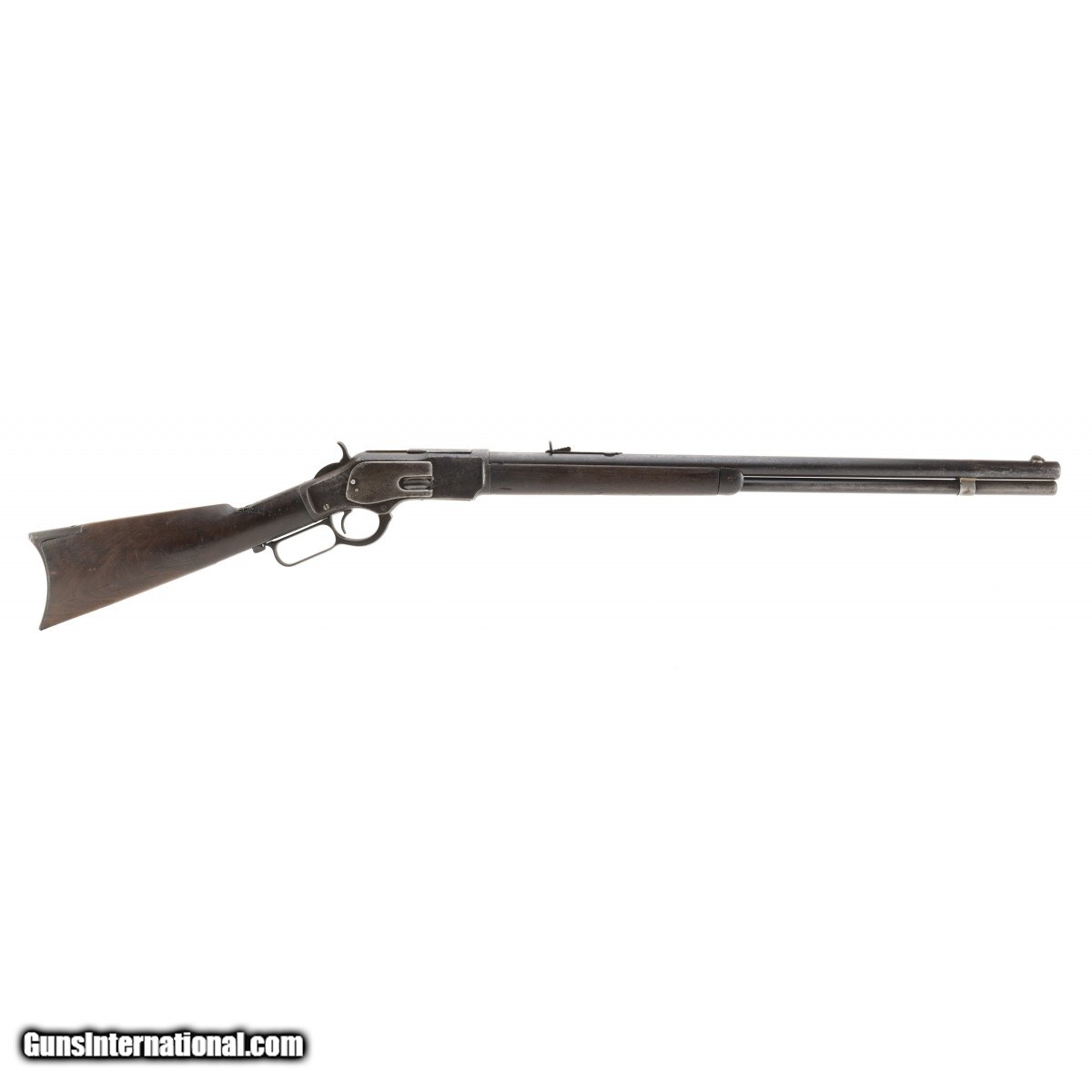 Description: "Made in 1887. 44-40 with a 24" barrel. Metal has a gray patina throughout with some pitting on the metal. Wood is very good. Action works well. Bore has good rifling with pitting. There is a ring in the bore approximately 5" from the muzzle. SOLD Antique: Yes |