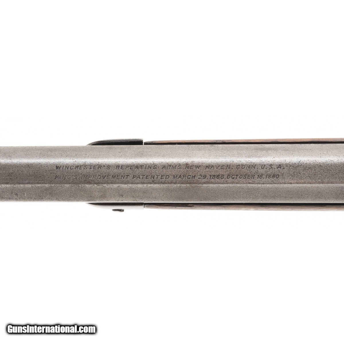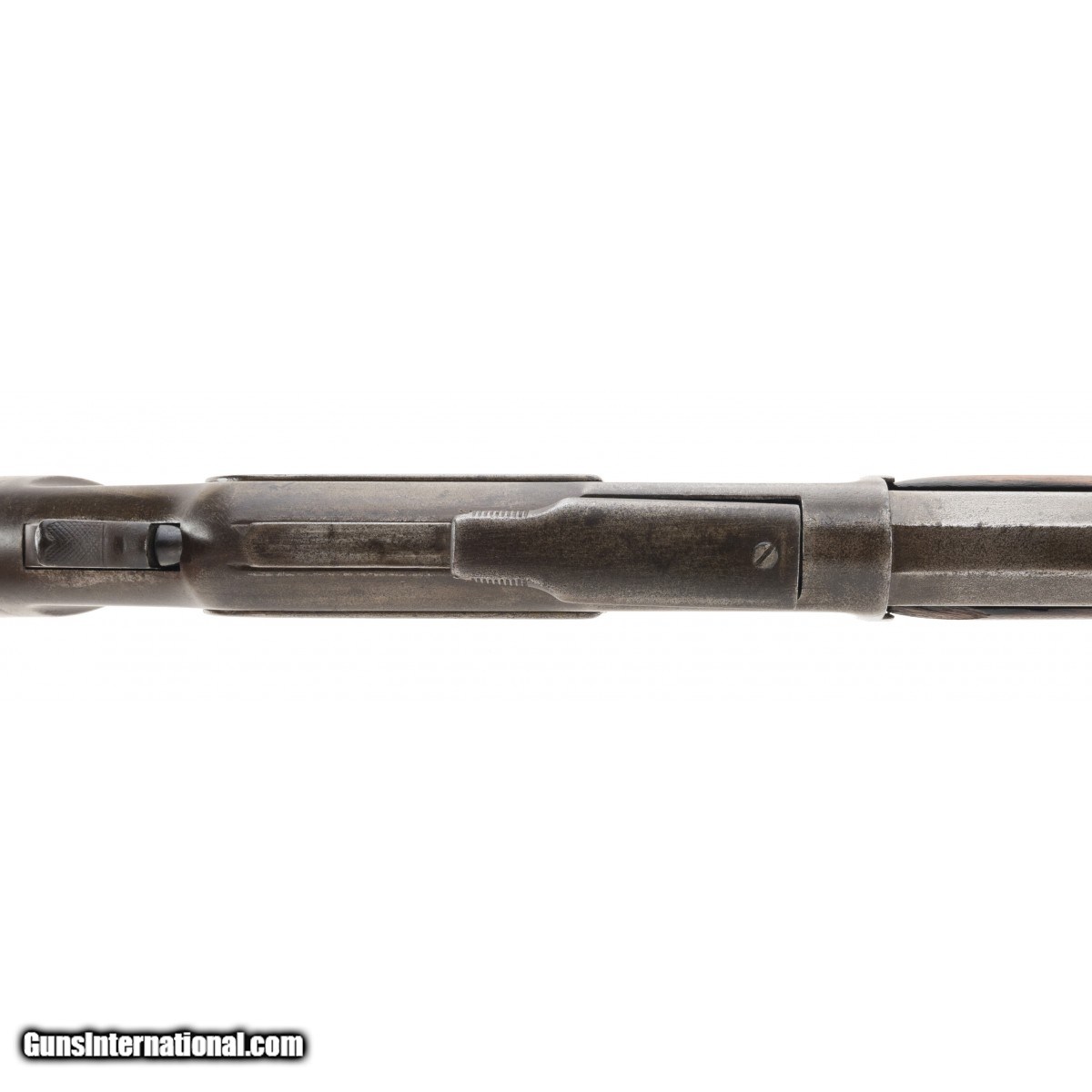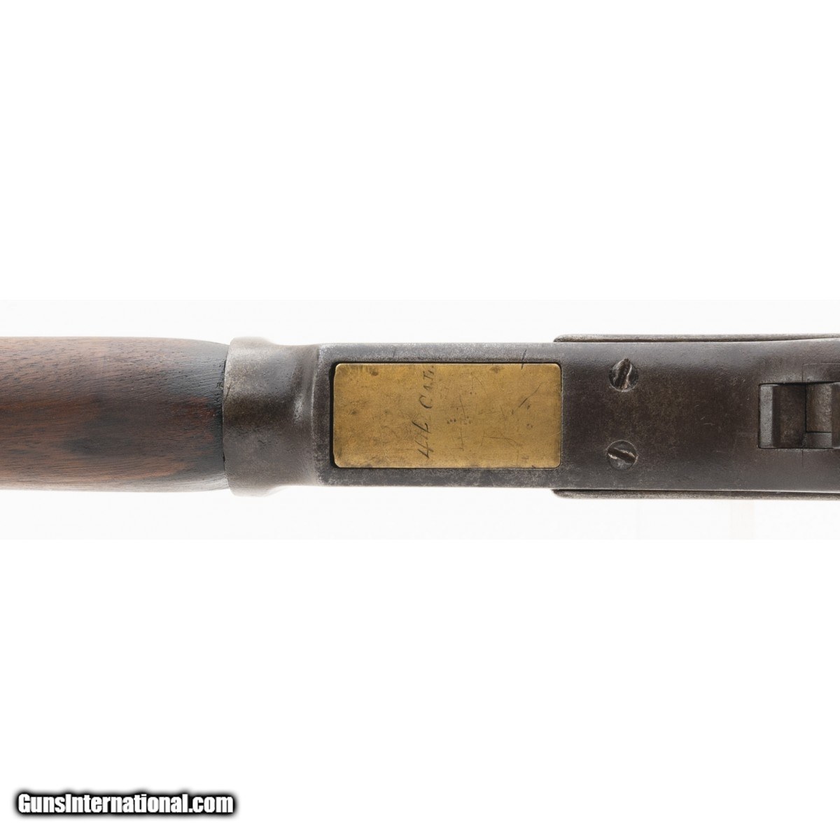 Description: "Made in 1900. 44-40 made in 24" Metal has an even gray patina with scattered pitting. Wood as good as refinished. Action works well. Bore is bright and shiny with some pitting. The last half inch from the muzzle has been bored out. Very good overall. SOLD Curio/Relic: Yes |