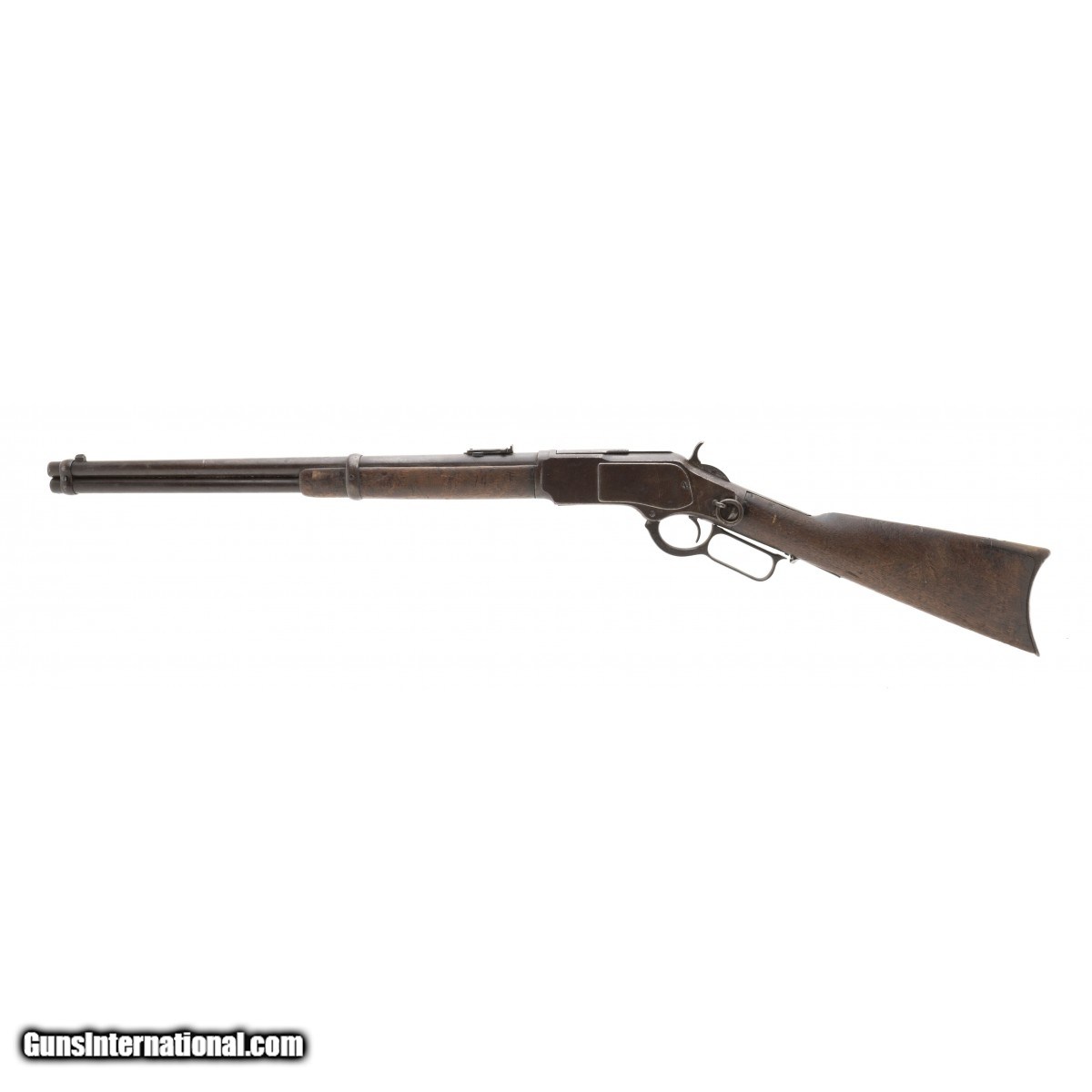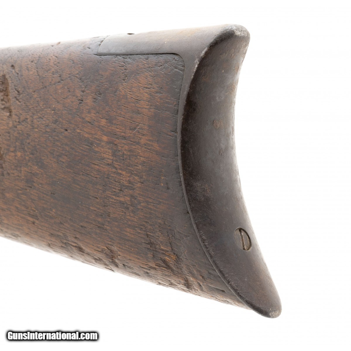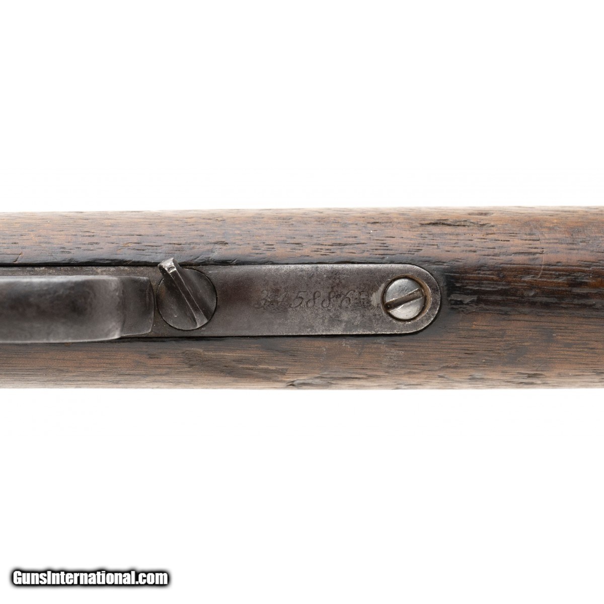 Description: "Serial number 345886B.Made in 1890. 38-40 caliber with a 20" barrel. Dark brown patina on metal. Wood shows heavy wear and has been refinished. This gun comes with a factory letter that confirms all features. Action works well. Bore is dark with visible rifling. SOLD Antique: Yes |