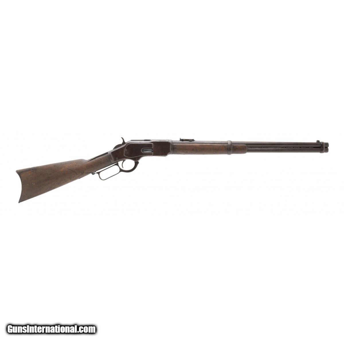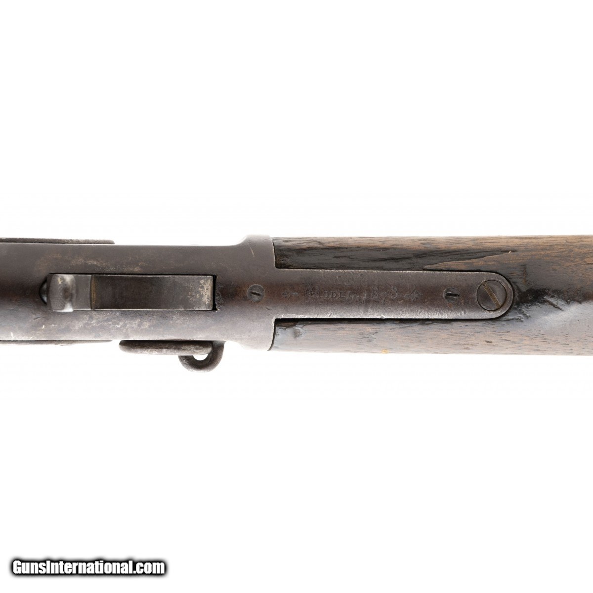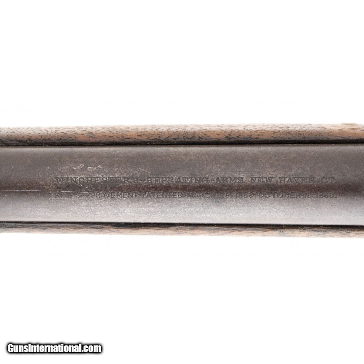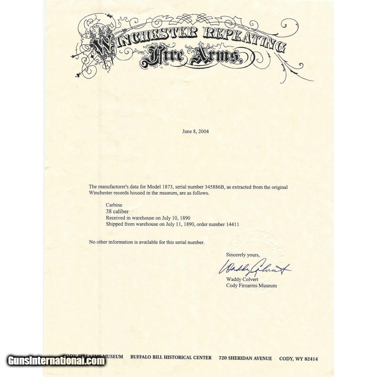 Description: "Serial number 345886B.Made in 1890. 38-40 caliber with a 20" barrel. Dark brown patina on metal. Wood shows heavy wear and has been refinished. This gun comes with a factory letter that confirms all features. Action works well. Bore is dark with visible rifling. SOLD Antique: Yes |