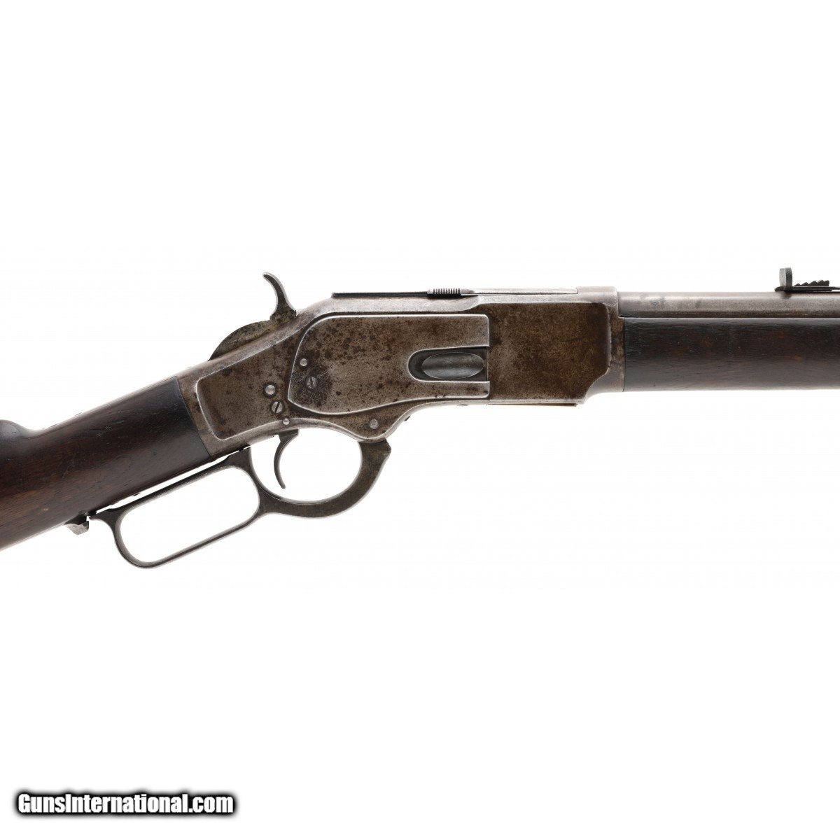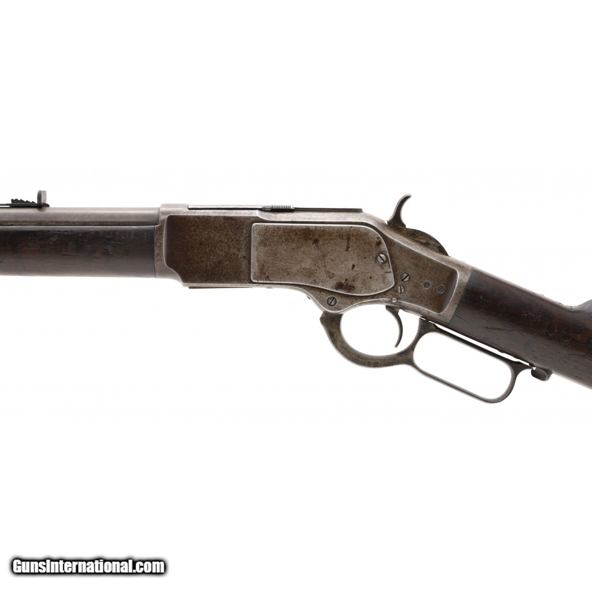 Serial No. 76363 .44-40 24""round barrel Winchester Model 1873 rifle manufactured in 1881 in overall good condition. Metal is grey/brown patina with surface oxidation noted. Bore is fair with pitting noted in the grooves, rifling is still present. Wood shows dings, scratches and mars. Butt-plate shows pitting, action functions correctly.