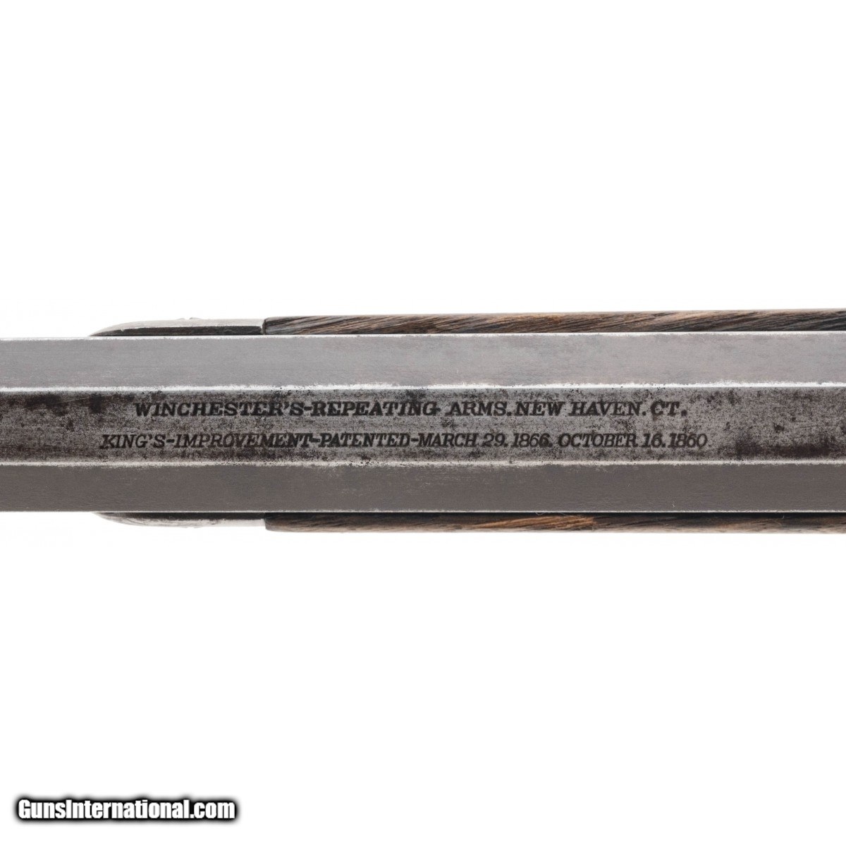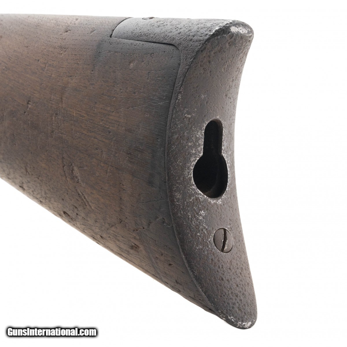 Description: " SN:74437. Special order 1873 with extra long barrel (30""). Manufactured in 1878. Metal has a brown and grey patina. Action works properly. Bore has strong rifling with pitting. Forearm has a chip and a crack that will need repair. Butt stock has a chip by tang. Butt plate is missing the cleaning rod door. Fair overall condition. An honest 1873 special order extra long rifle. SOLD Antique: Yes |