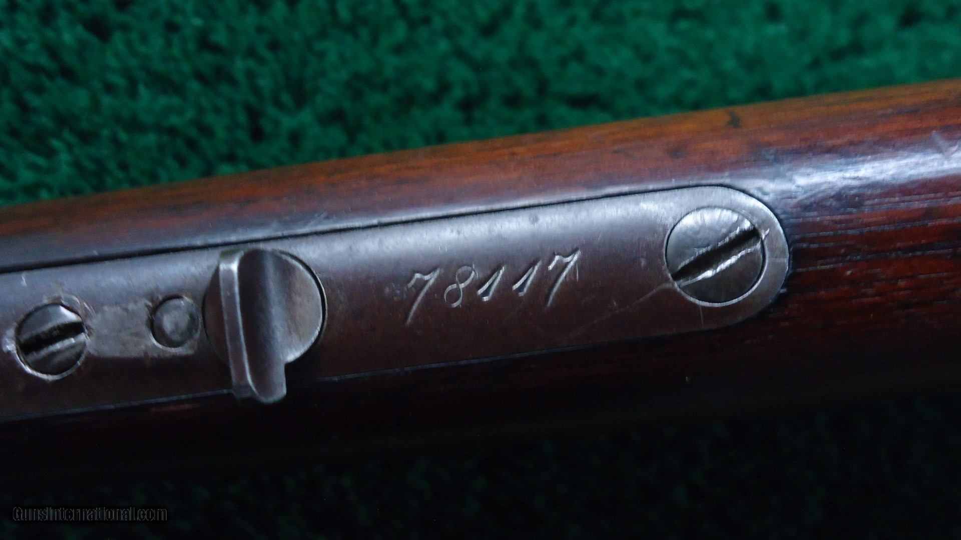 Description: 70K serial range. It has the extra 2 screw holes in the side that have been plugged. There is quite a number of guns found in this serial range with 2 plugged holes. It is said that these were intended to be made into carbines. That is where the saddle ring would have been. There were made into rifles instead. 24 inch full octagon barrel and full length mag tube. Original sights. Wood is in very good condition. Original shotgun style buttplate. This was correct on the early 38-40 cartridge Model 1873's. All metal surfaces brown patina with traces of original blue showing through in protected areas. Leroy Merz Antique Firearms specializes in antique and vintage Winchesters and other fine American firearms. Since 1965 Mr. Merz has taken part in the world of firearms and has been a contributor to many well known reference books. We have hundreds of additional guns in every price range at our home online. Search for Merz Antiques in google. SOLD Antique: Yes Rifle Caliber: .38-40 Winchester |