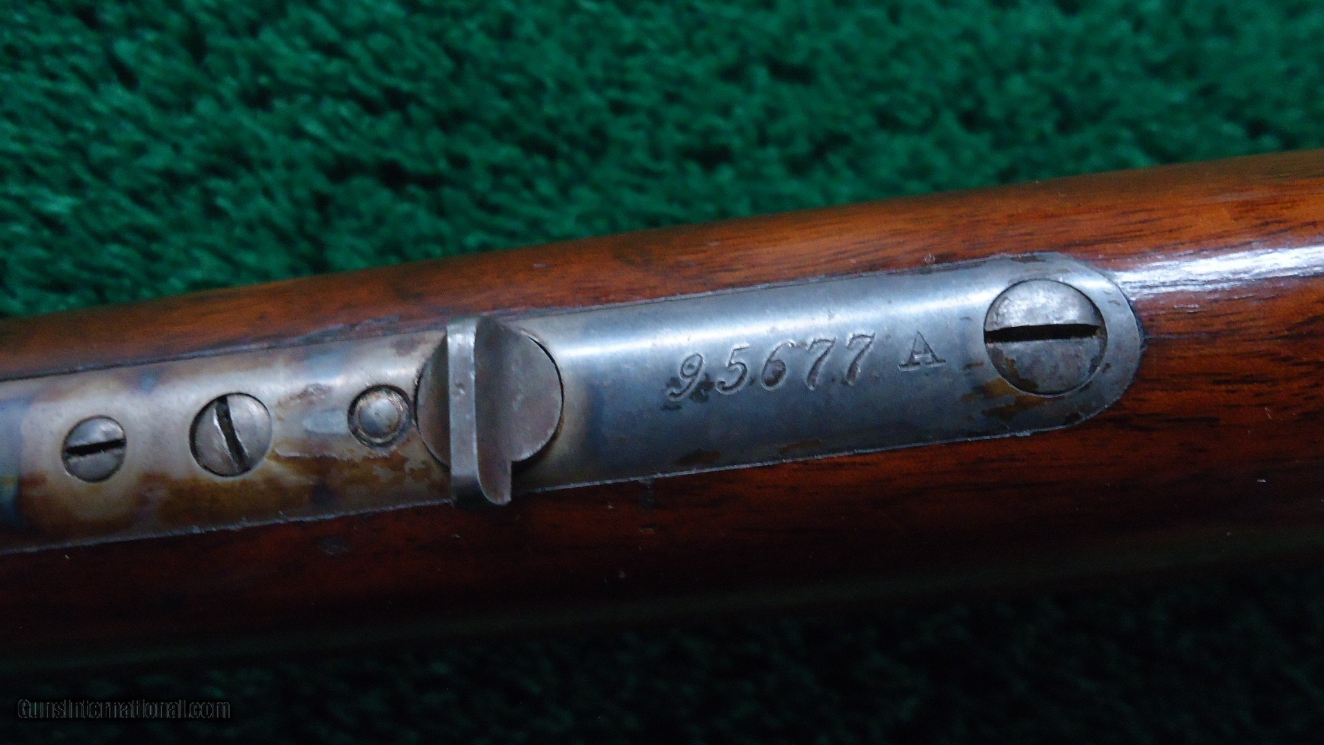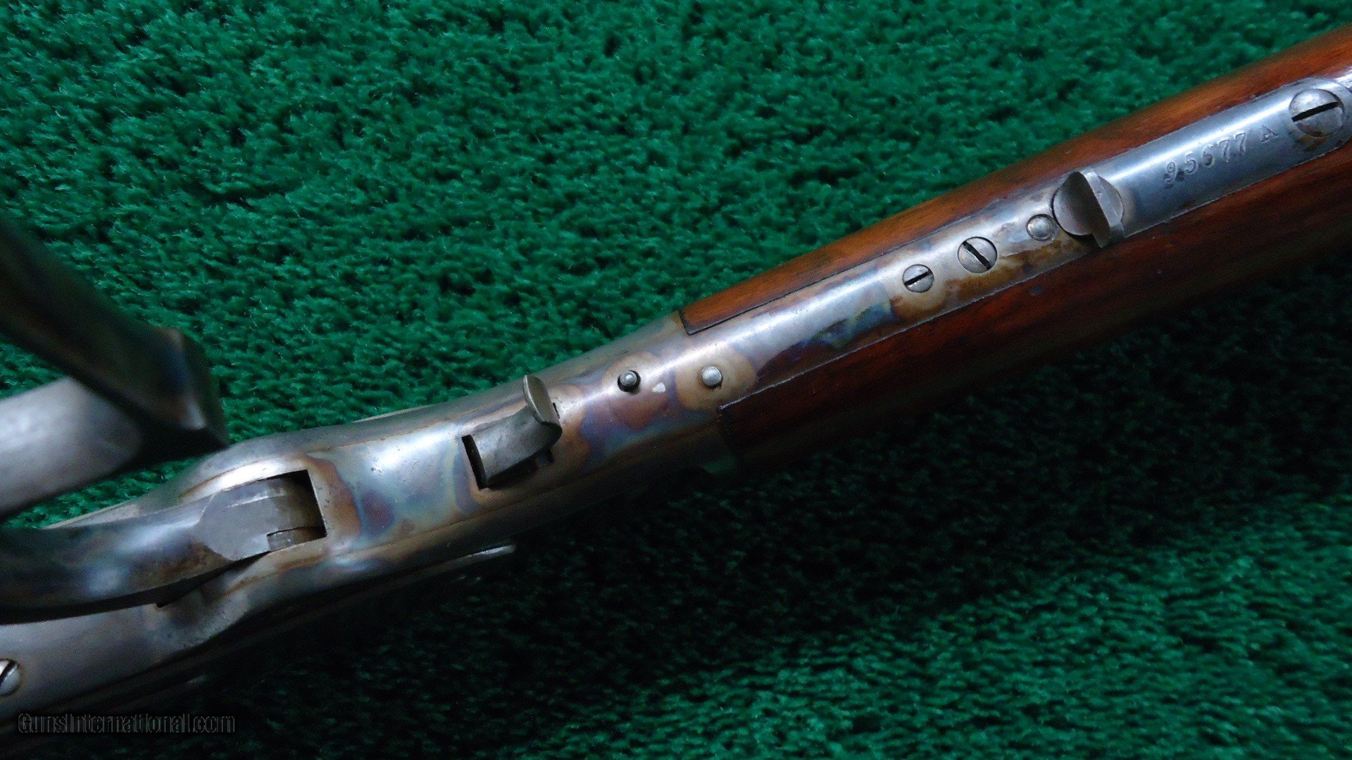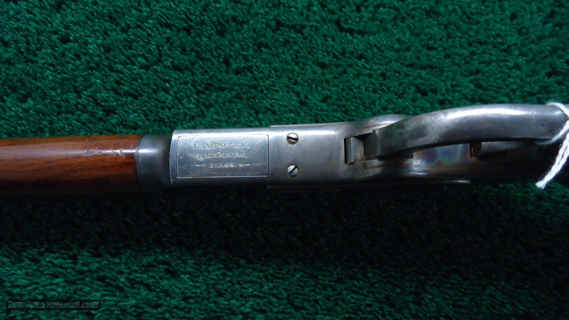 Description: 24 inch octagon barrel with a bright excellent bore with very good rifling. Full length magazine. The barrel and magazine tube retain about 90% original blue with slight toning to plum and thinning on the edges and contact points. Sights are standard sporting front and rear. Color case hardened foren cap, lever, hammer, receiver retain some vivid colors and patterns with the buttplate showing more of a mottled silver gray. The carrier block is nickel plated and inscribed “E.A. POYEN / MERIMAC / ->MASS.<-“ on the bottom. Edward Austin Poyen was publisher of the Merrimac Reporter of Merrimac, Mass. as well as the Newton Recorder of Rockingham County, New Hampshire in the 1880’s. Straight grip walnut stocks show nice figure with tiger striping with near all original finish showing only light handling marks. This one came from Winchester with the sling swivels. Comes with a Factory letter dated 1968 from the Winchester Museum. Leroy Merz Antique Firearms specializes in antique and vintage Winchesters and other fine American firearms. Since 1965 Mr. Merz has taken part in the world of firearms and has been a contributor to many well known reference books. We have hundreds of additional guns in every price range at our home online. Search for Merz Antiques in google. SOLD Antique: Yes Rifle Caliber: .44-40 Winchester |