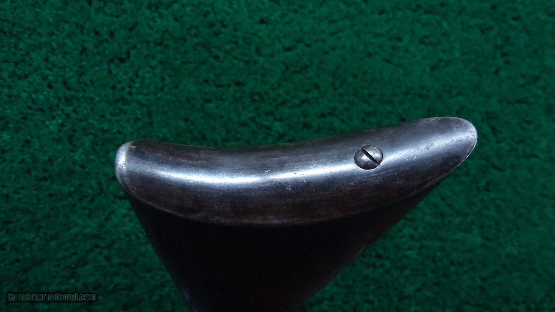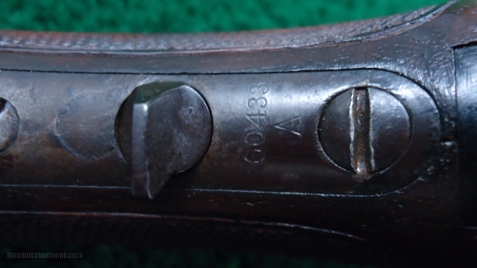 Description: Special order extra length 26 inch octagon barrel chambered in 32 WCF caliber with about a good bore that is near bright with scattered light pitting and decent rifling. Barrel finish is starting to tone to brown with areas showing light cleaning leaving it thin in places with some freckles and light pitting. Sights include a German silver blade front with a sporting rear with a Marbles tang mounted peep. Color case hardened receiver is now a mottled dark brown with smooth surfaces. Checkered deluxe “XX” walnut forearm and pistol grip stock are solid and full fitting with most original finish showing only light handling marks. A nice deluxe Winchester in a pleasant to shoot caliber. Leroy Merz Antique Firearms specializes in antique and vintage Winchesters and other fine American firearms. Since 1965 Mr. Merz has taken part in the world of firearms and has been a contributor to many well known reference books. We have hundreds of additional guns in every price range at our home online. Search for Merz Antiques in google. SOLD Antique: Yes Rifle Caliber: .32-20 Winchester |