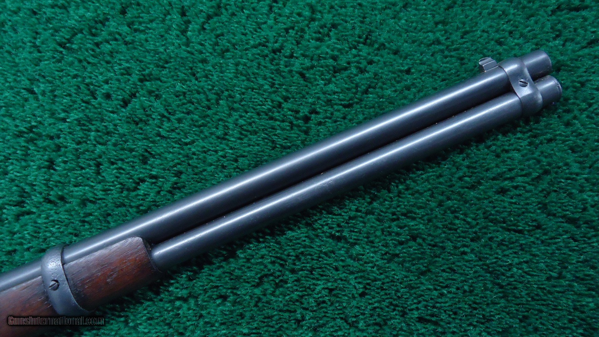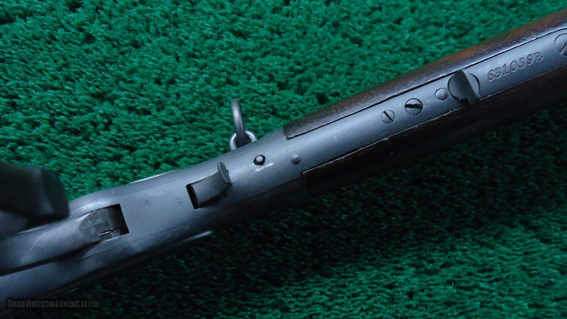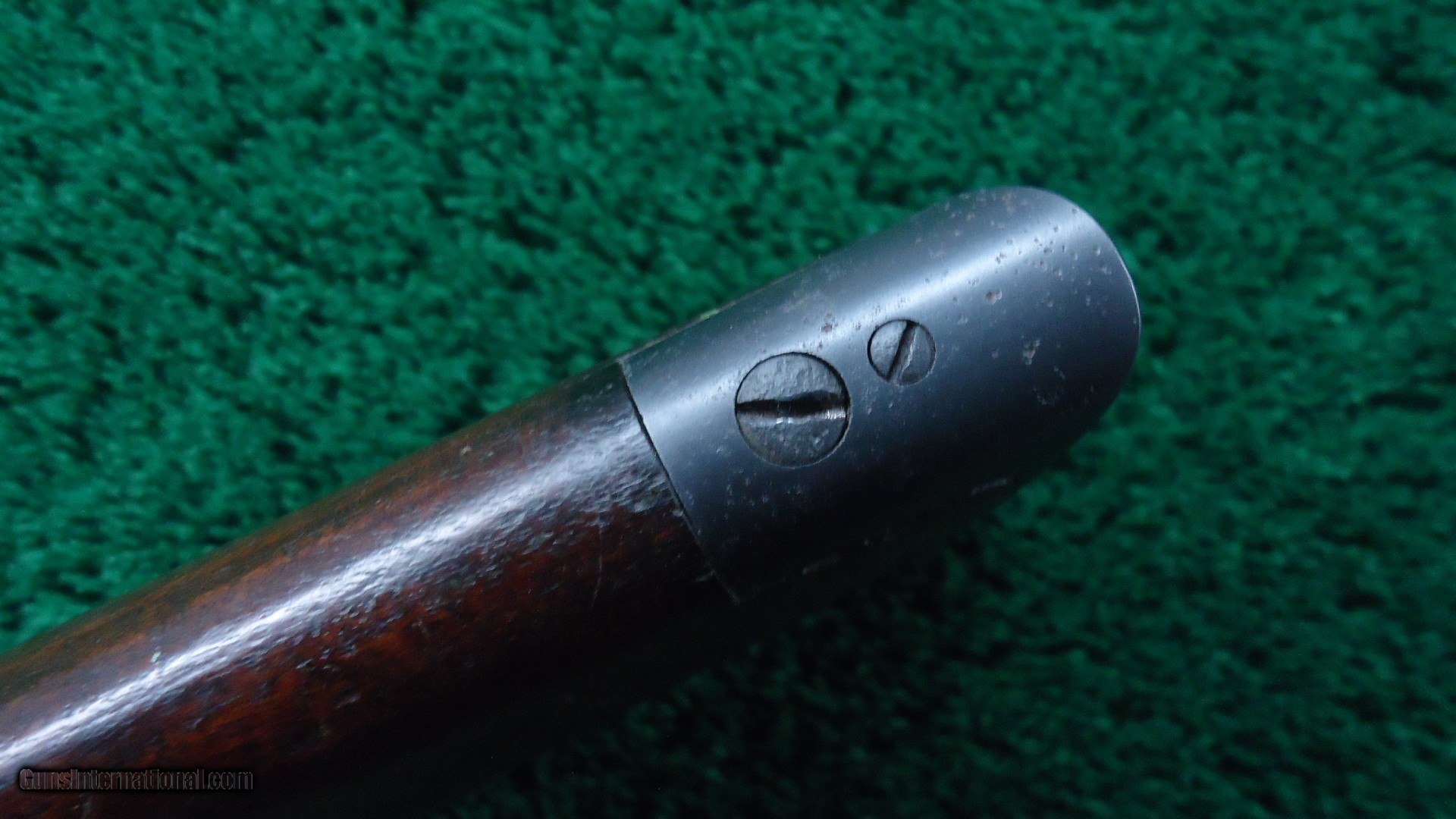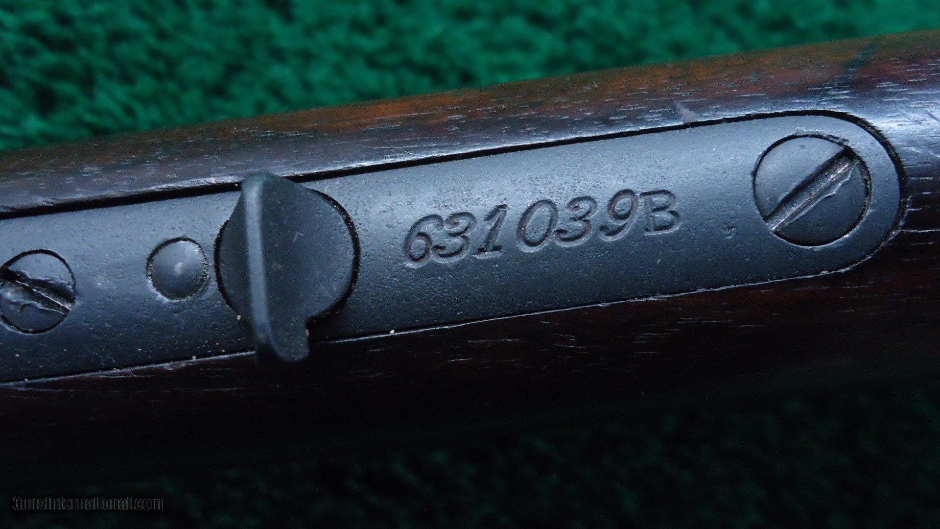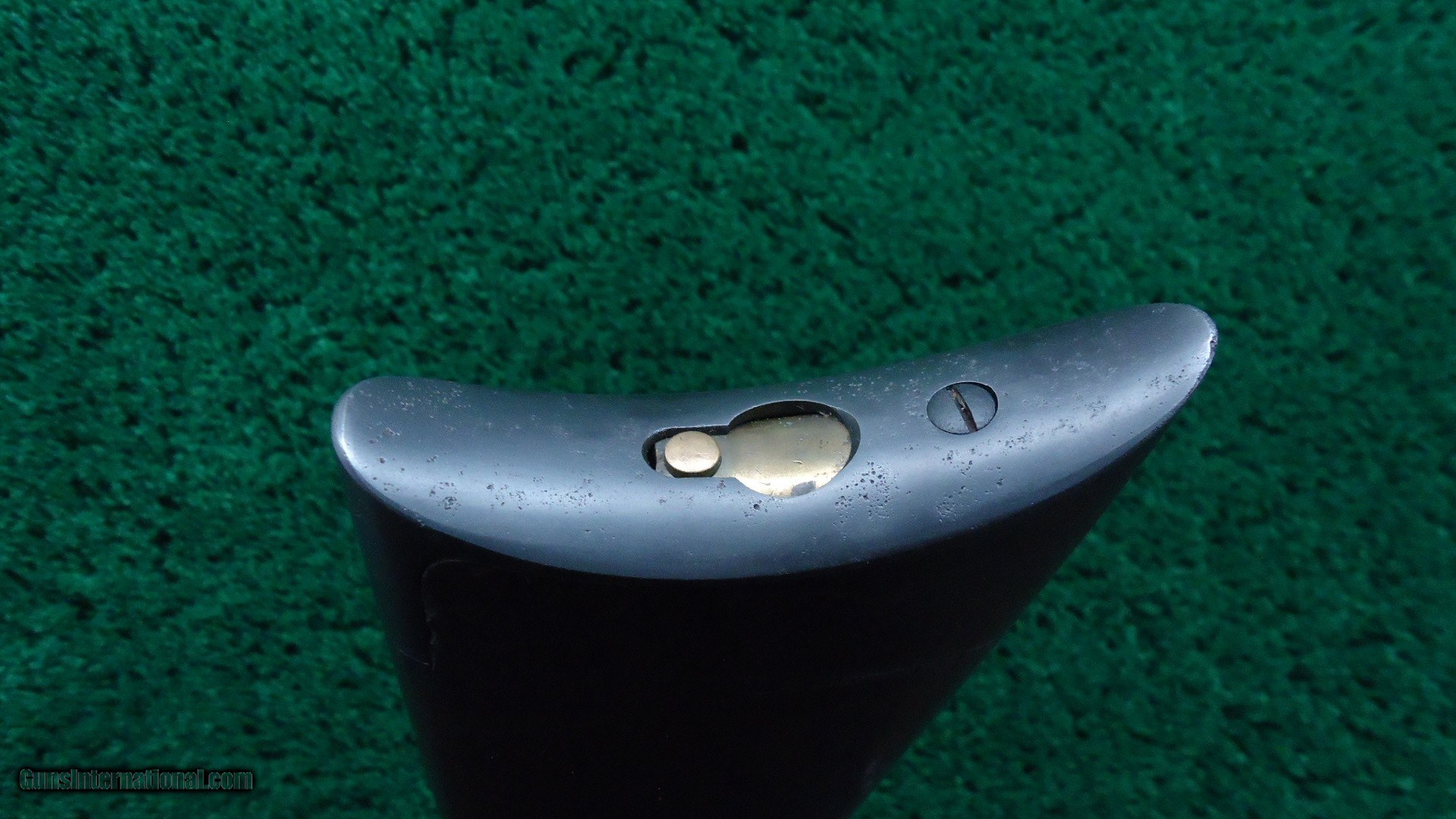 Description: 20 inch carbine configuration chambered in 44 W.C.F. caliber. Bore shows roughness from heavy black powder use. Original front sight and a 2-leaf rear that appears to be calibrated to a midway position. Special order rifle style butt stock. As is typical for a well-used gun all the finish has wore away years ago and there are areas of pitting. Since then a dull blue finish has been applied. Legend on barrel is faint but all other markings are quite clear. Honest wear shows scuffs, scrapes and a minor crack in the wood but it is still quite solid. Very good overall. Good mechanics. You rarely see historic guns that came home from south of the border as solid as this one! Factory letter confirms configuration and interestingly states gun was shipped to Mexico in 1908. A 44 caliber 1873 carbine is the classic gun that everyone wants to add to their collection. Even better with a factory letter! A good example piece. Leroy Merz Antique Firearms specializes in antique and vintage Winchesters and other fine American firearms. Since 1965 Mr. Merz has taken part in the world of firearms and has been a contributor to many well known reference books. We have hundreds of additional guns in every price range at our home online. Search for Merz Antiques in google. SOLD Curio/Relic: Yes Rifle Caliber: .44-40 Winchester |