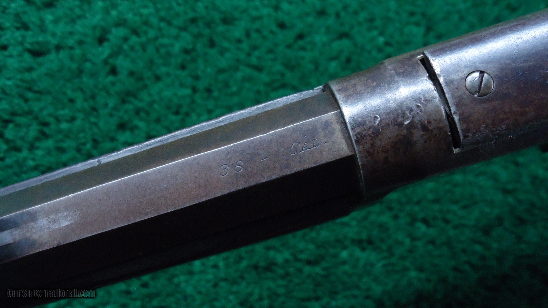 Description: 28 inch full octagon barrel chambered in 38 WCF caliber with a full length magazine tube. The gun is sighted with an "1873" marked ladder rear sight and German silver blade front sight. Excellent bore with sharp rifling. Bright and shiny. Original wood has a rifle style butt plate and is in very nice condition with the usual dings and mars maybe more so on one side of the forearm than the other. Must have been bounced around on a wagon or something. Overall metal is very nice with 30%-40 barrel blue and mag blue turning brown. Receiver has about 10-15% original blue turning a plum coloration. Mechanical condition is excellent with original dust cover. Leroy Merz Antique Firearms specializes in antique and vintage Winchesters and other fine American firearms. Since 1965 Mr. Merz has taken part in the world of firearms and has been a contributor to many well known reference books. We have hundreds of additional guns in every price range at our home online. Search for Merz Antiques in google. SOLD Antique: Yes Rifle Caliber: .38-40 Winchester |