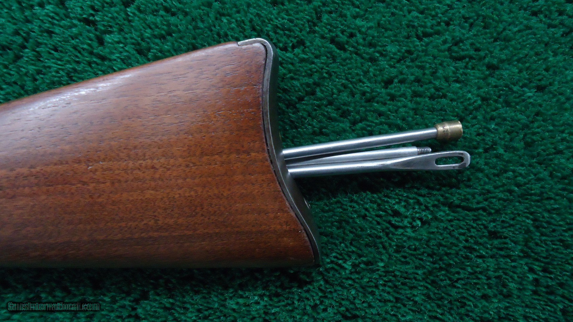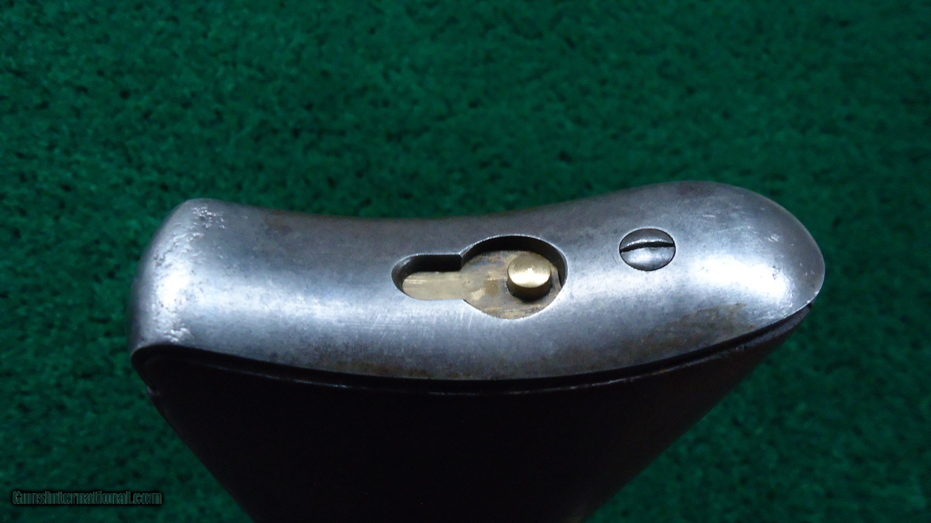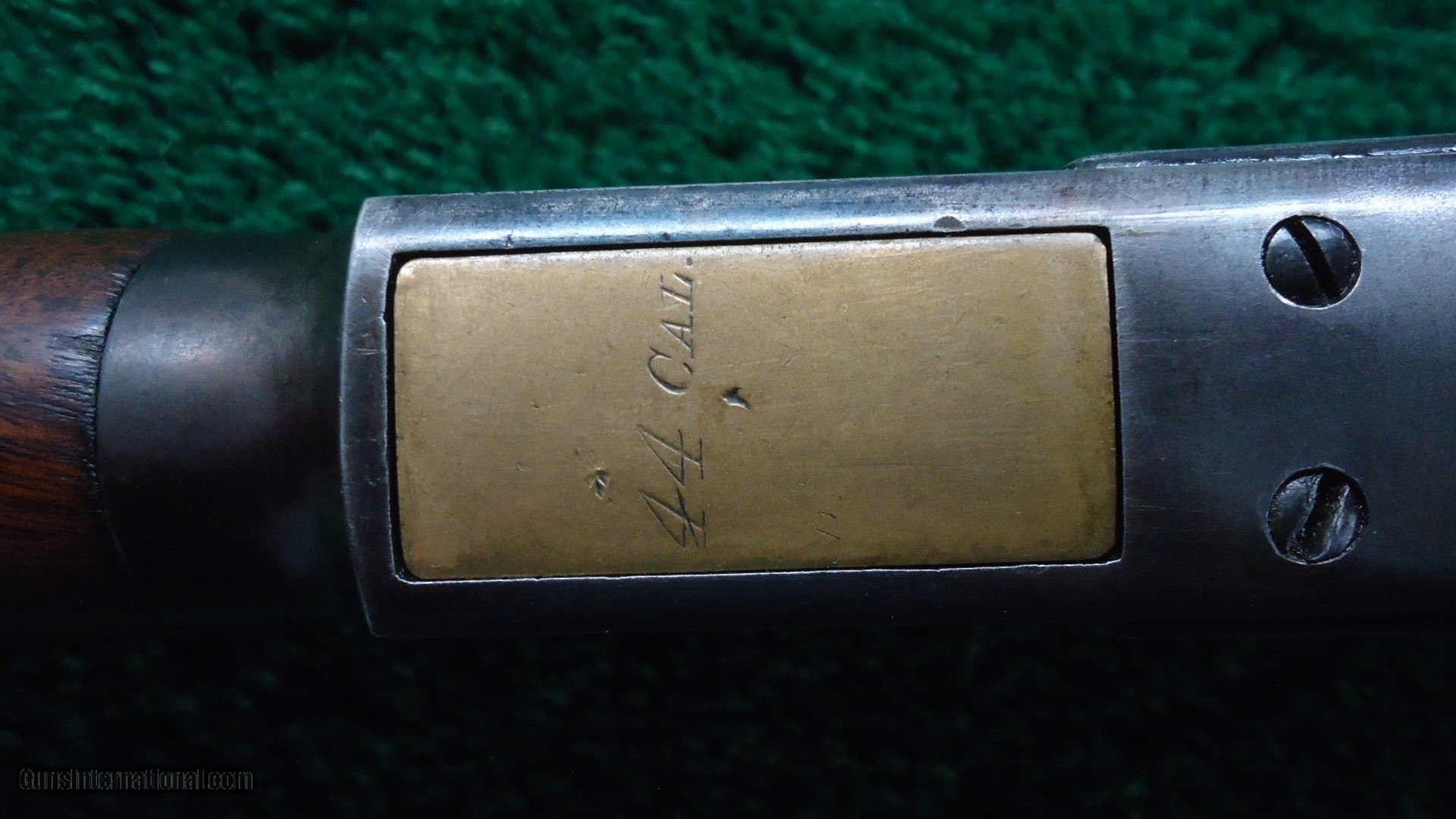 Description: Standard 20 inch carbine configuration chambered in 44 WCF caliber with an excellent bore and crisp action. Original sights. Gun retains much of the original blue. Some one has been playing with it and wiped some cold blue on it. Traces of case color remain on the hammer and lever. Original saddle ring and dust cover. Walnut stock features a carbine style buttplate and has been lightly cleaned. The initials "A L" have been neatly carved into the buttstock. Trap door with original cleaning rod present. A decent specimen of the desirable 44-40 in an SRC made in 1891. Leroy Merz Antique Firearms specializes in antique and vintage Winchesters and other fine American firearms. Since 1965 Mr. Merz has taken part in the world of firearms and has been a contributor to many well known reference books. We have hundreds of additional guns in every price range at our home online. Search for Merz Antiques in google. SOLD Antique: Yes Rifle Caliber: .44-40 Winchester |